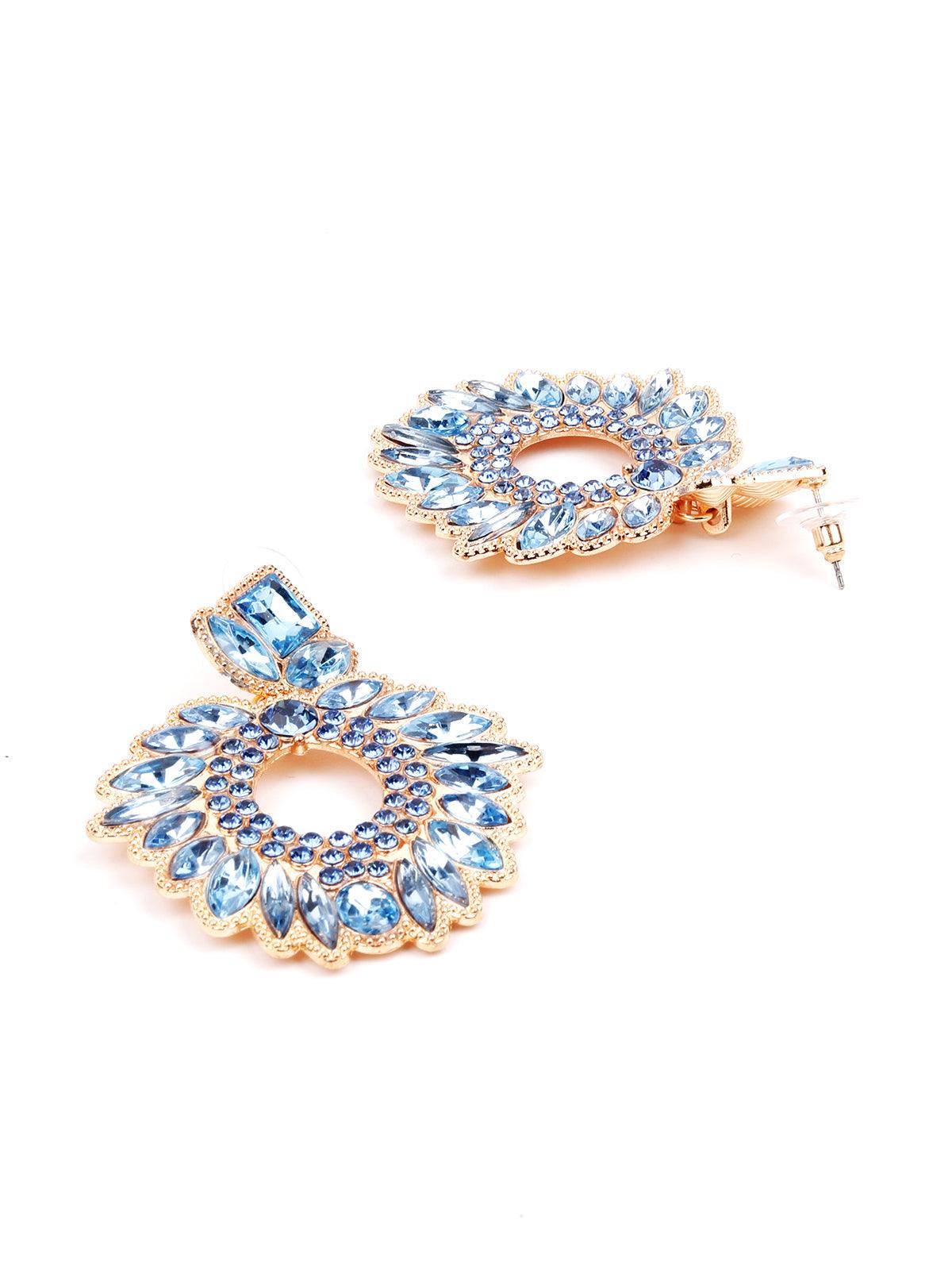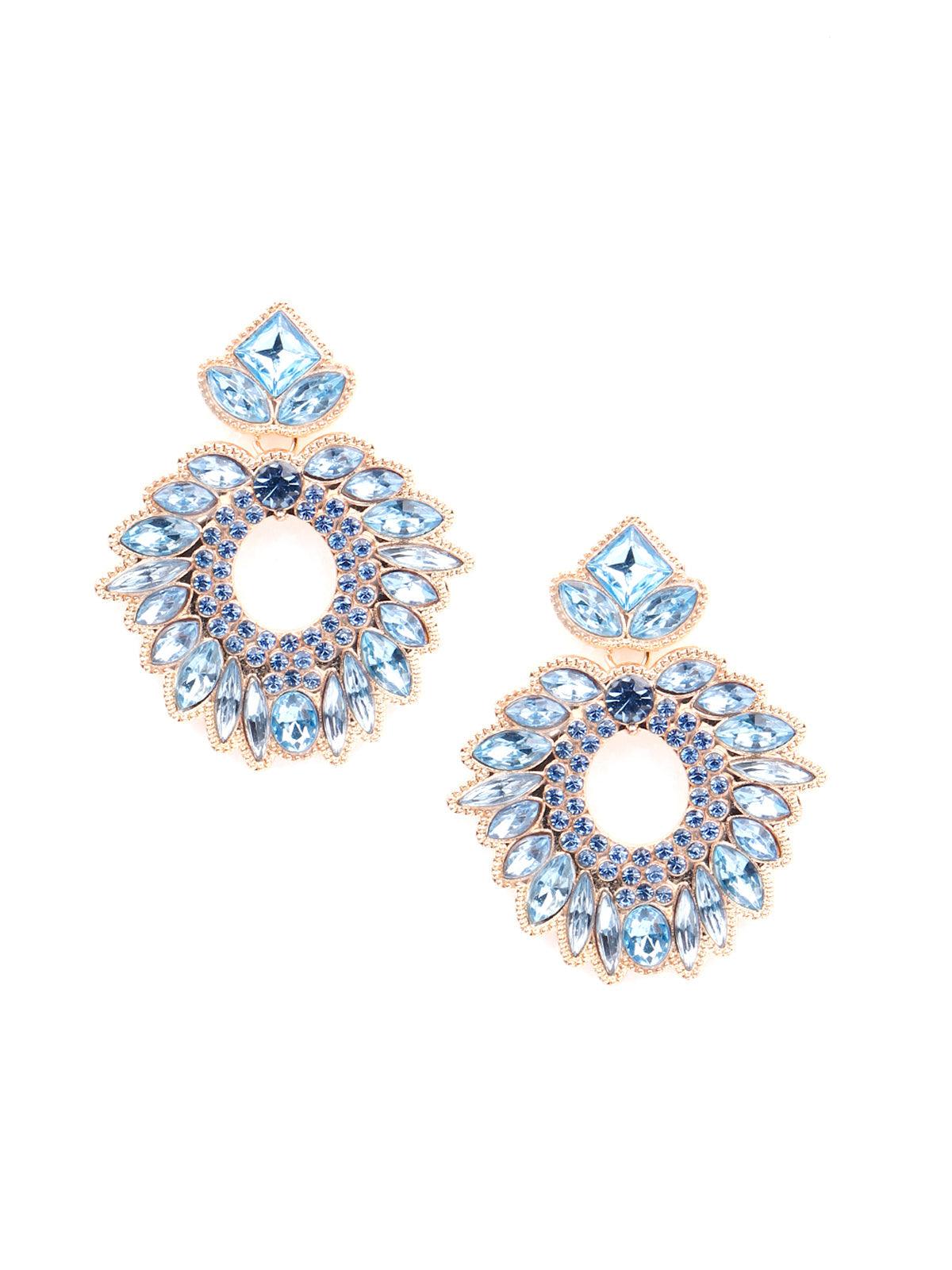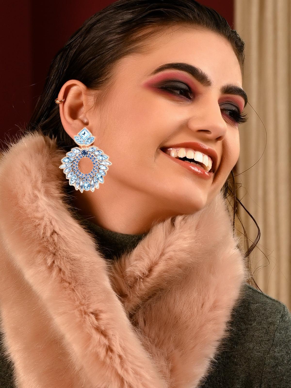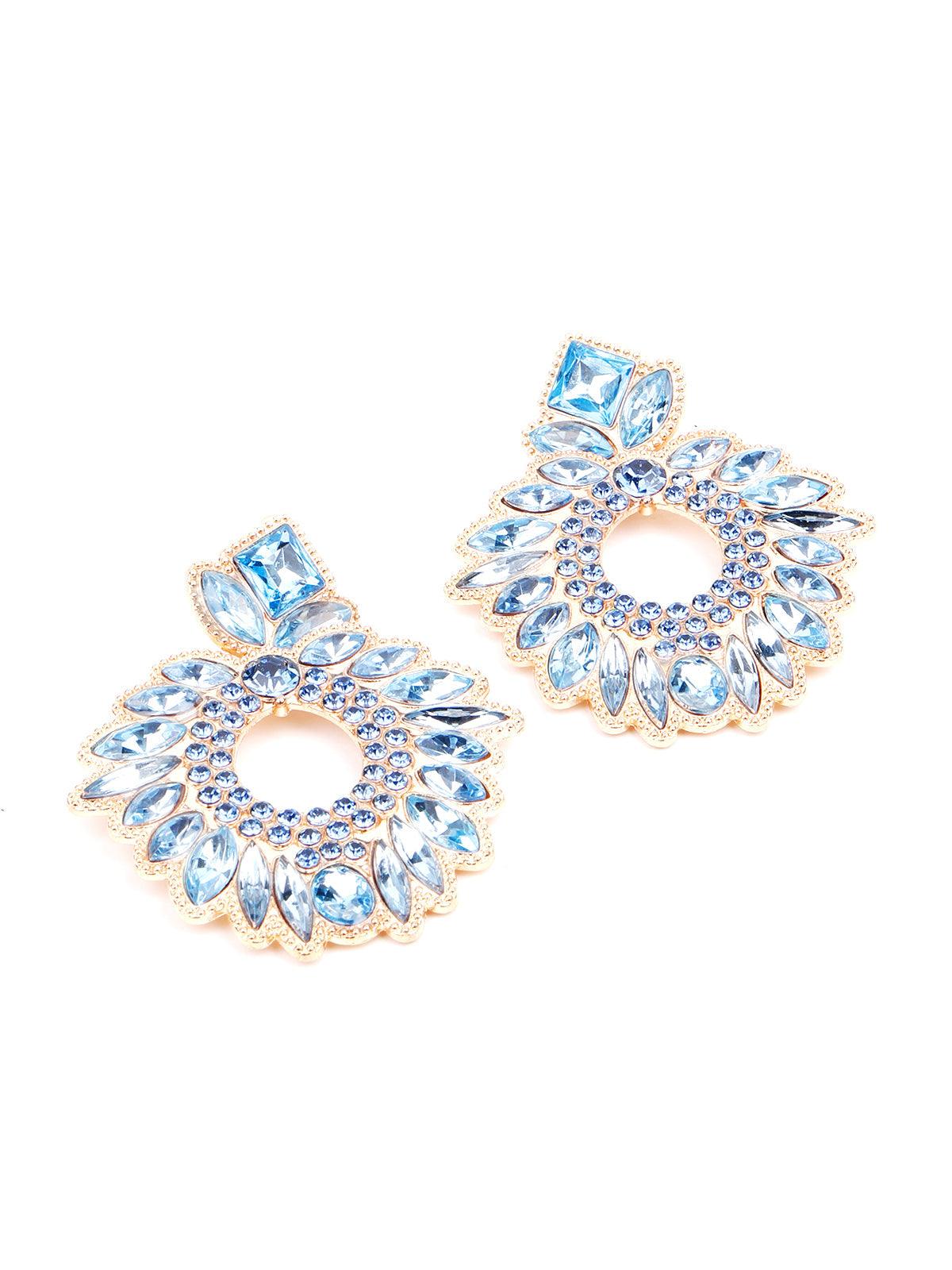 Odette presents these Beautiful gold tone earrings embellished with sky blue crystals drop earrings embellished.
