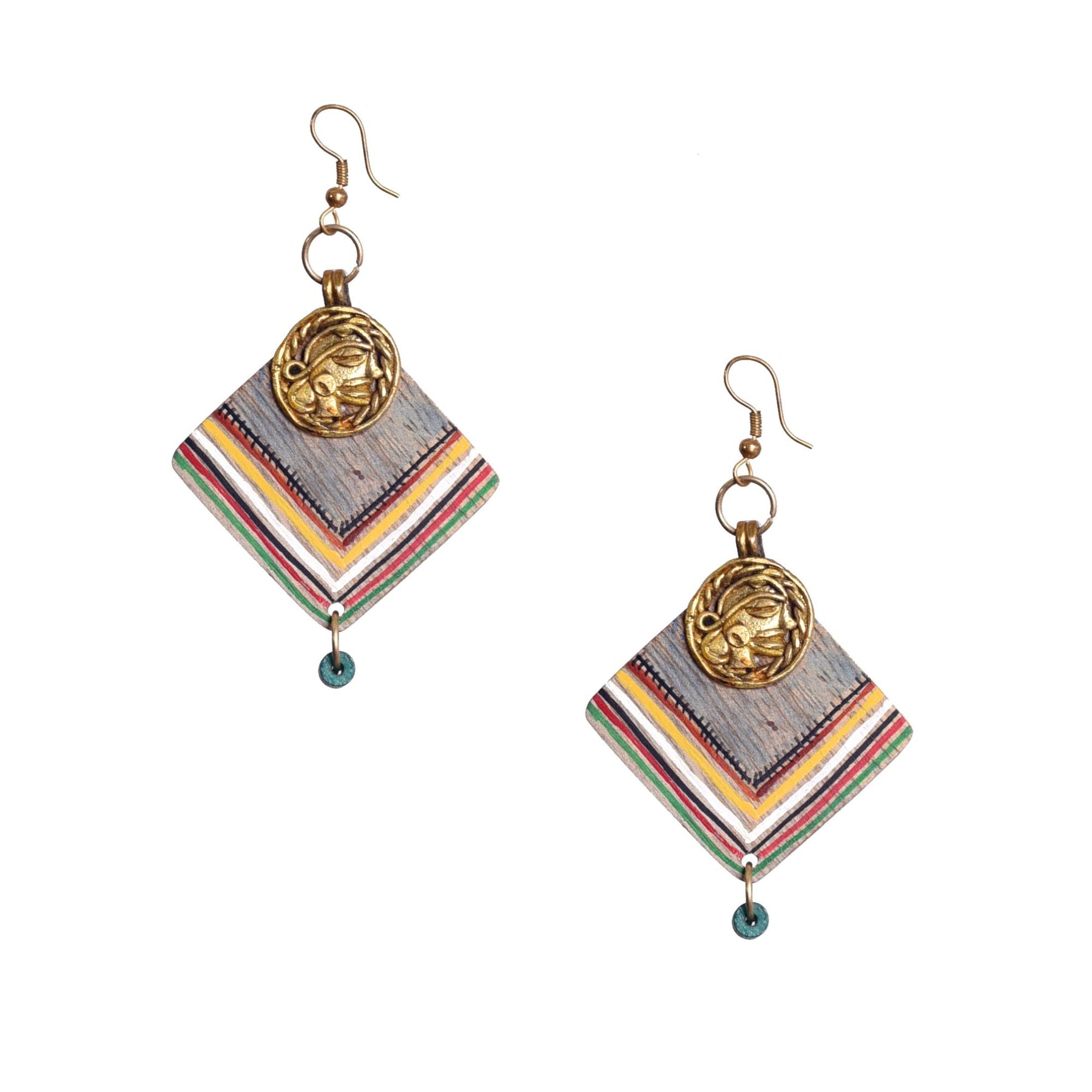 These handcrafted wooden earrings with brass kite motifs are the perfect combination of boho chic and timeless elegance. The unique kite shape of the brass motifs adds a touch of whimsy and playfulness to the design, making these earrings a fun and stylish addition to any outfit.