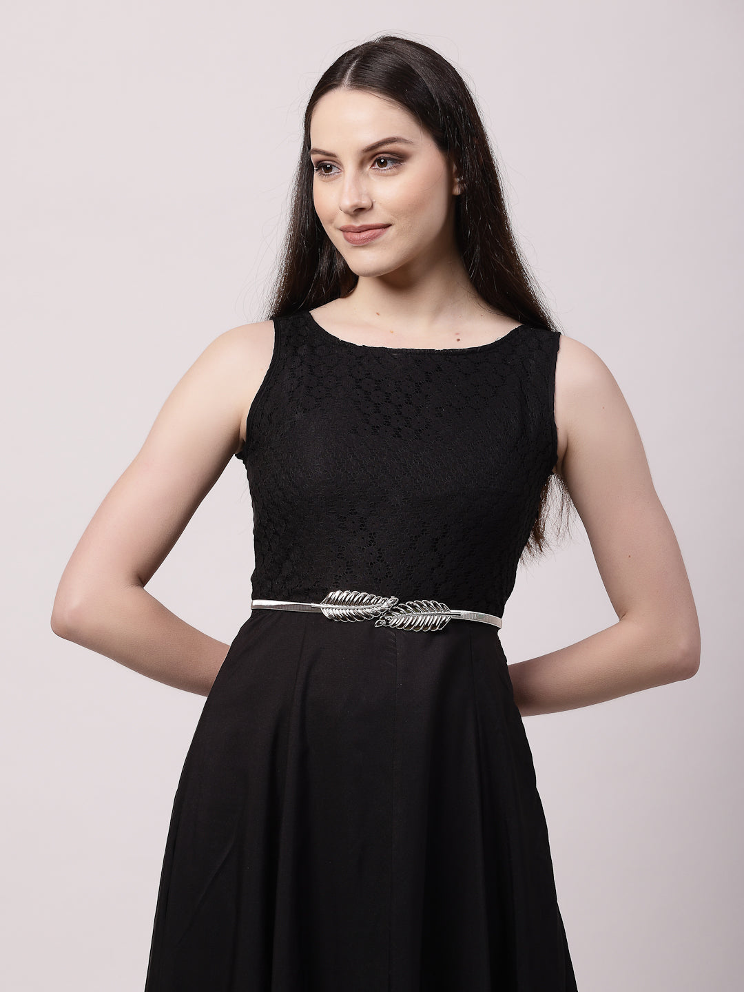 Style Note: Silver tone spring shaped stretchable belt, to fit size upto 36 inches .Pair this belt with your favourite attire to spark up the evening party and turn around the heads.