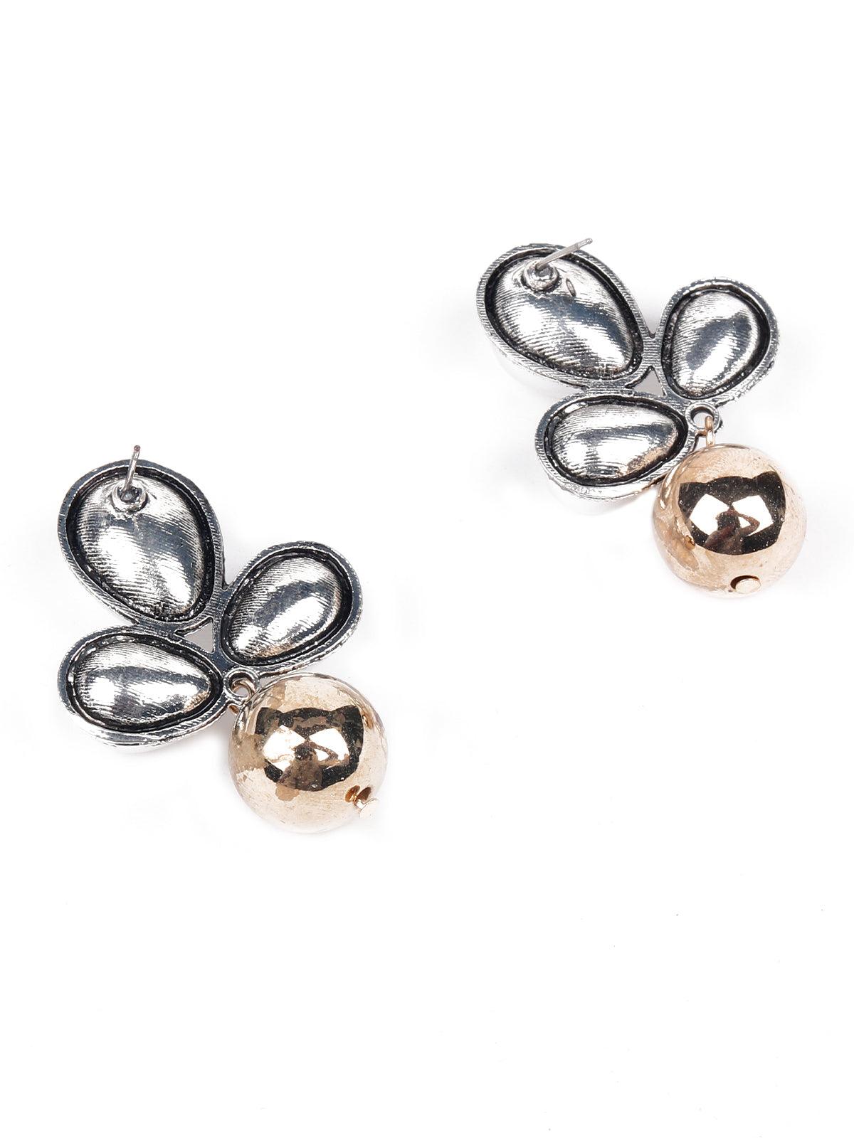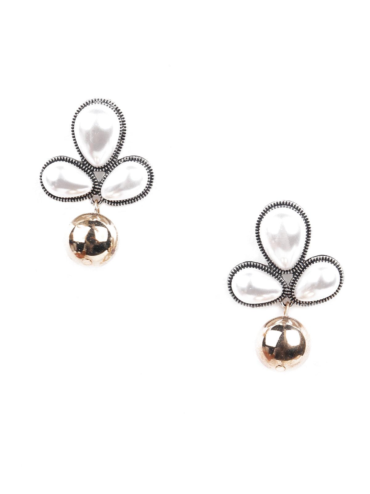 Odette presents these gorgeous pair of earrings embellished with artificial pearls and a dangling gold-tone ball. The earrings are super versatile and can be worn on any outfit. The earrings are secured with push back closure fastening.