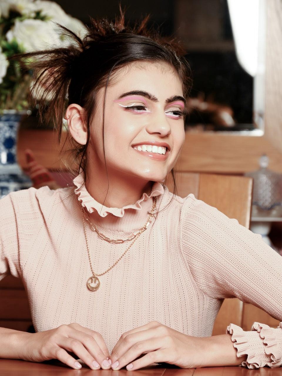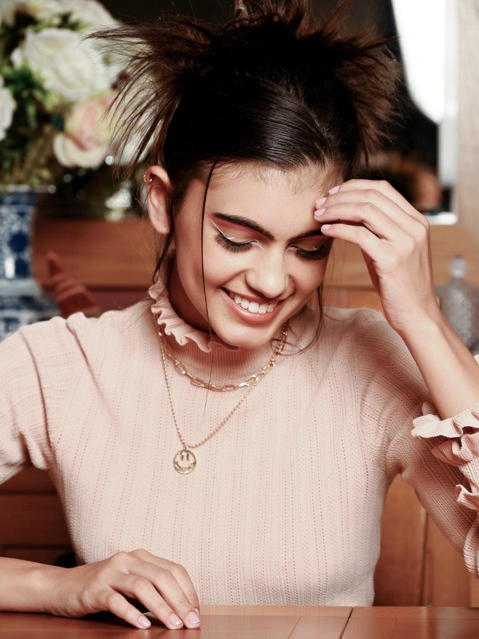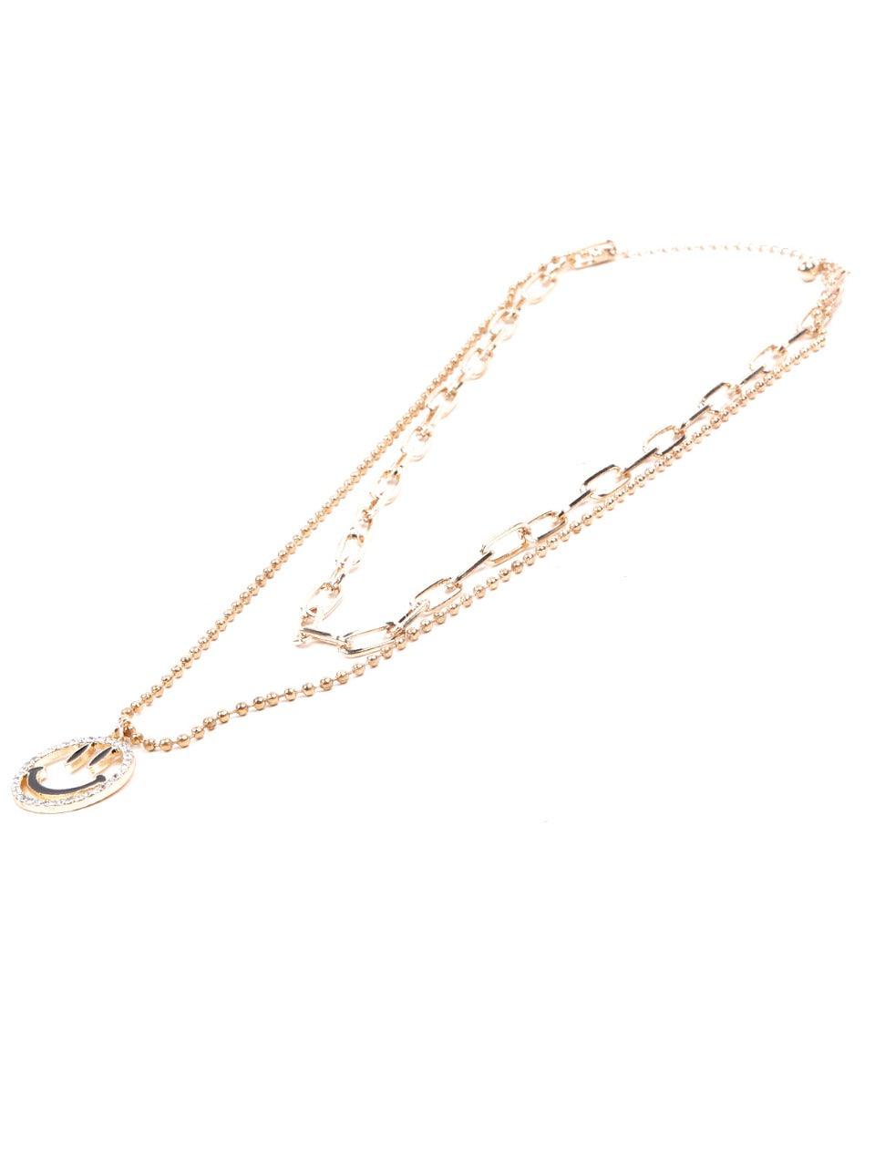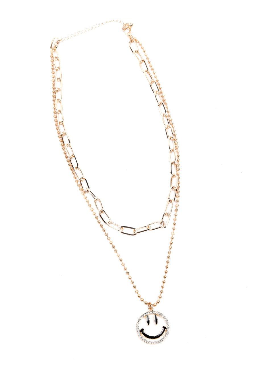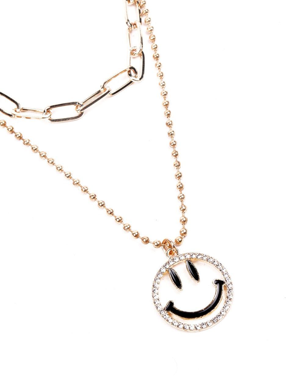 Odette presents this stunning pendant layered necklace that has a cute studded smiley as a pendant and comes with a simple yet fashionable gold chain. The beauty of this necklace remains unquestioned and the class, unmatched.The necklace is crafted with high-quality metal and is secured with a lobster clasp closure fastening.