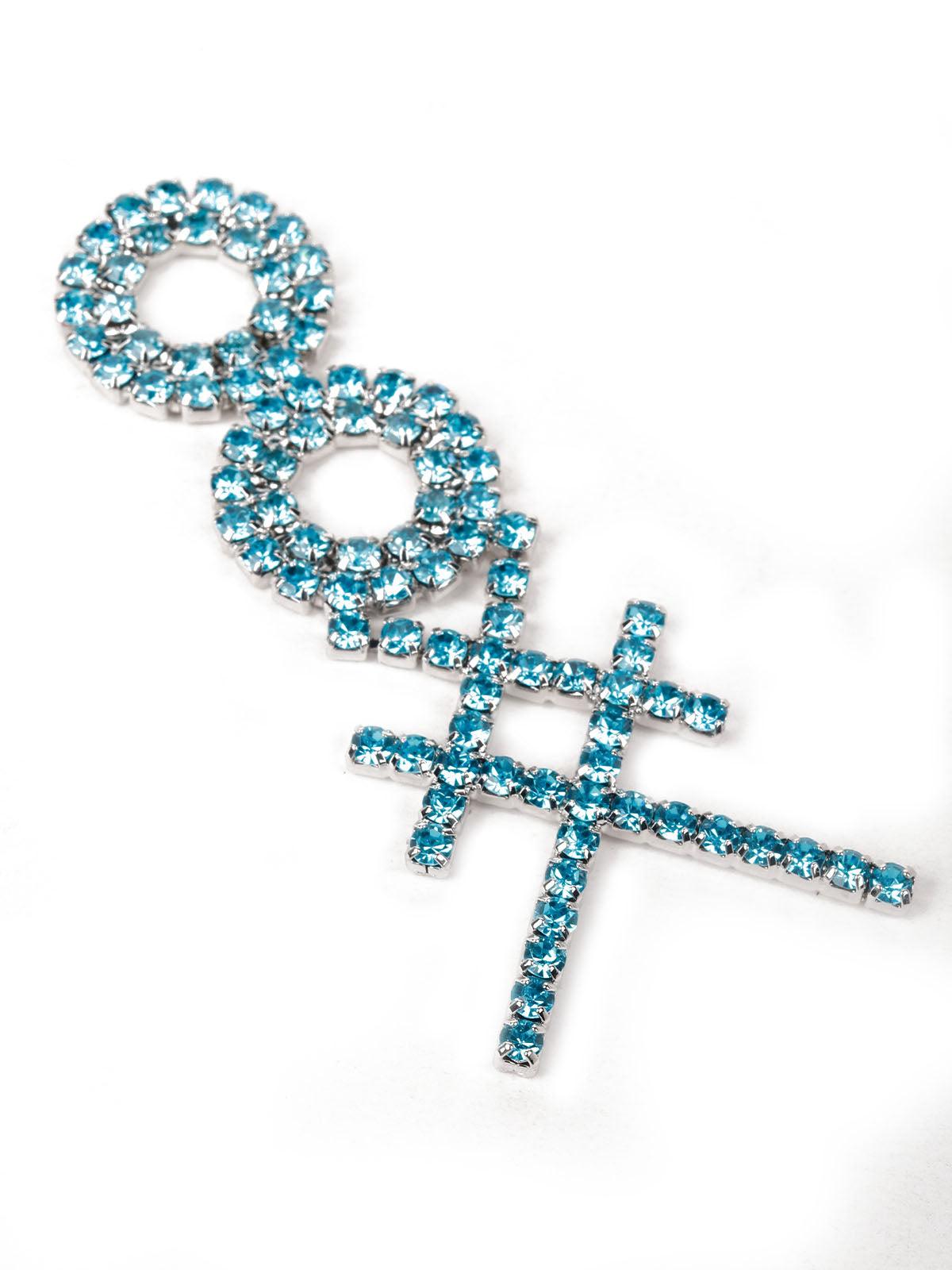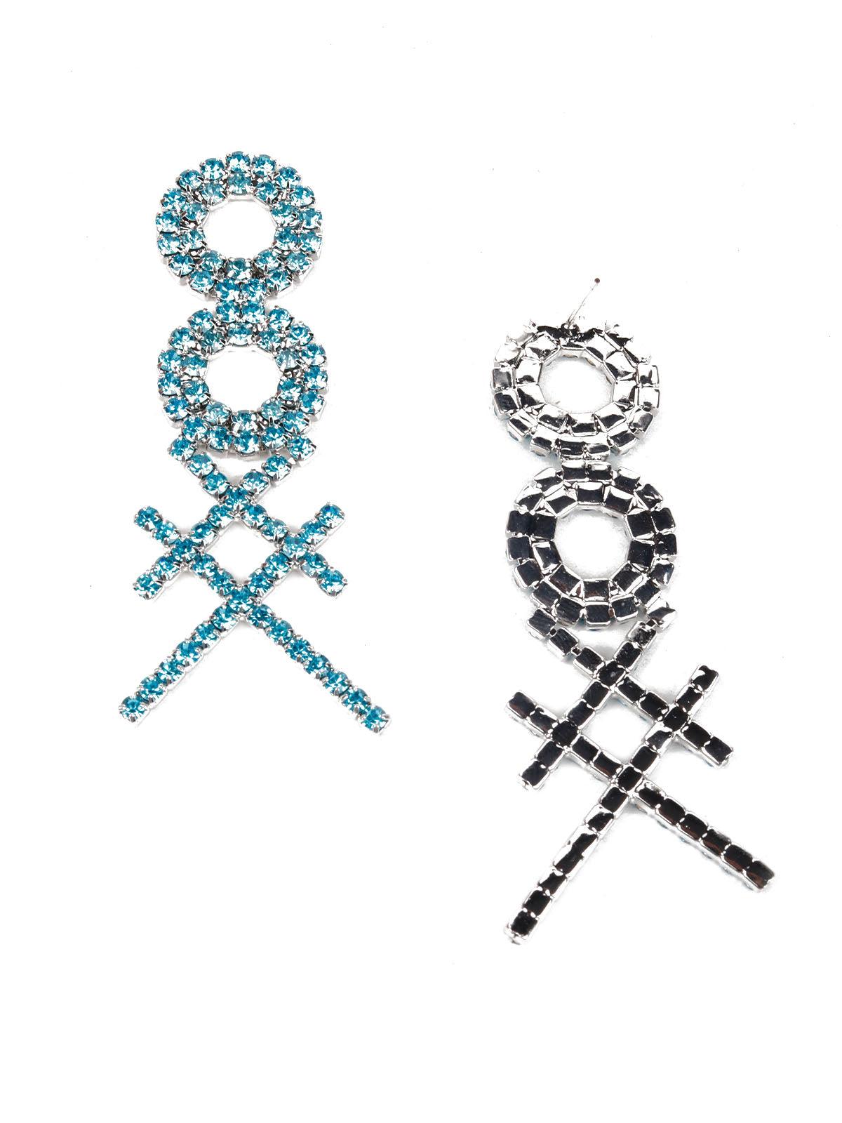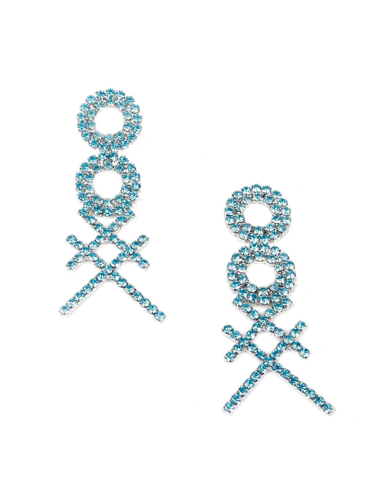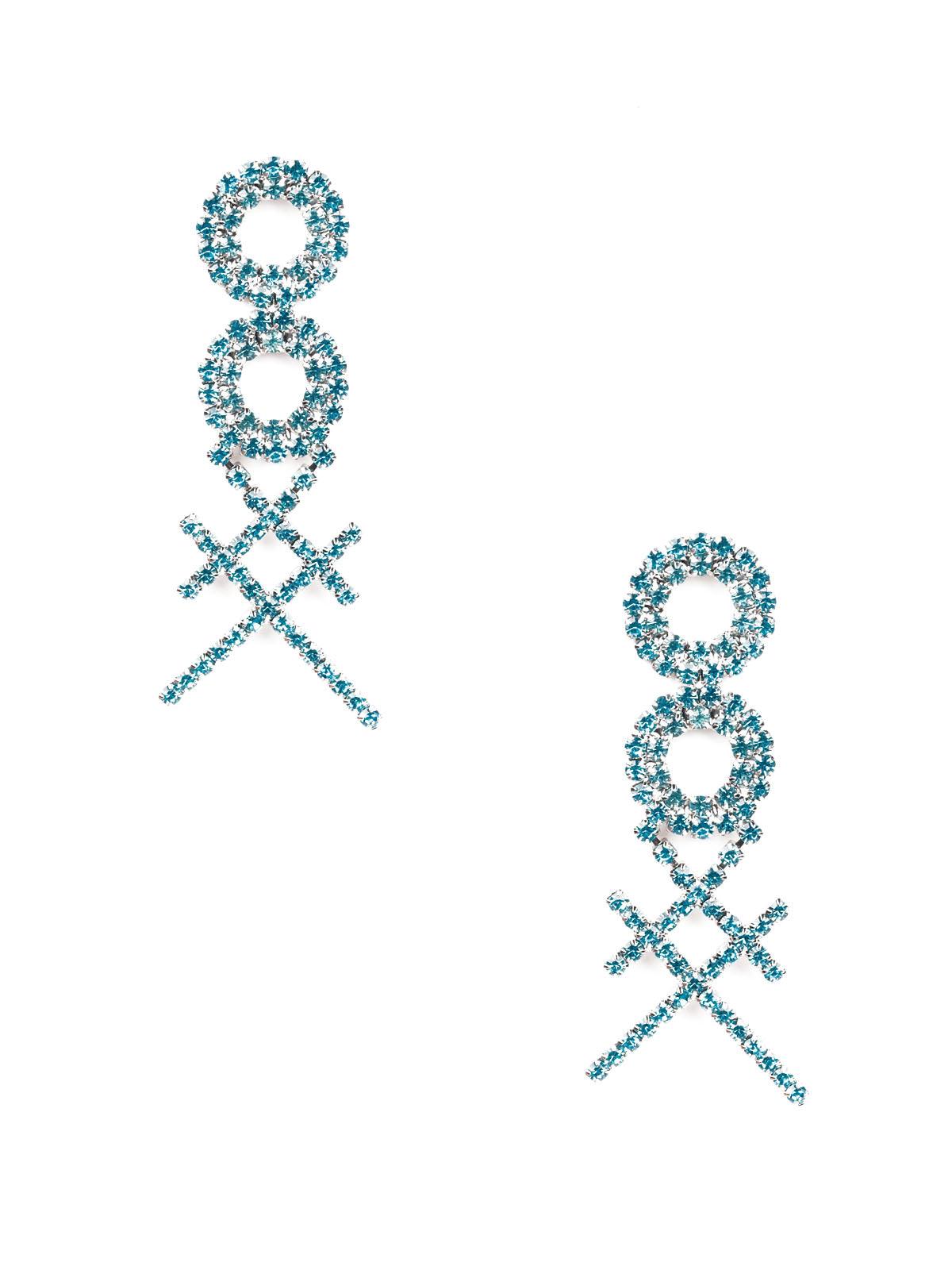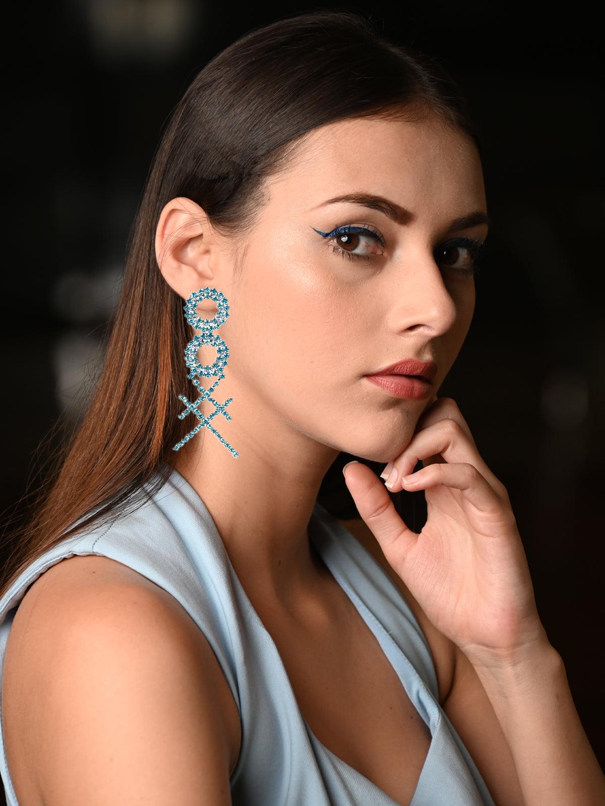 Odette presents these beautiful pair of designer earrings that come in a combination of blue and silver crystals. The earrings have a double hoop shape followed by a double-cross design Unquestionably beautiful! An essential in our opinion. The earrings are secured with pushpin closure.