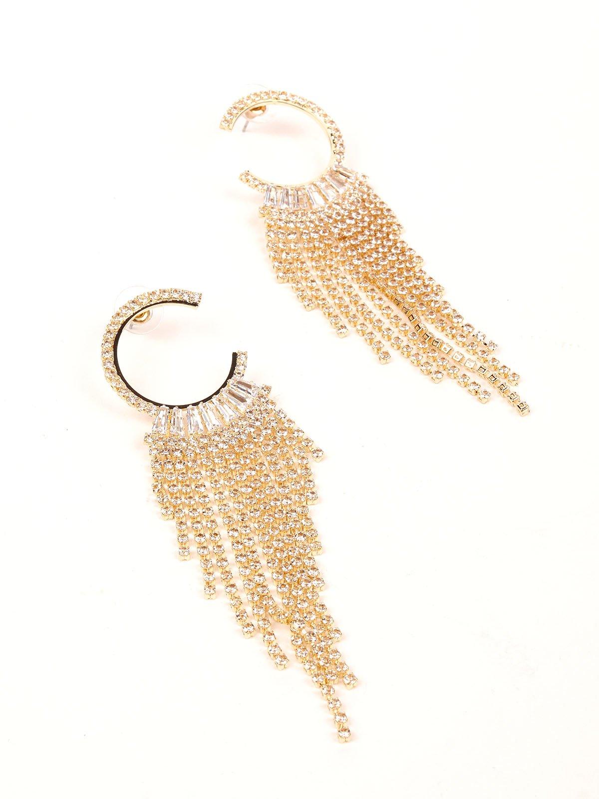- Be your illuminating best as you adorn yourself with these half-hoop golden tassel earrings by Odette on your festivities.