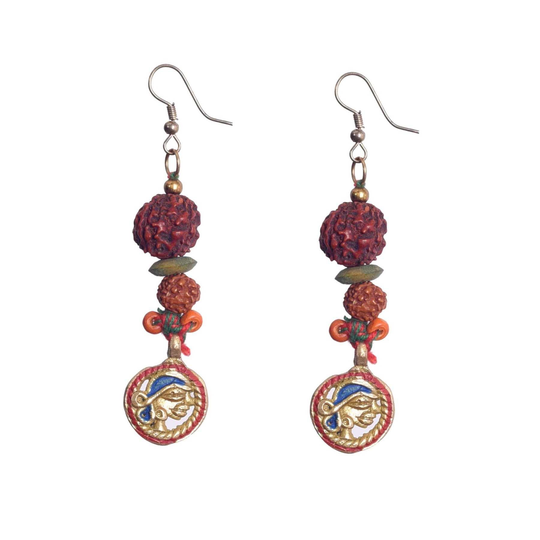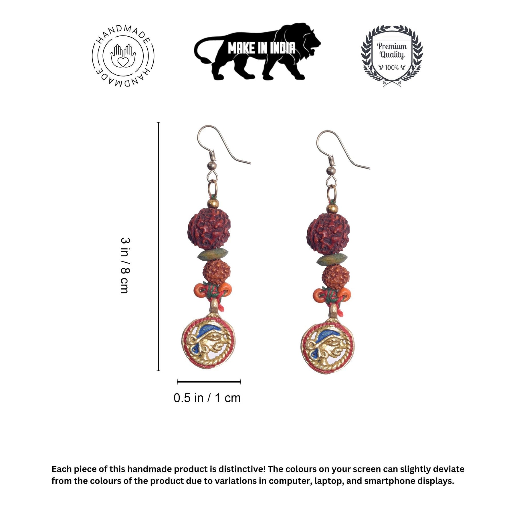 These handcrafted wooden earrings with rudraksha beads and brass accents are the perfect embodiment of divine fusion. The unique design features natural wooden material combined with sacred rudraksha beads and elegant brass accents.