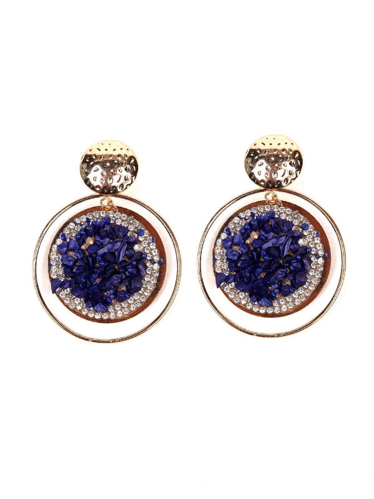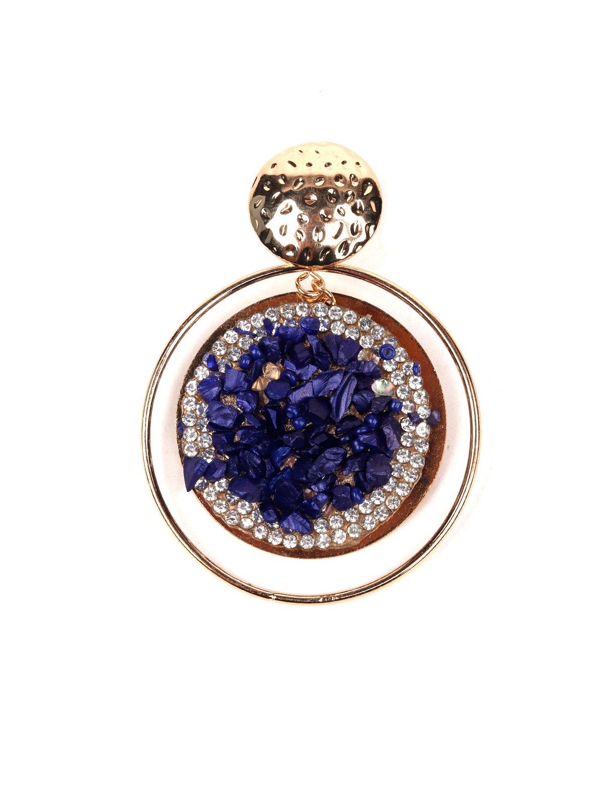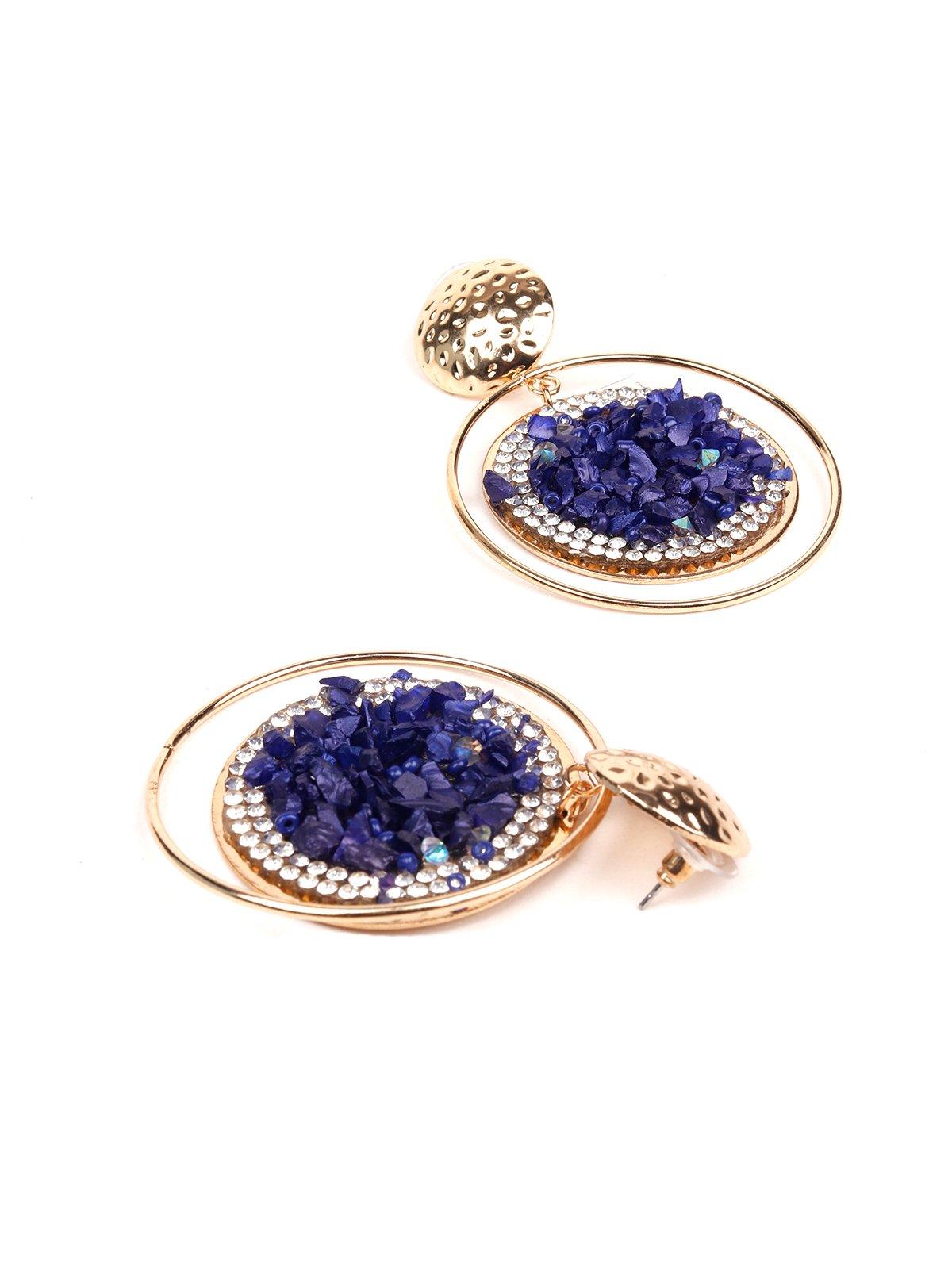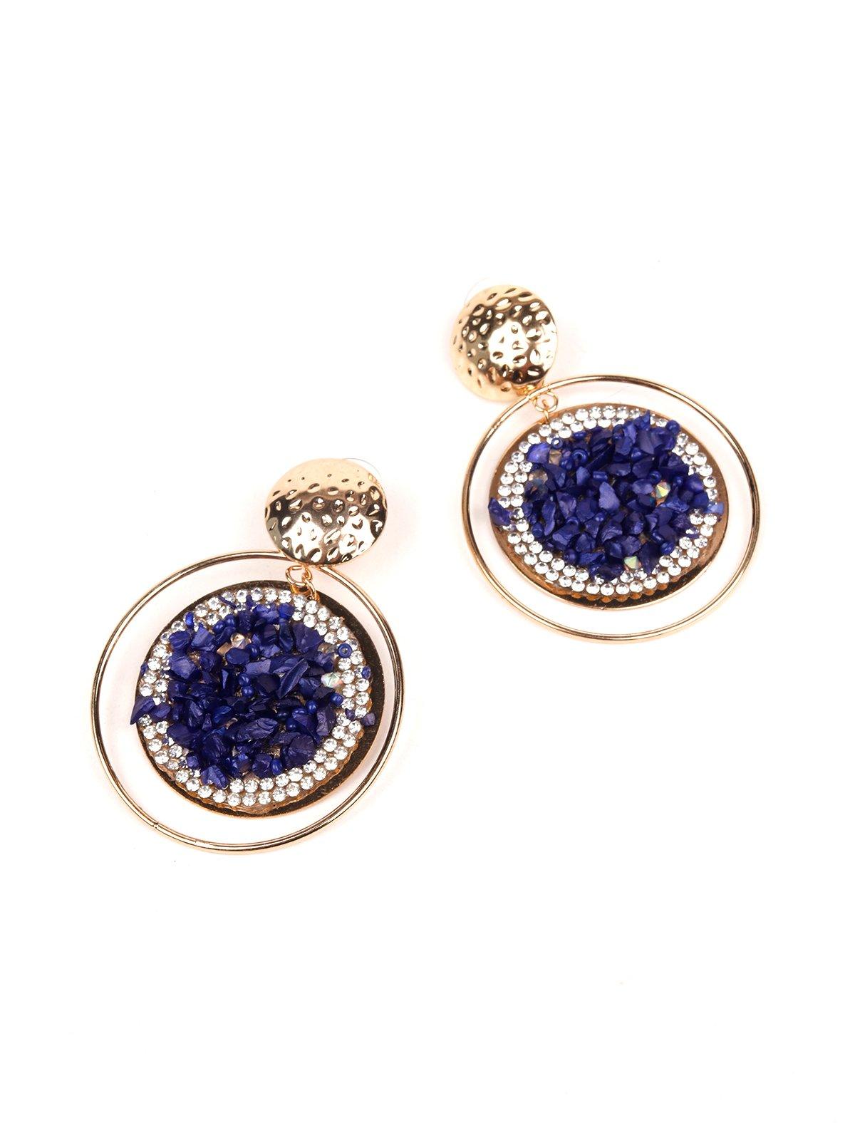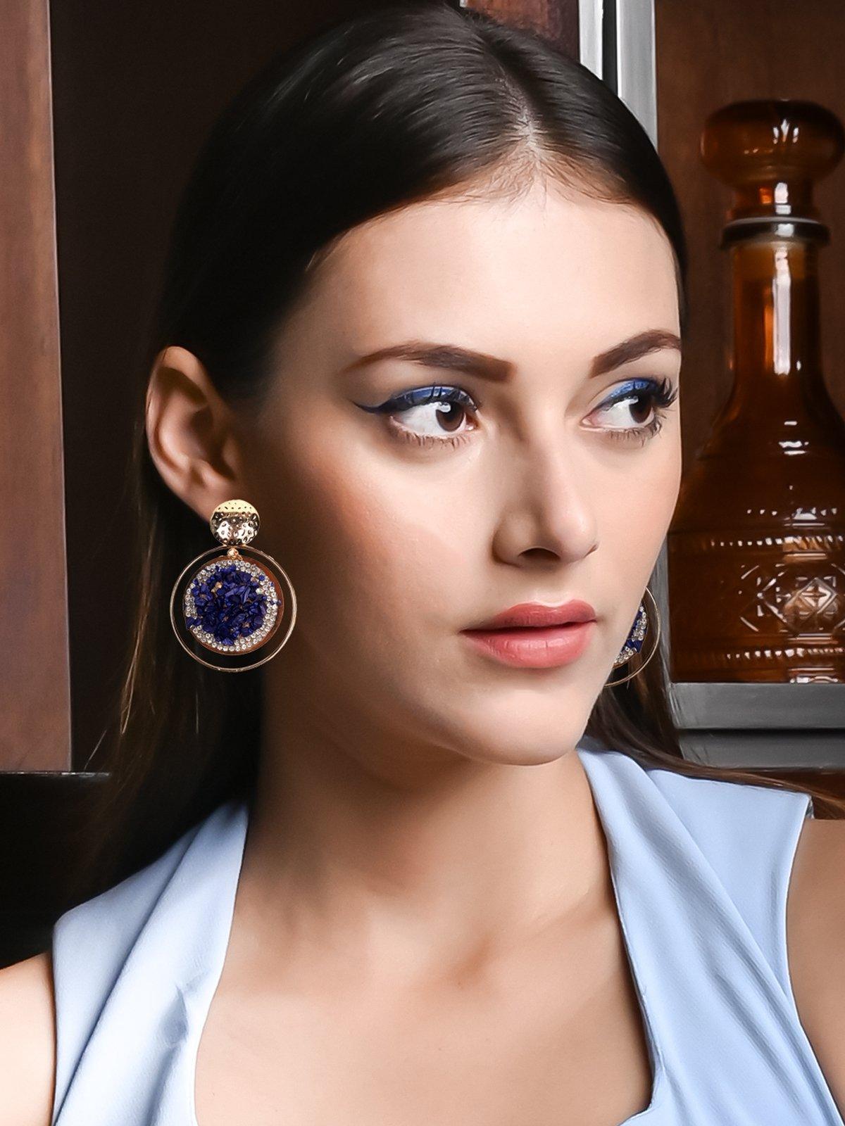 - The earring displays elegantly crafted blue stones and crystal in the centre of it.