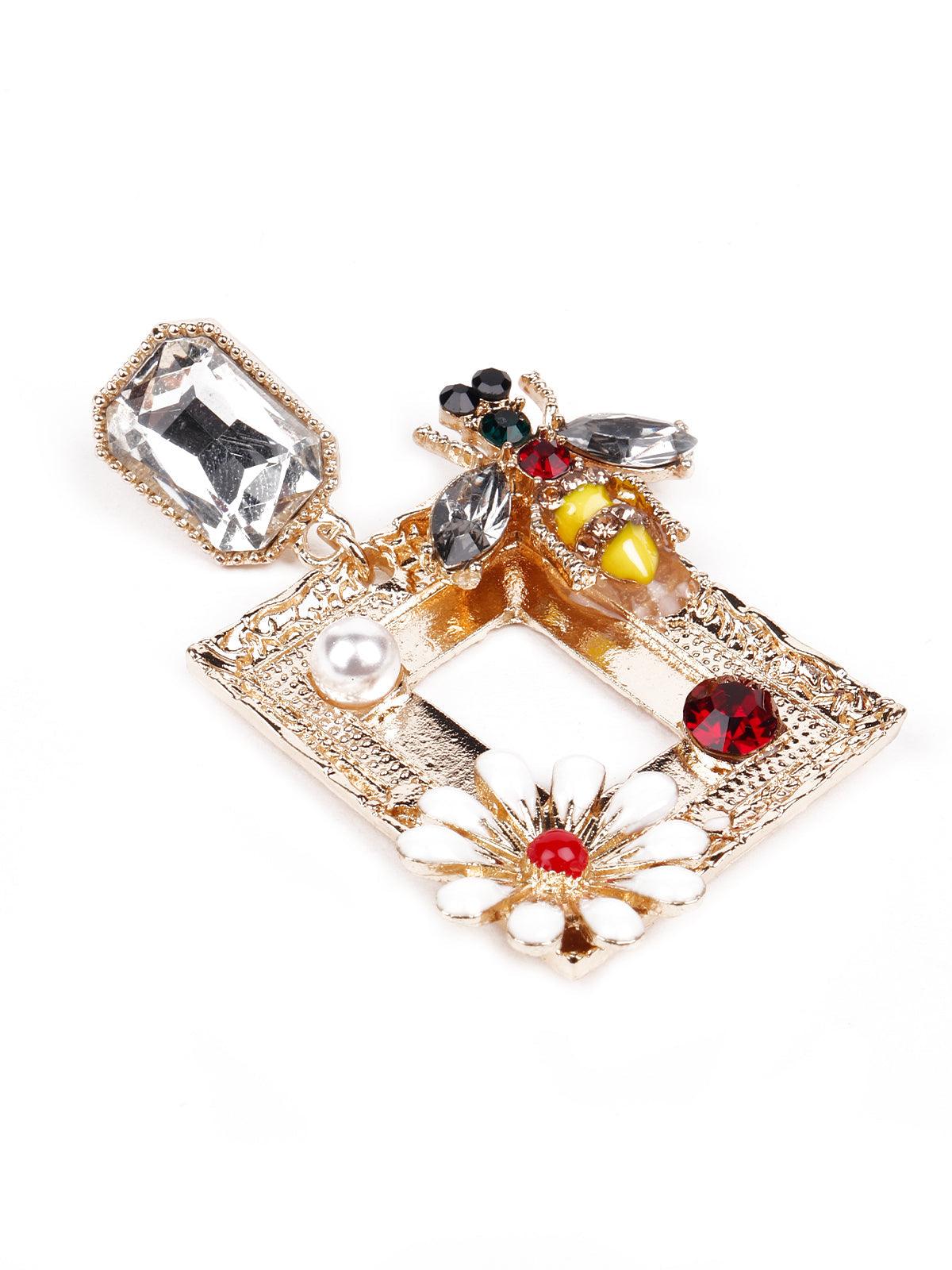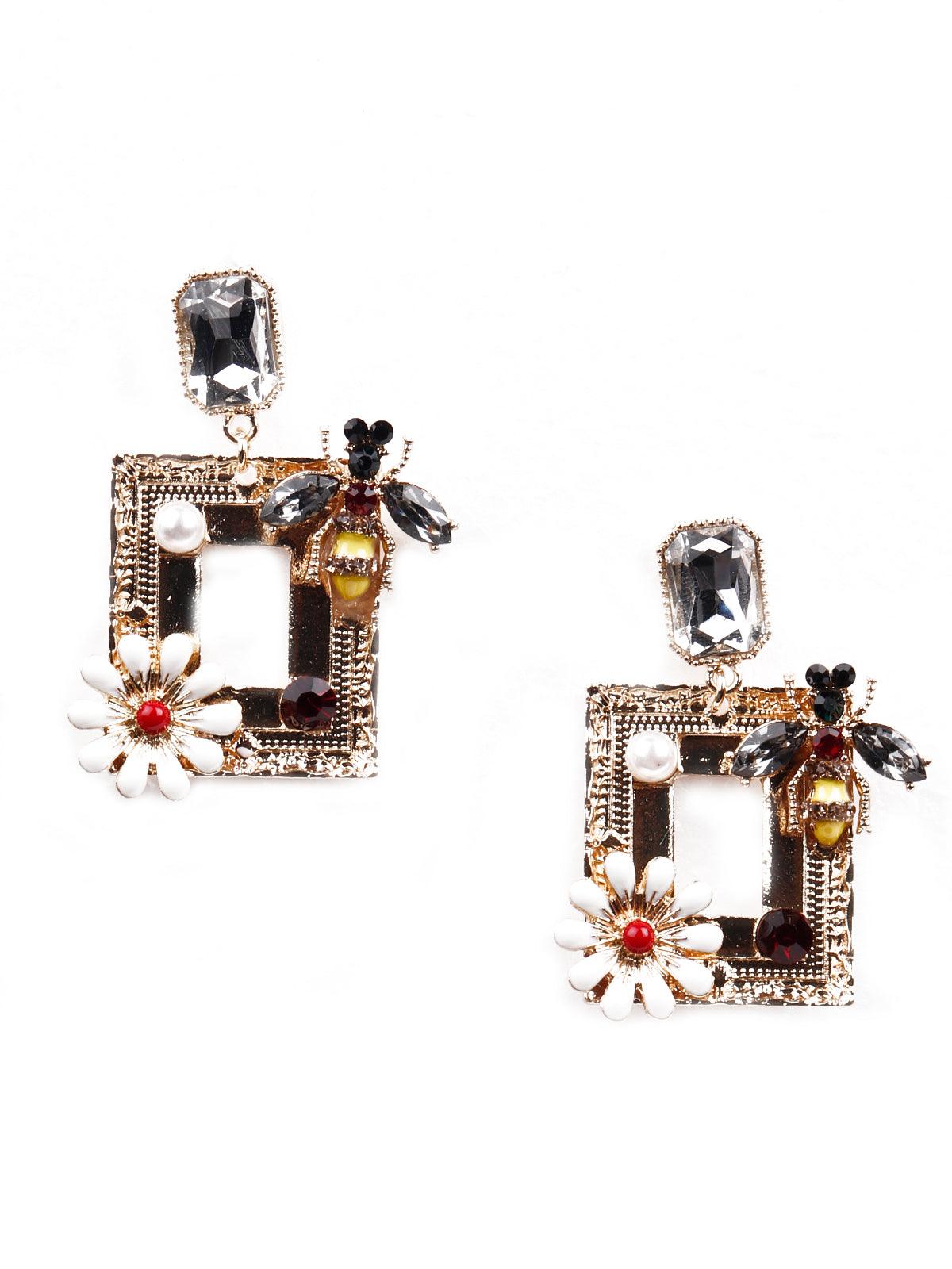 Odette brings you this stunning pair of earrings that have a square structured shape embellished with cute flowers, the earrings are quite a fashion statement and are sure to add a lot of style to your look. The earrings are secured with a push back closure fastening.