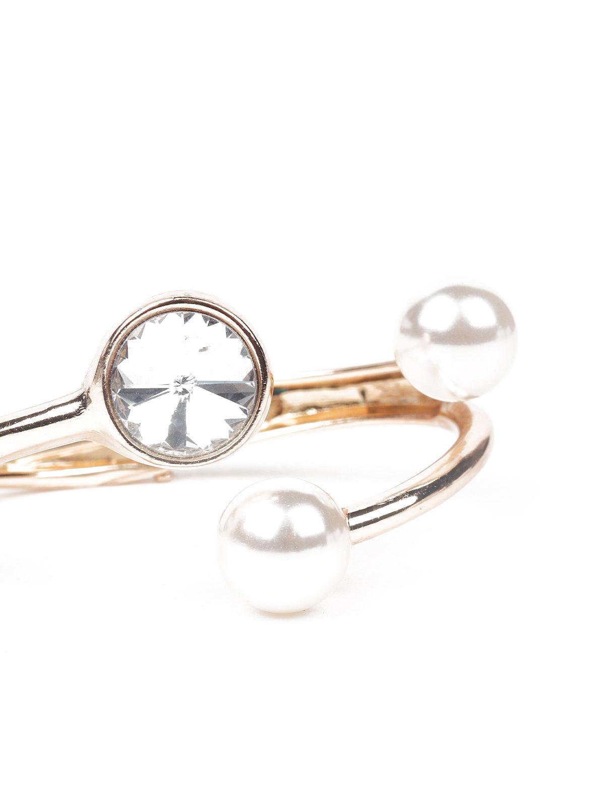 Add some chic vibes to your jewellery collection with this must-have bracelet. Featuring a gold material with a pearl and crytals embellised bracelet Style this with a skirt and strappy heels for a chic combo we are obsessing over.Product detail: