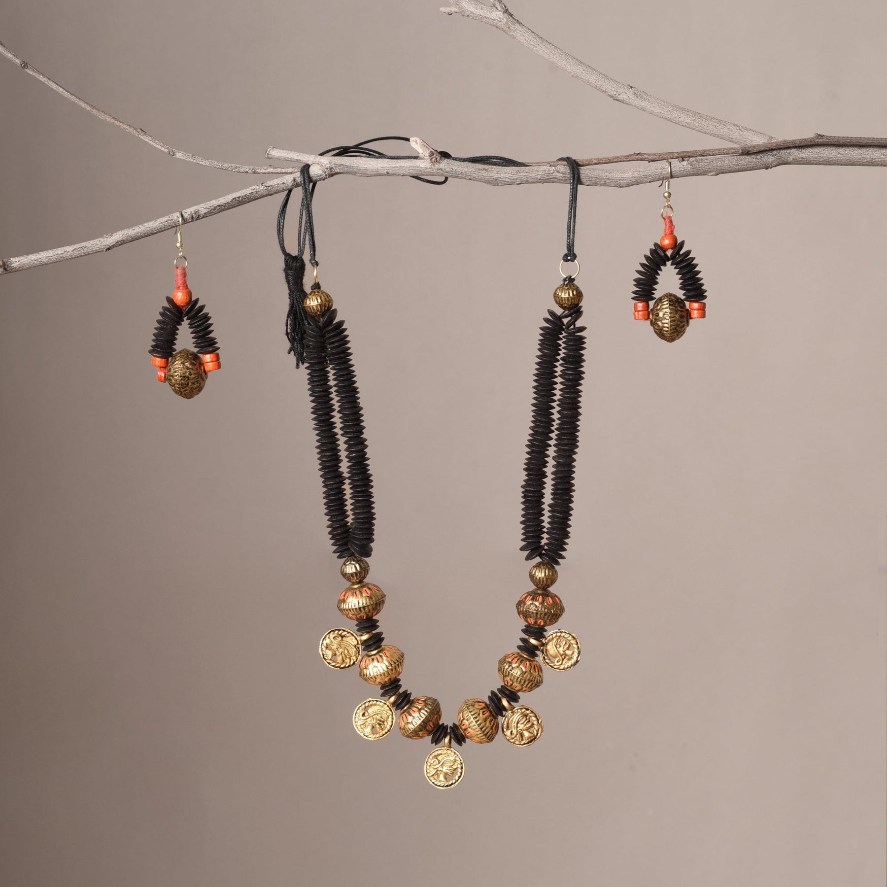 The "Enchanted Bloom Collection" blooms with floral motifs, showcasing a necklace and earrings adorned with handcrafted flowers and intricate vines, evoking the beauty and wonder of an enchanted garden in full bloom.