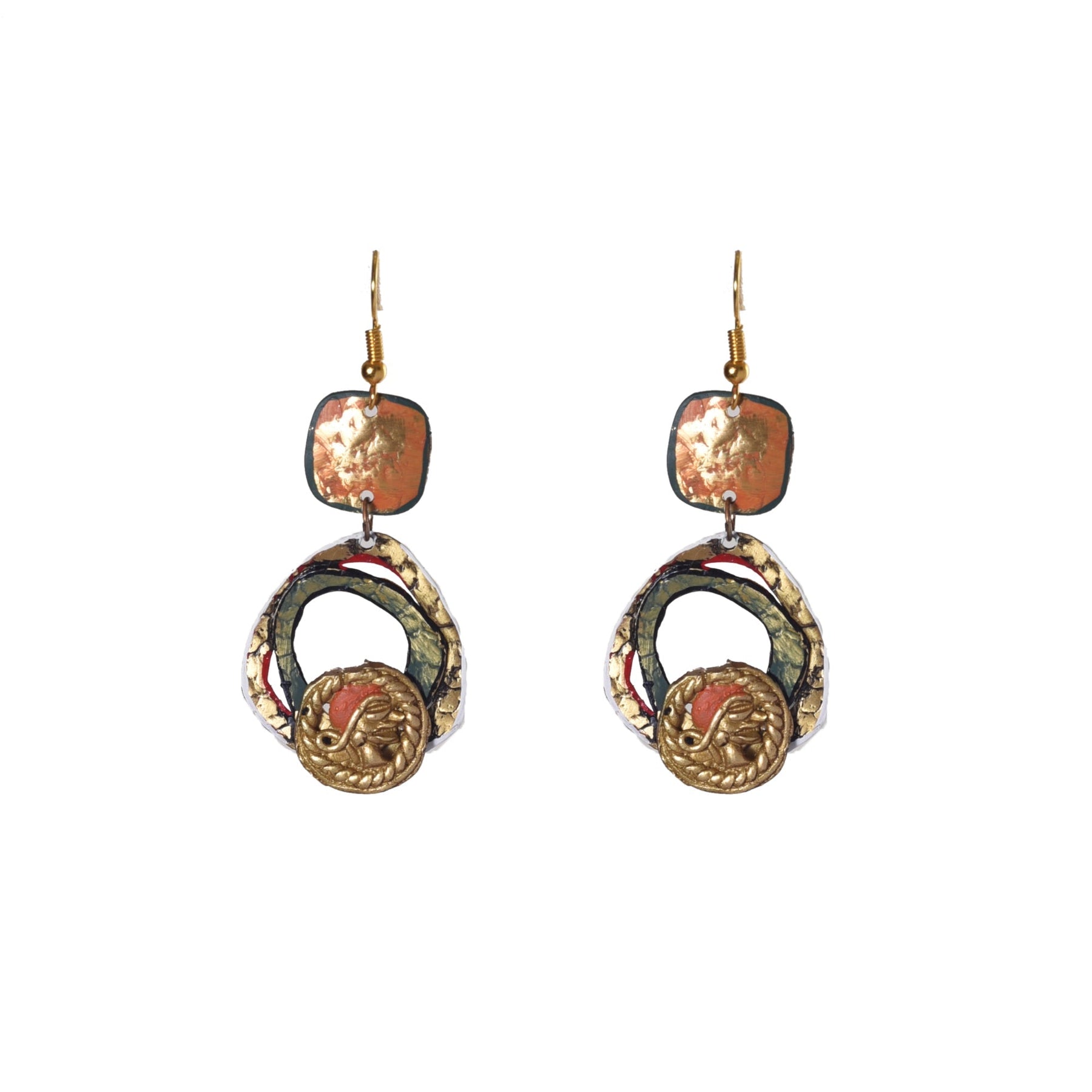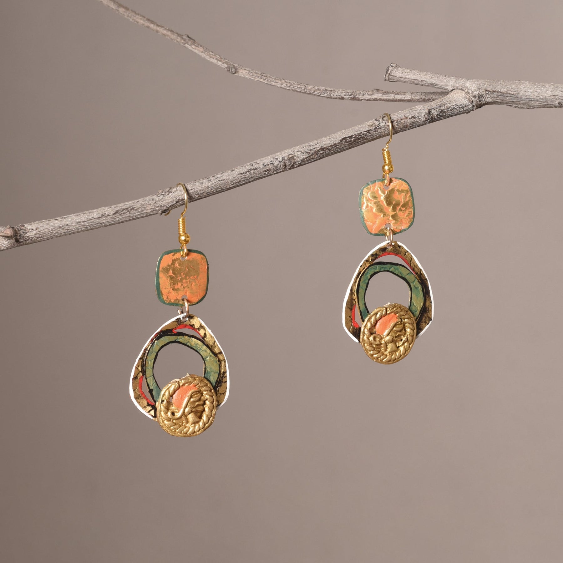 "Enchanted Blossom Earrings" bloom with brass blossoms, each one delicately handcrafted and painted with enchanting colors, evoking the magic of a blossoming garden.