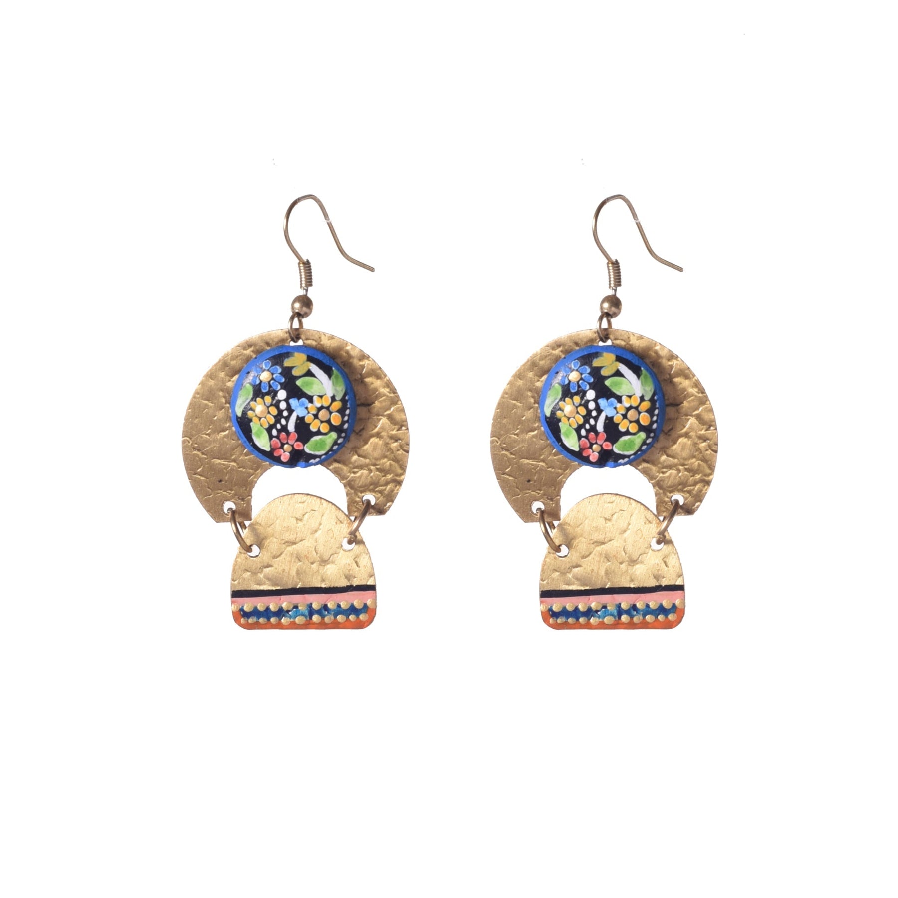 "Ethereal Droplet Earrings" cascade with brass droplets, each one meticulously crafted and adorned with subtle handpainted details, capturing the essence of ethereal beauty.