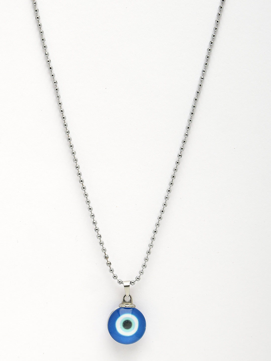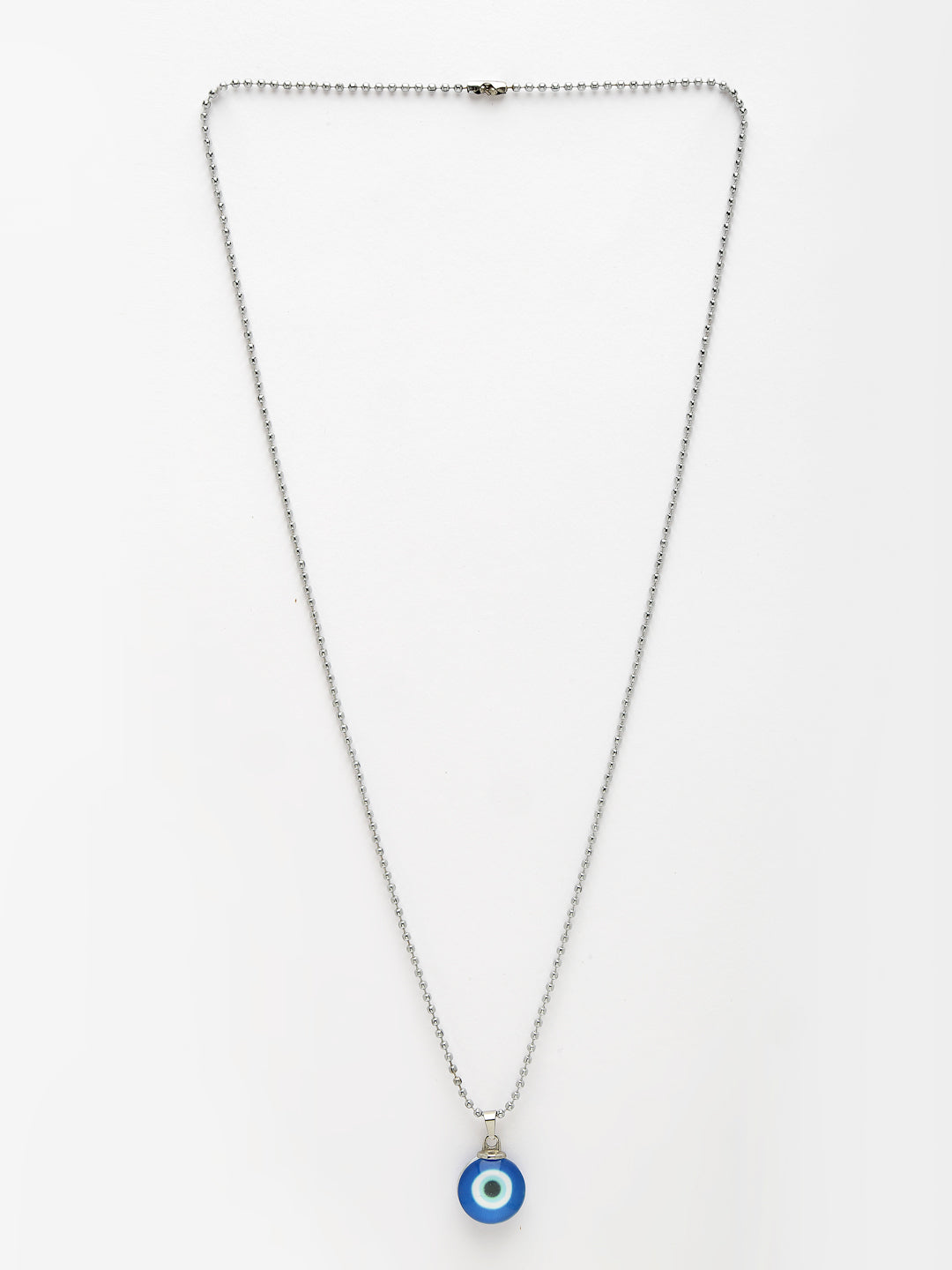 Style Note: The NVR Unisex Evil Eye Silver-Plated Stainless Steel Pendant with Chain blends spiritual symbolism with contemporary style. The silver-plated stainless steel gives it a sleek and polished appearance, suitable for everyday wear. The evil eye design adds a cultural and protective element to any outfit, making it a meaningful and stylish accessory. Pair it with casual or bohemian attire to enhance your look with a touch of mystique and charm.