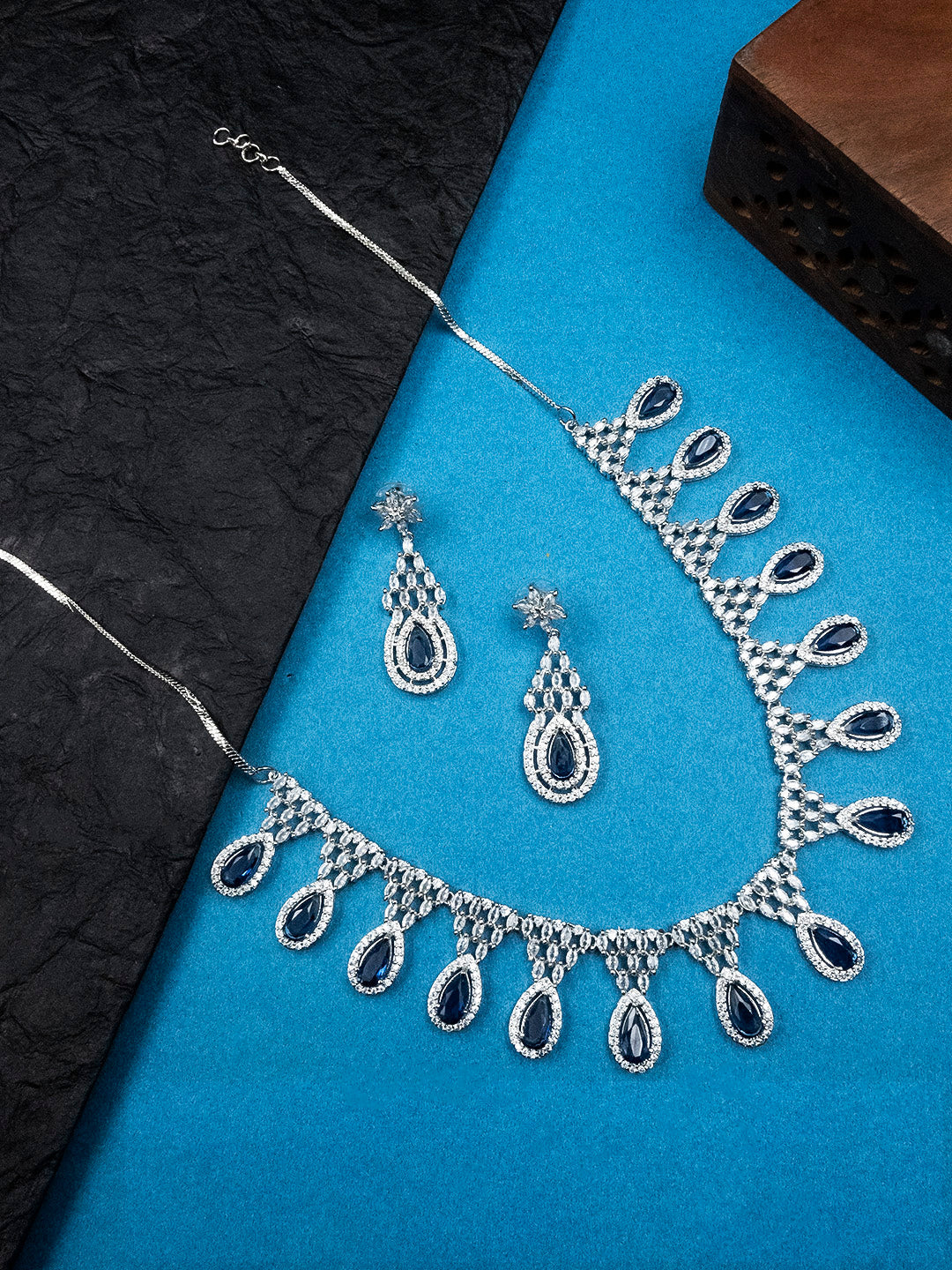 American Diamond necklace set, Sleek necklace, Minimalist jewelry, Special occasion jewelry, earrings, Modern necklace, Elegant jewelry, Fashionable necklace, Dainty earrings, Sophisticated jewelry, CZ stones, Special occasion necklace, STILEADDA