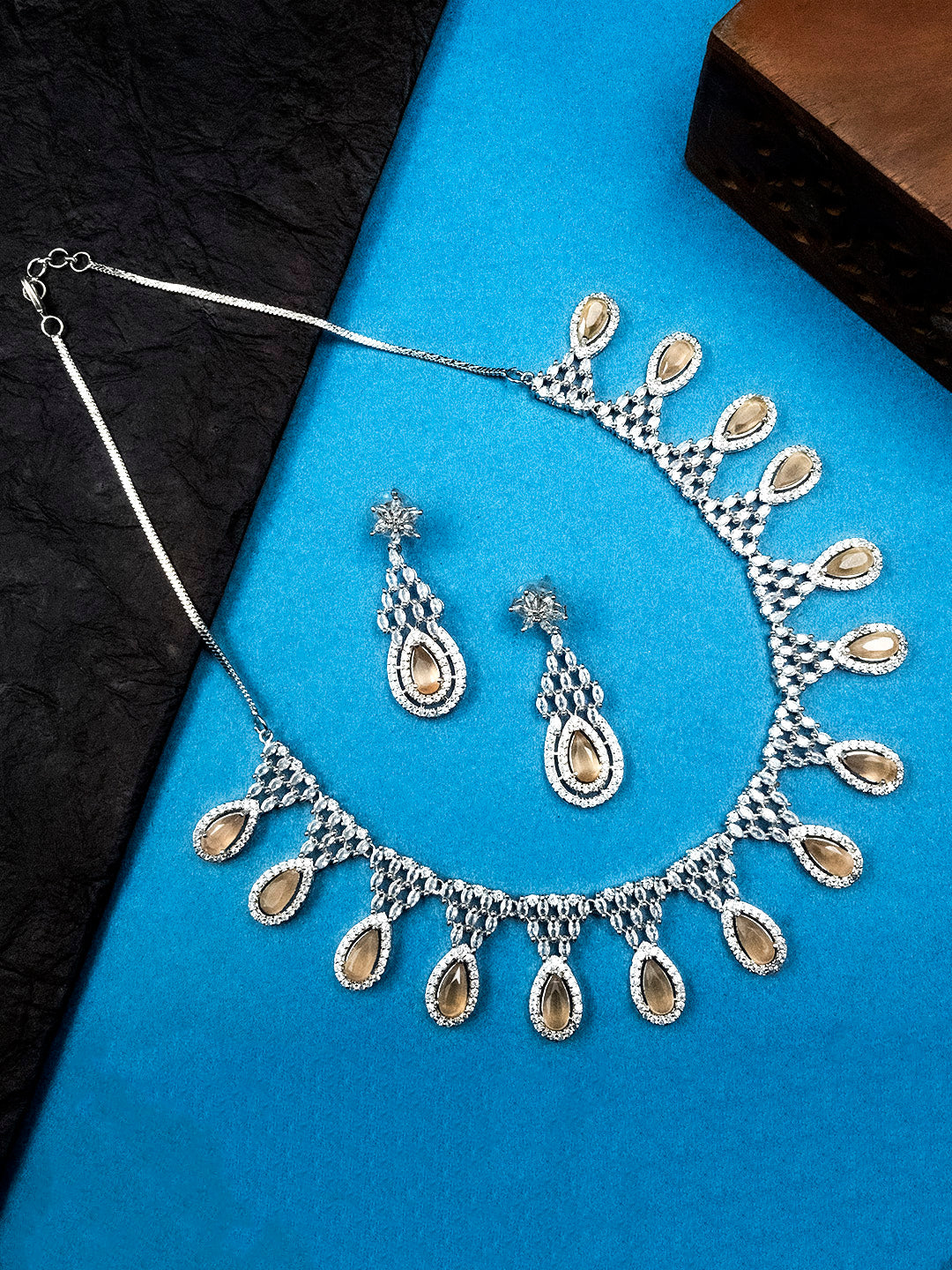 Crafted with great attention to detail, this American Diamond Sleek Necklace Set is a work of art that is sure to impress.