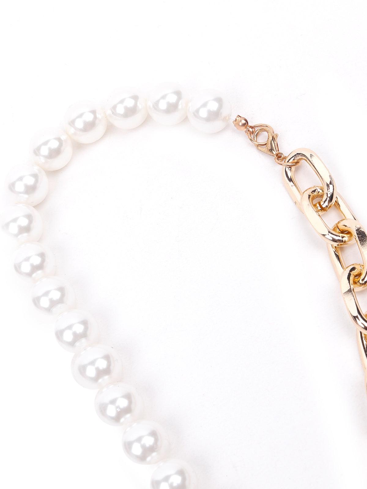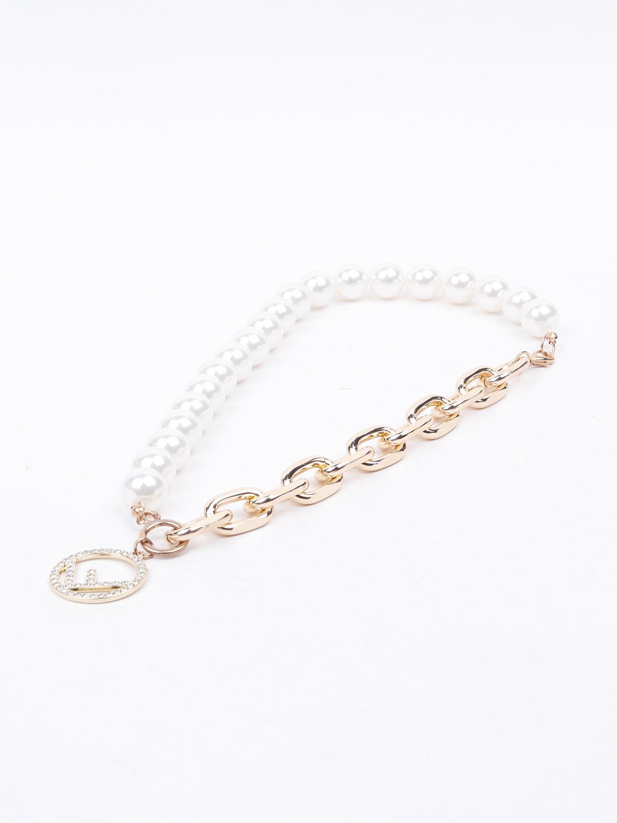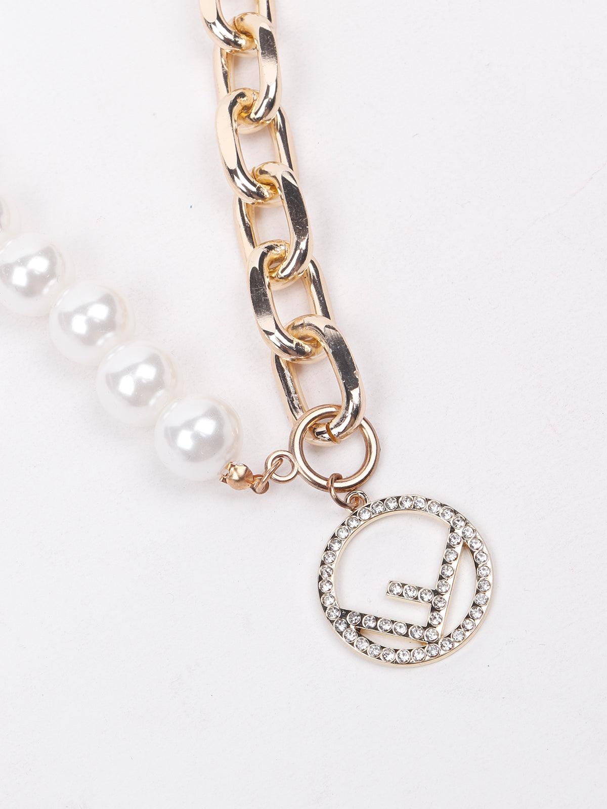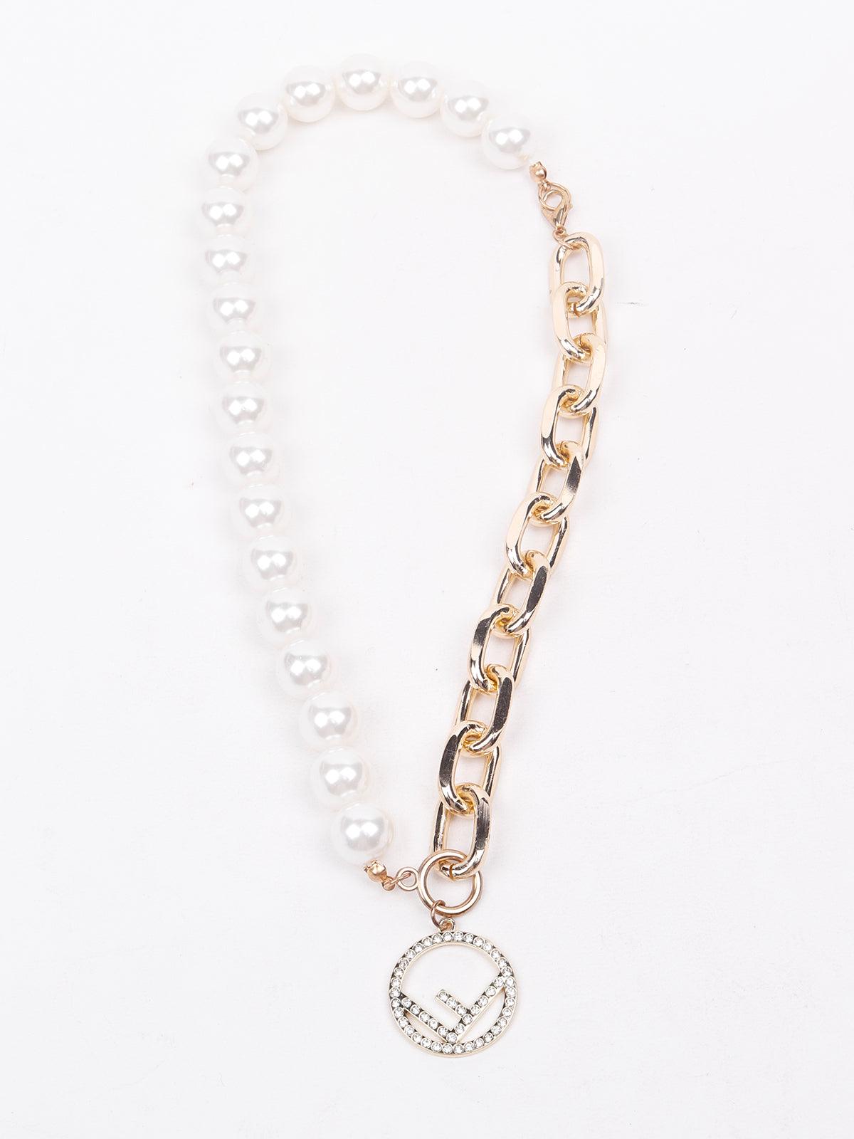 Odette presents this stunning necklace that has design detailing of half faux pearls and half interlinked gold-tone interlinked style, the necklace is embellished with a studded pendant that adds an extra style edge to the necklace. The necklace is embellished with a lobster clasp closure fastening.