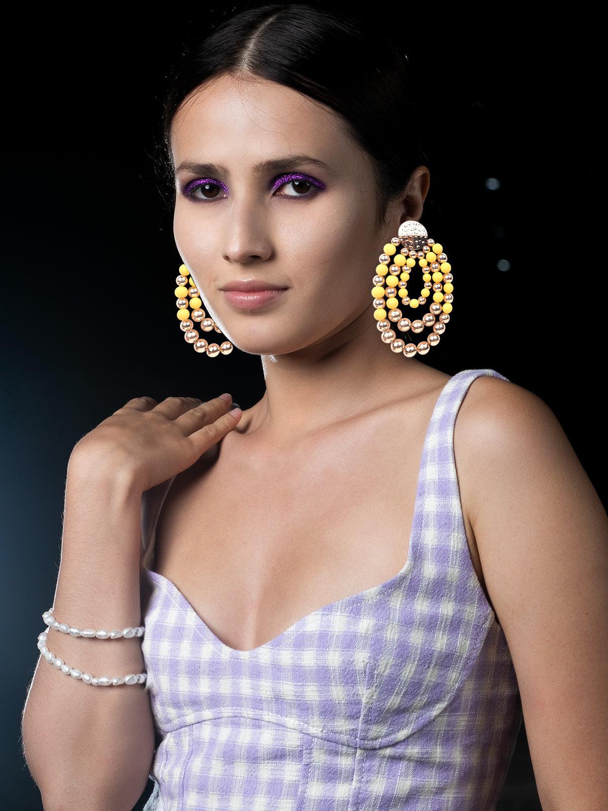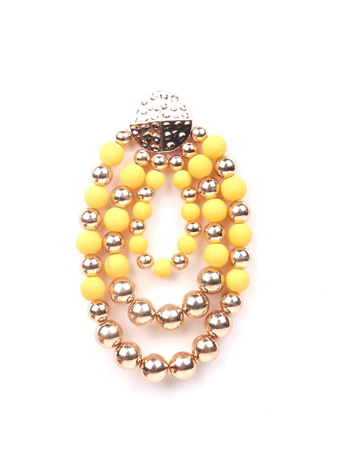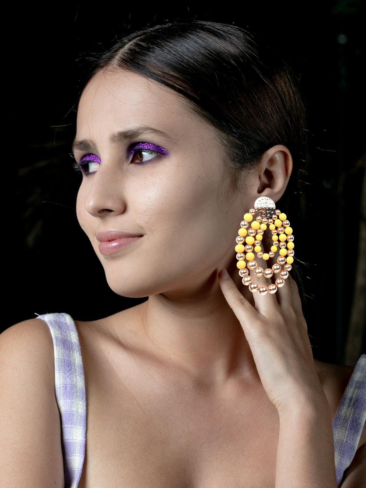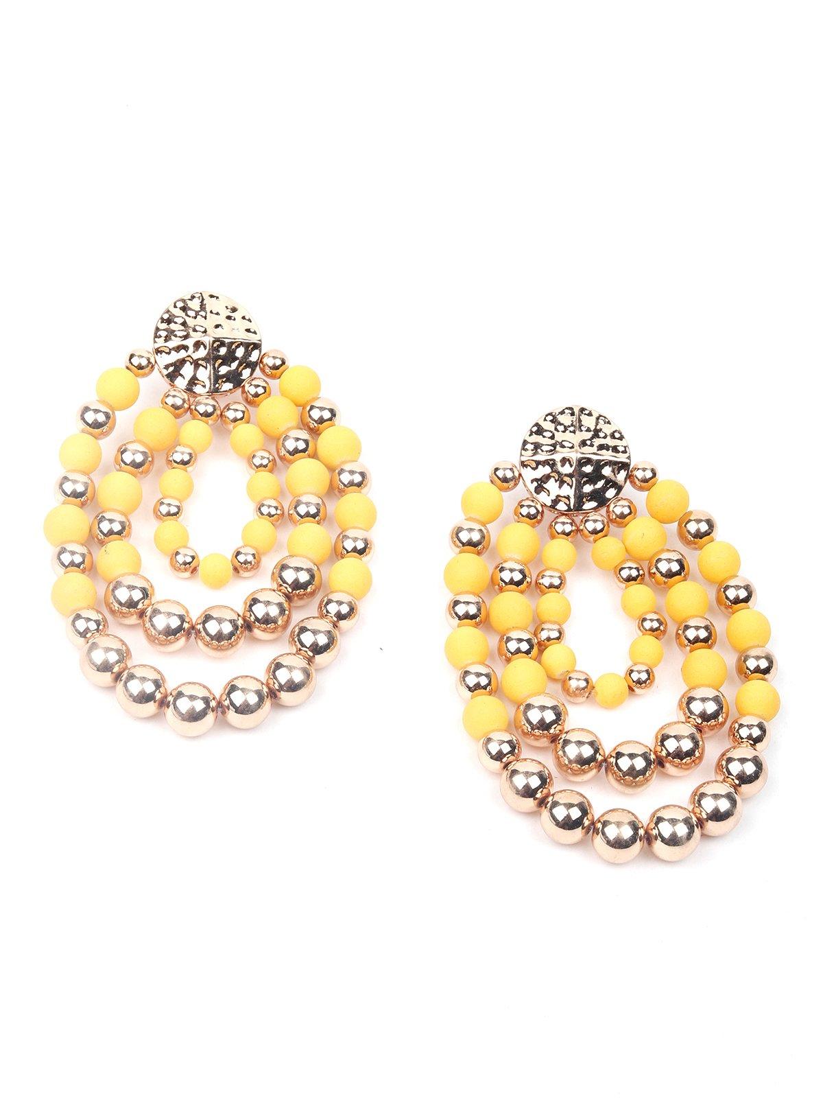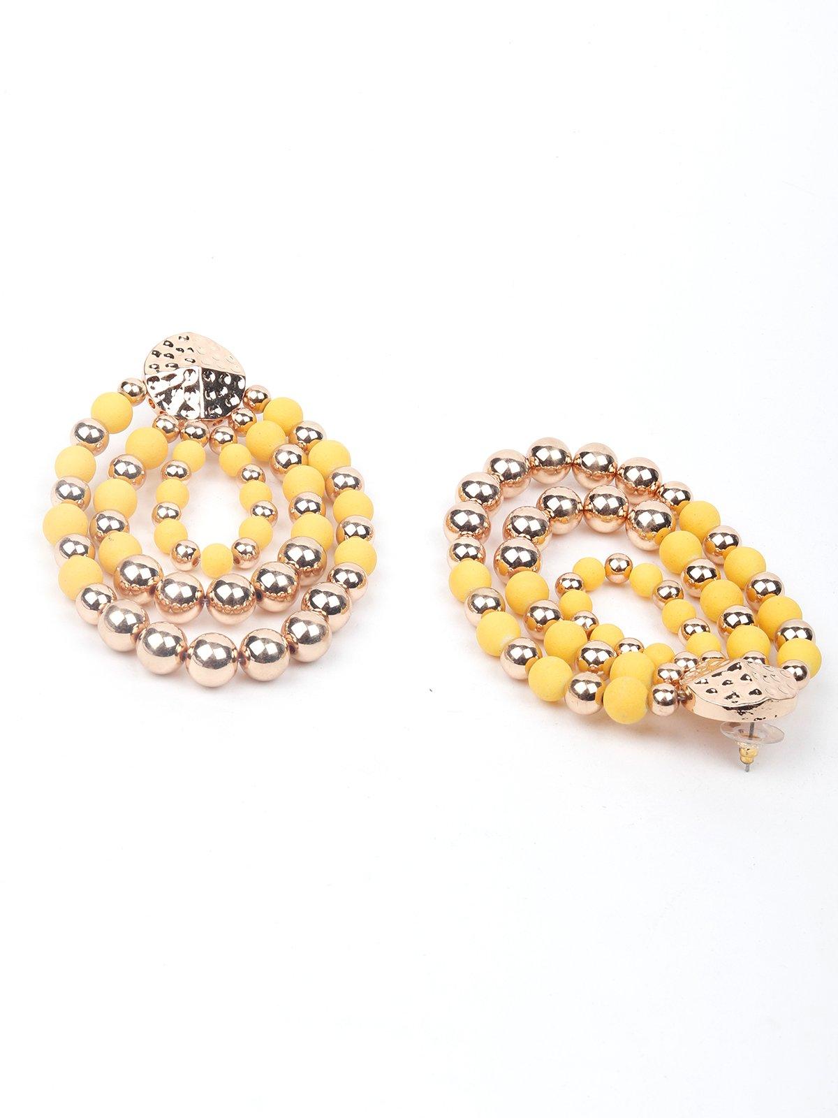 - Featuring these beautiful beaded earrings that appear in a hoop design in yellow and gold hue.