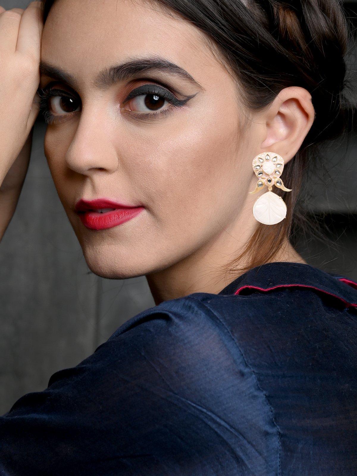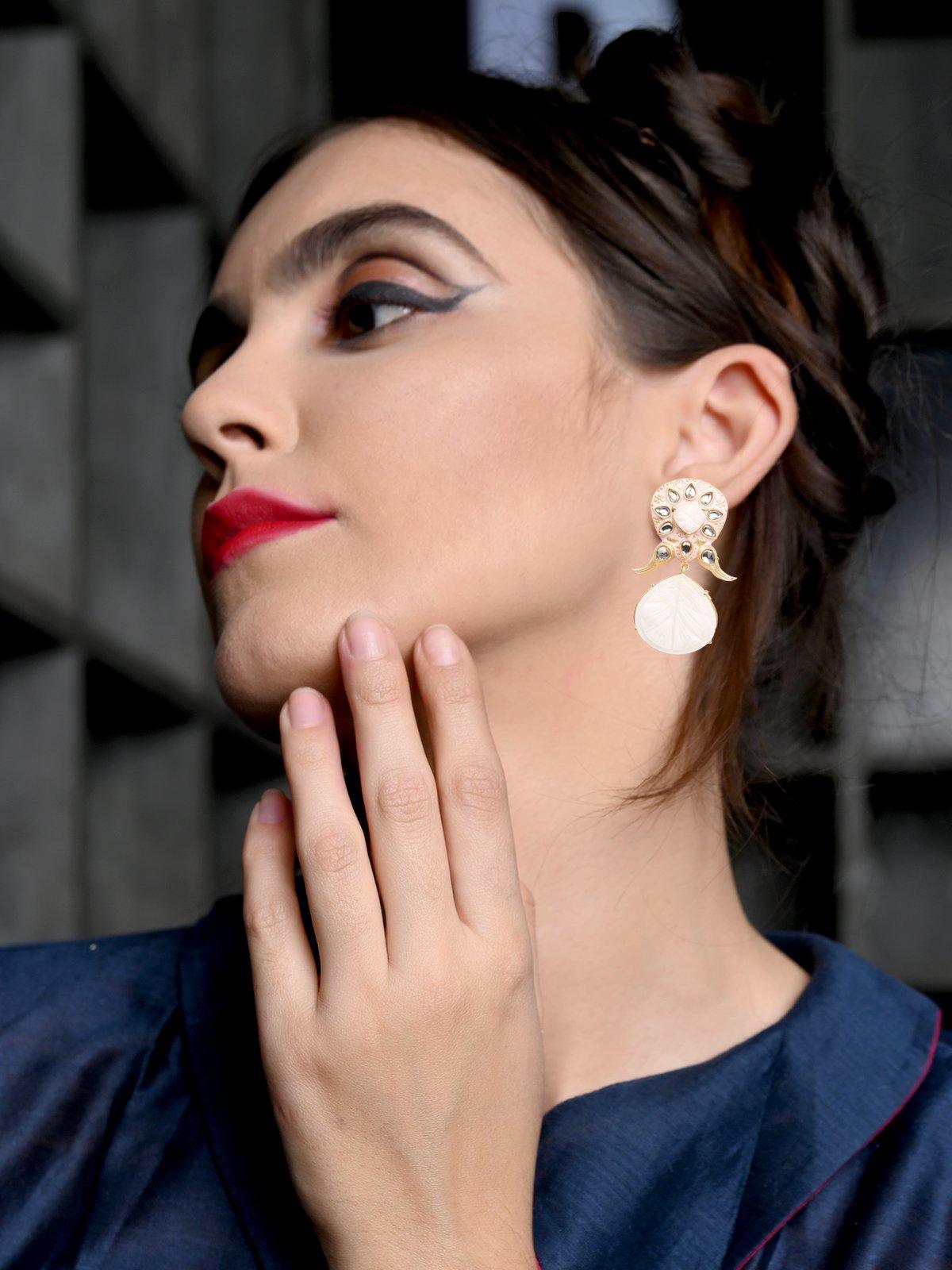 - It has a twist of Kundan work detailing but the best part of these earrings are that you definitely can wear them on Indian attire as well.