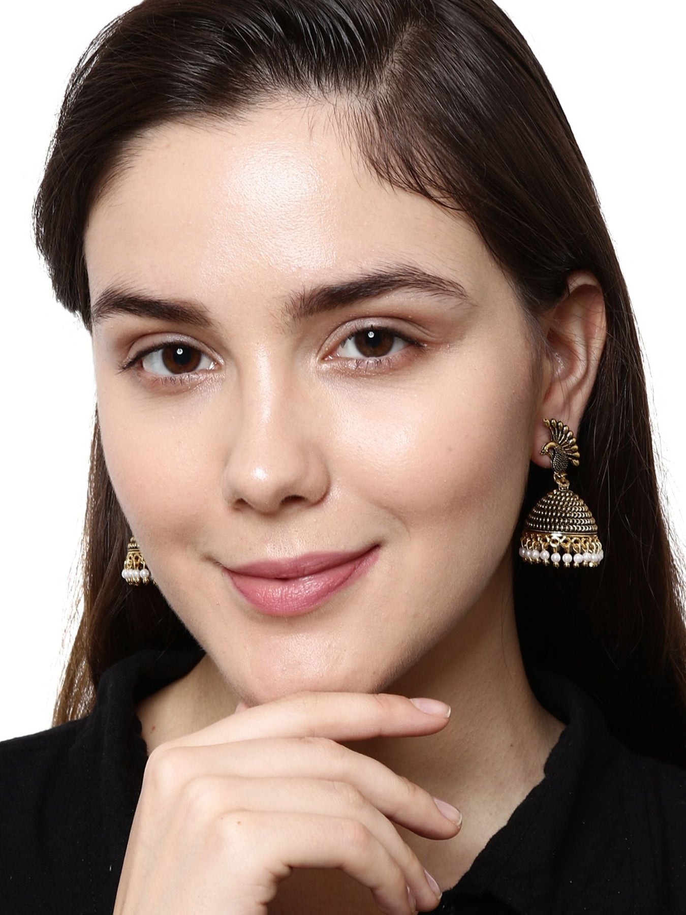 Women's Gold Plated & Black Dome Shaped Enamelled Jhumkas