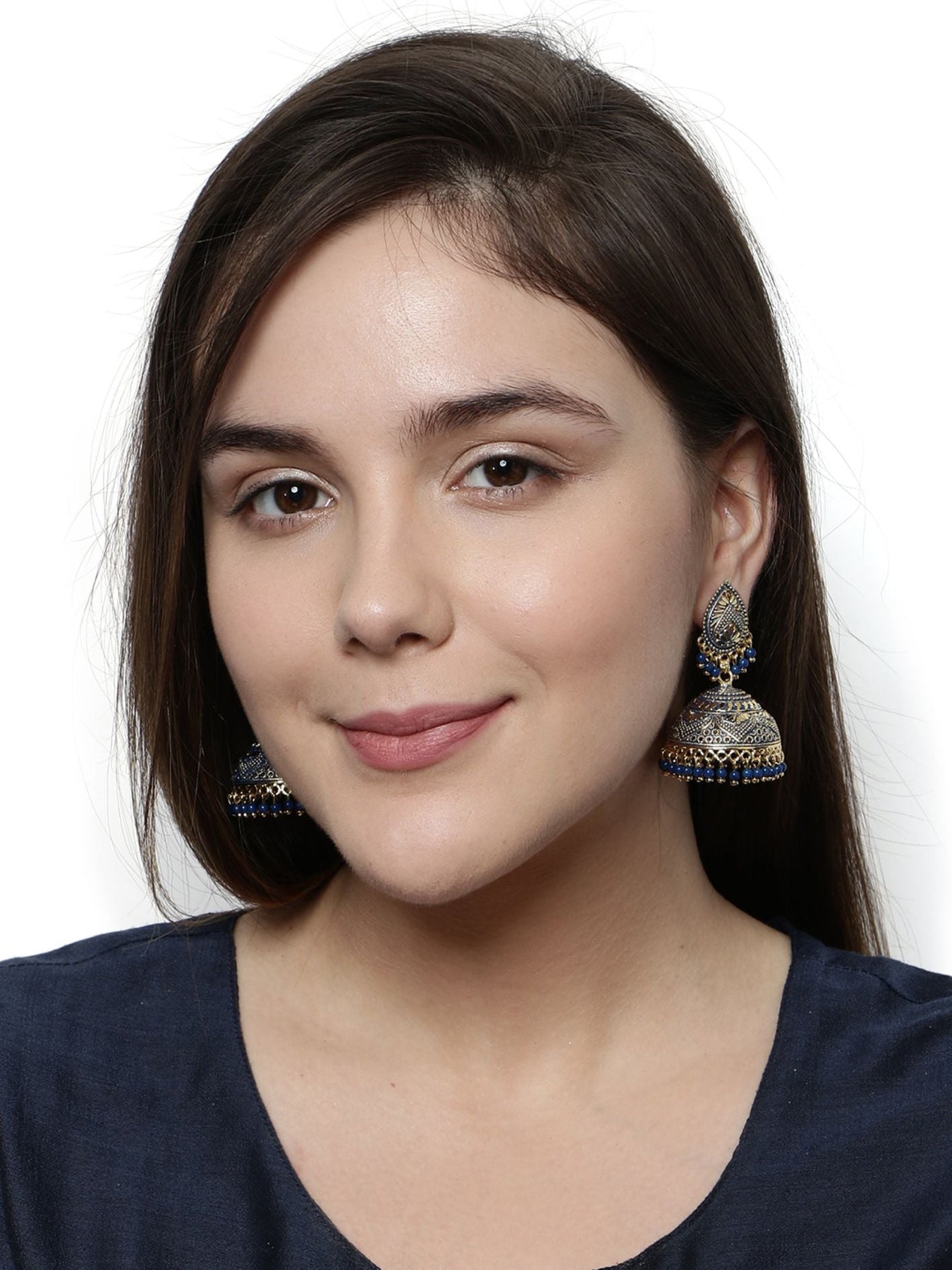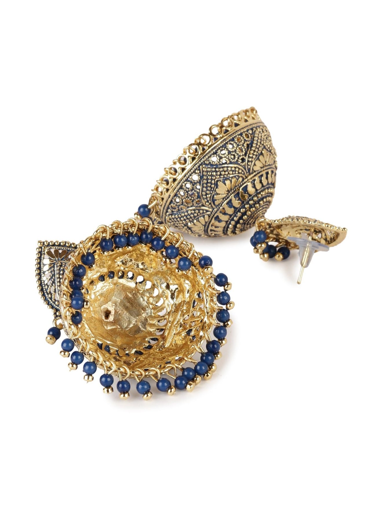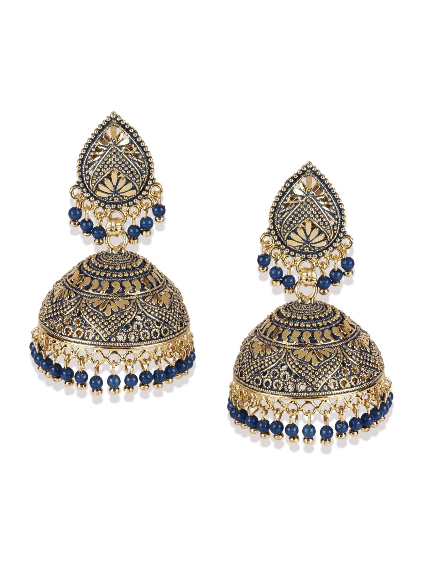 Women's Gold Plated & Blue Dome Shaped Enamelled Jhumkas