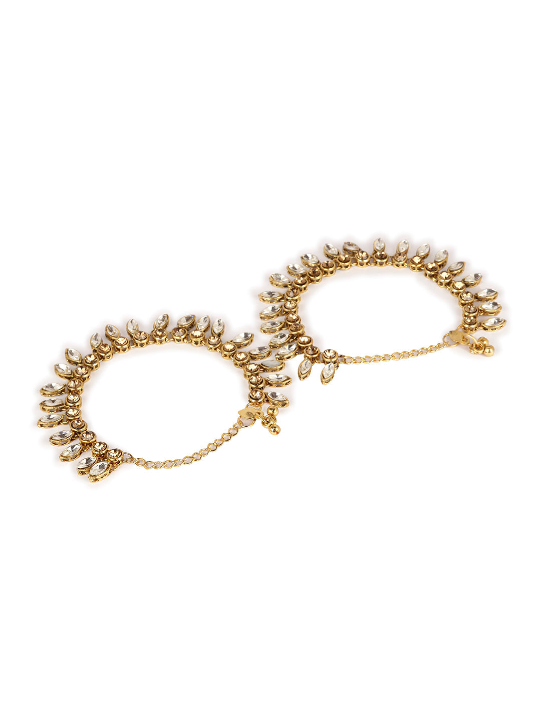 Gold Plated Designer Kundan Anklet for Bridals Women And Girls-Onesize-White