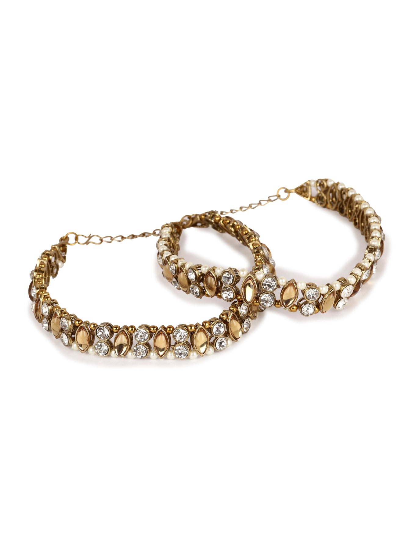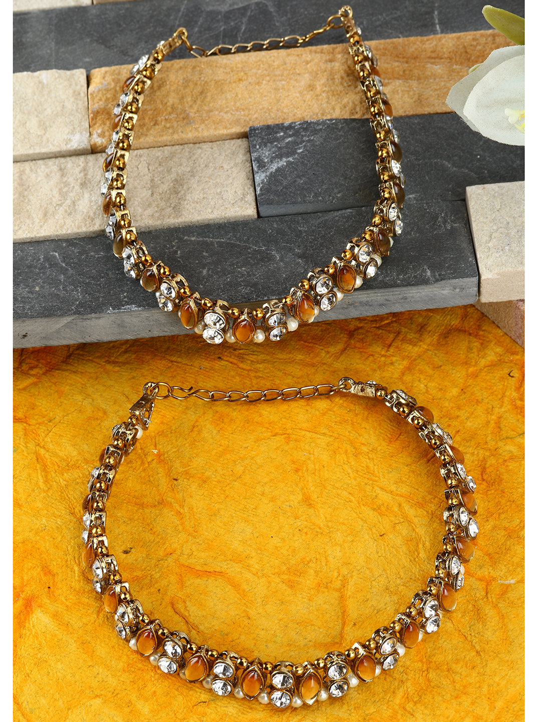 Gold Plated Designer Kundan Anklet for Bridals Women And Girls-Onesize-White