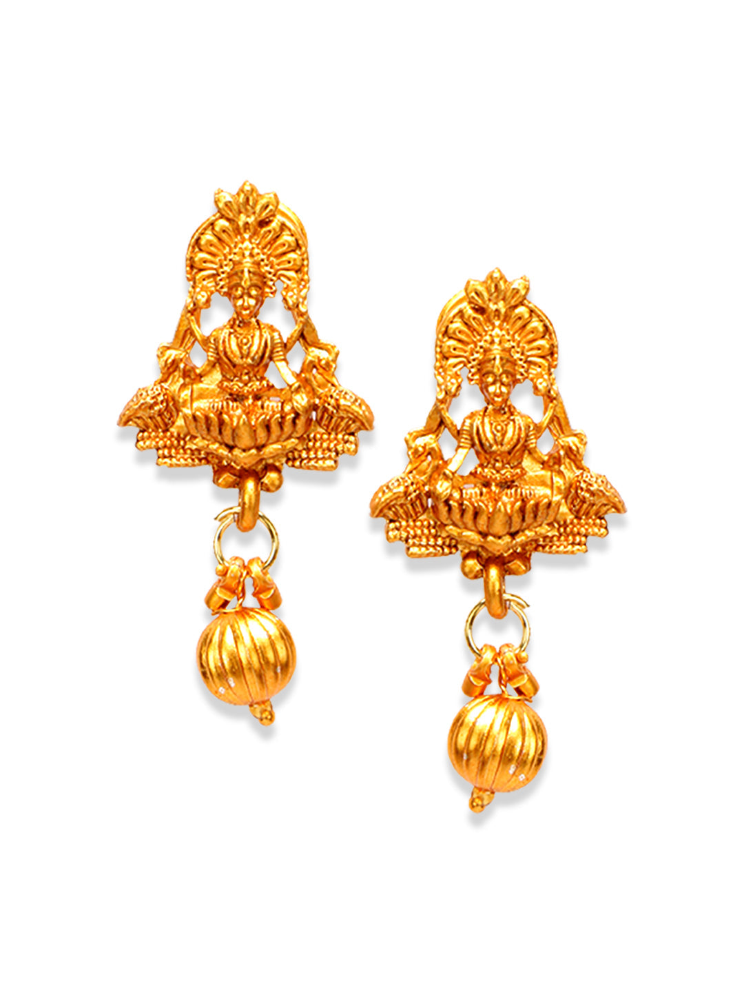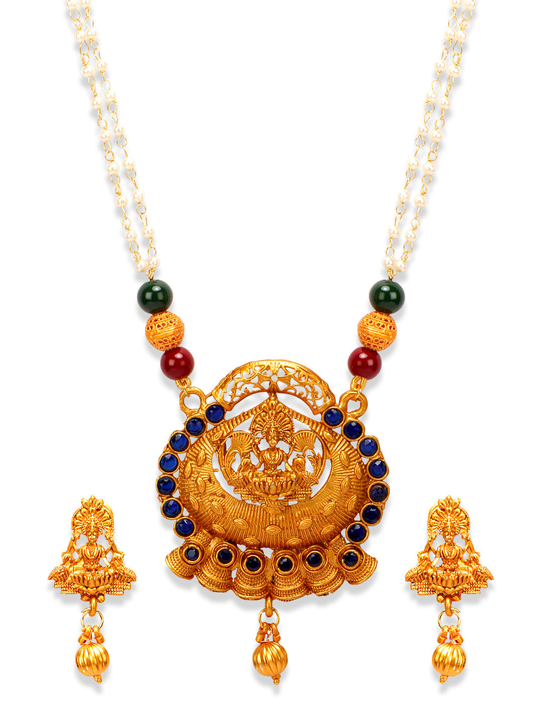 Women's Gold Plated Maa Laxmi Stone Studded Necklace With Earrrings