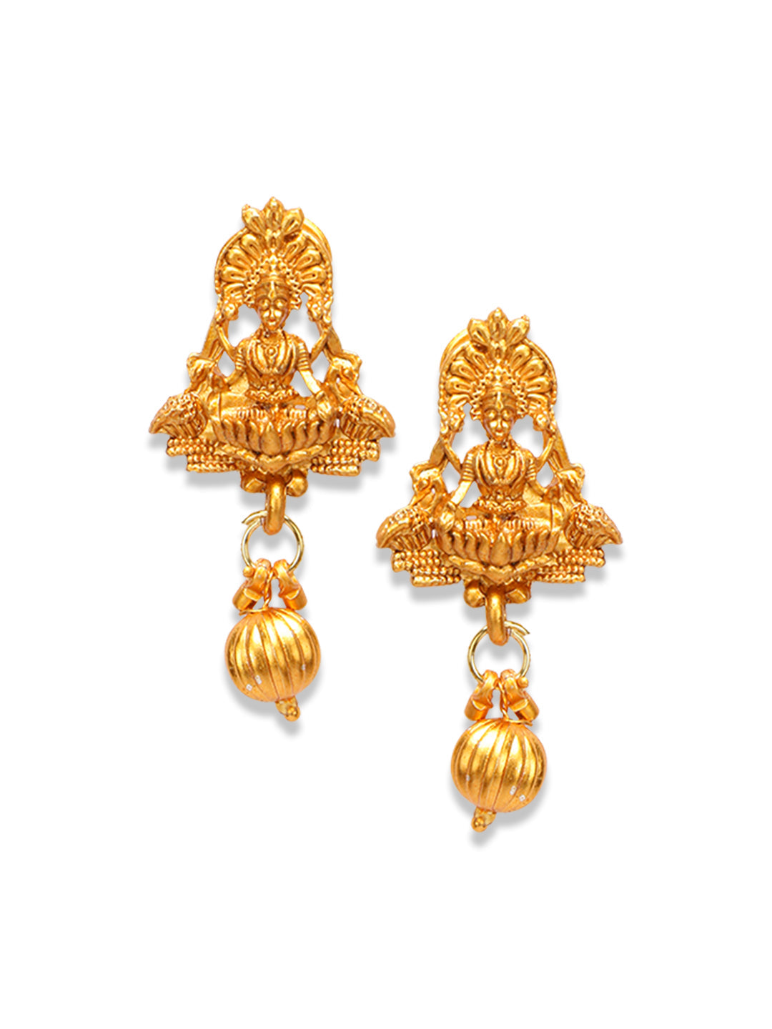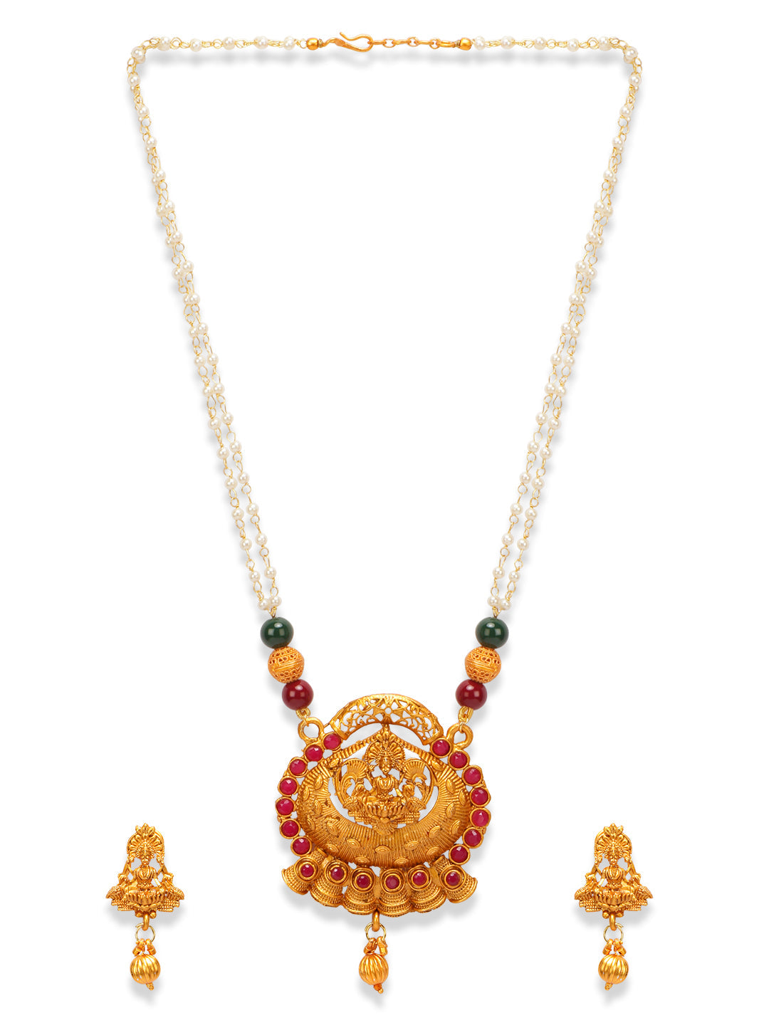 Women's Gold Plated Maa Laxmi Stone Studded Necklace With Earrrings