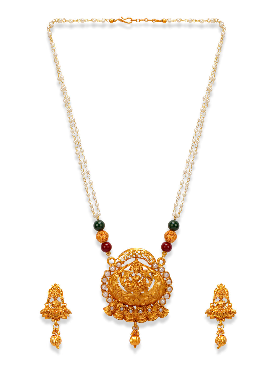 Women's Gold Plated Maa Laxmi Stone Studded Necklace With Earrrings