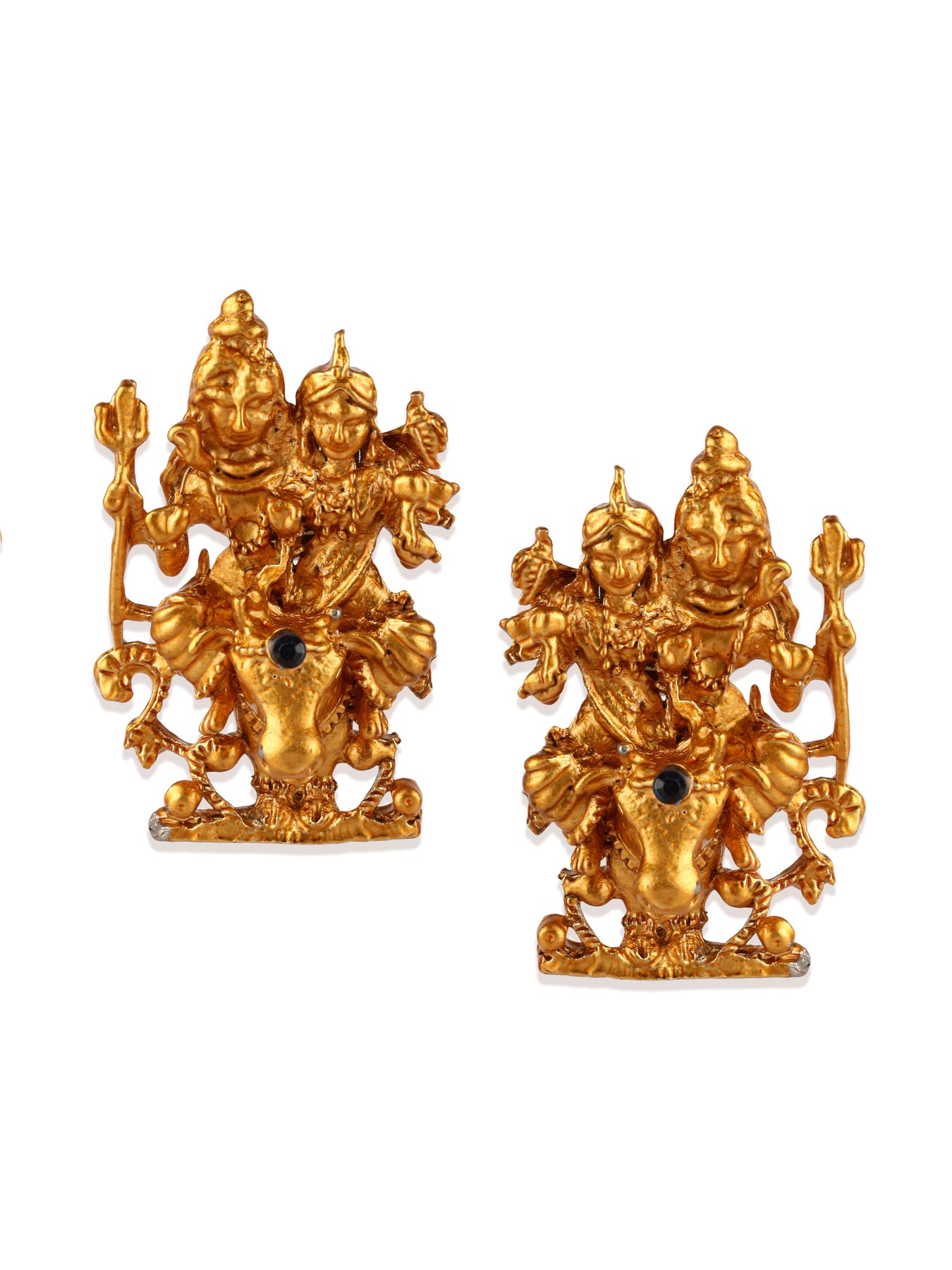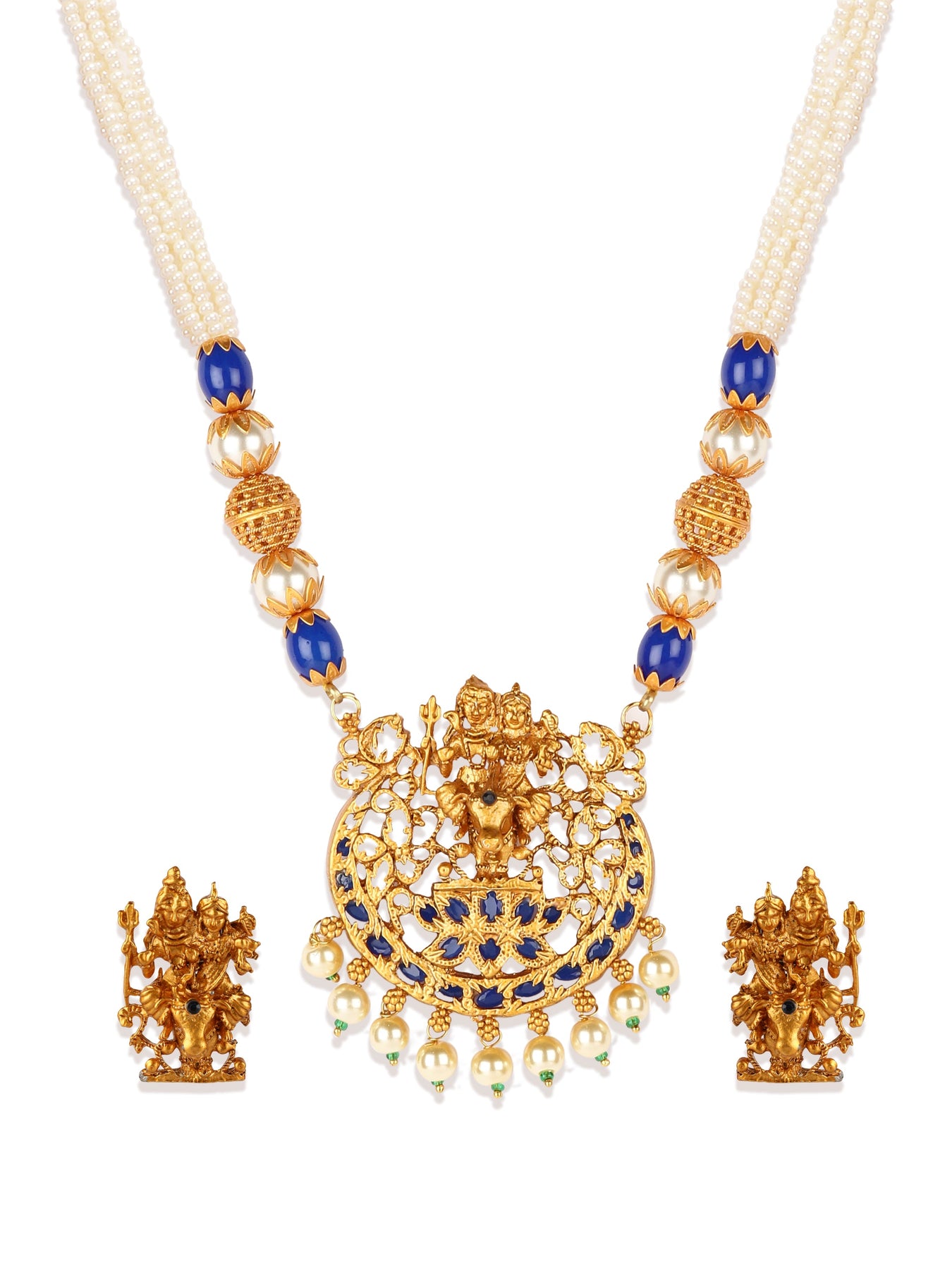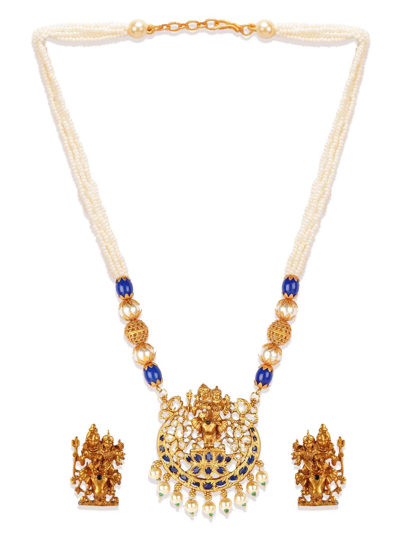 Women's Gold Plated Maa Laxmi Stone Studded Necklace With Earrrings