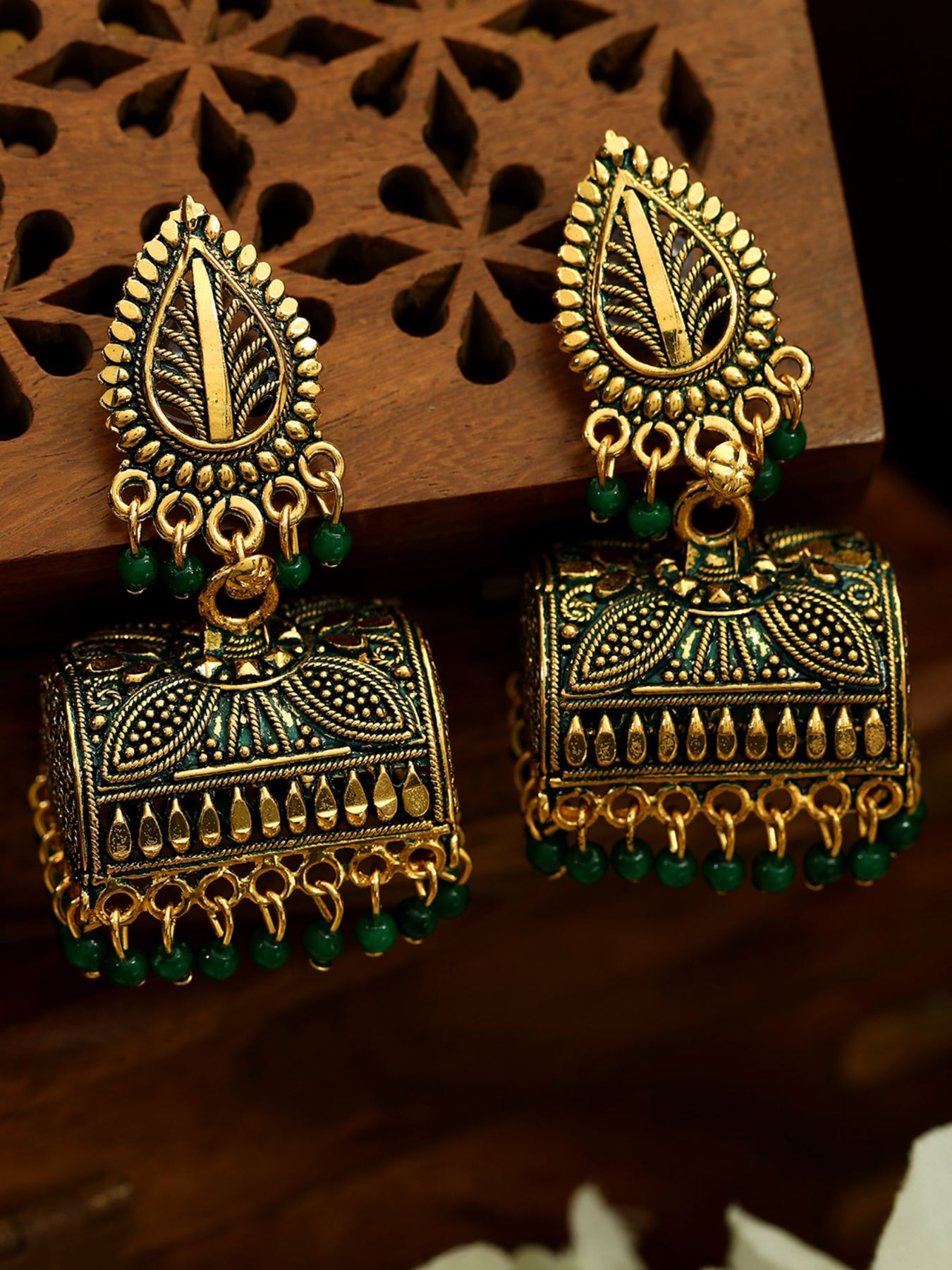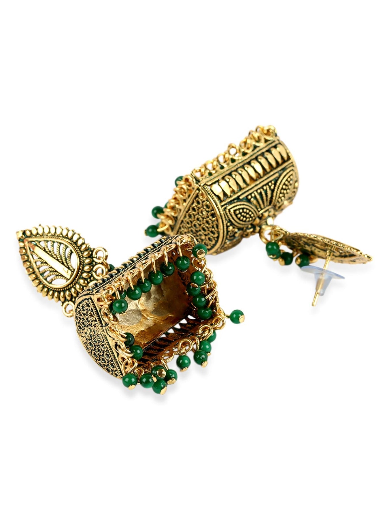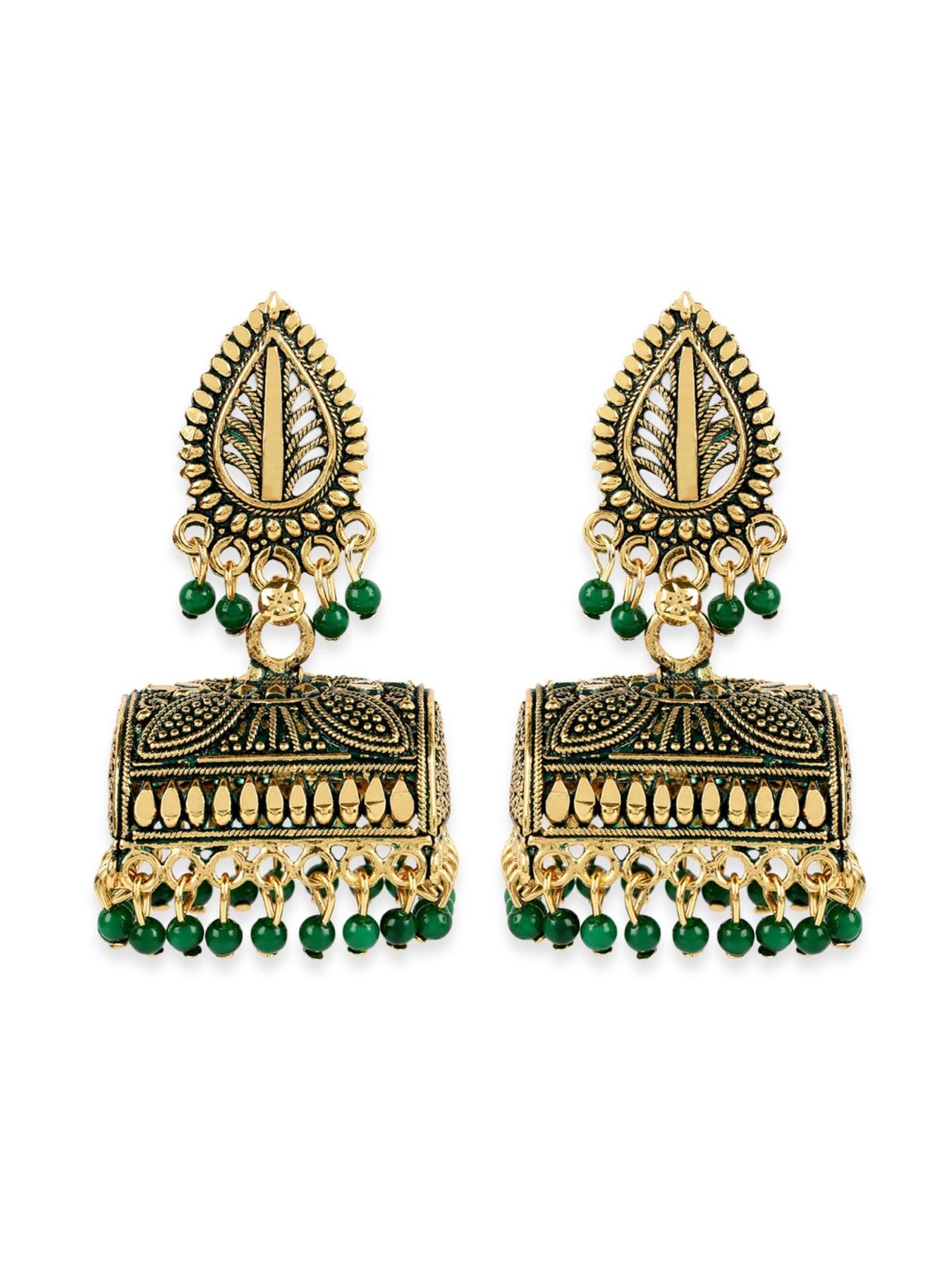 Gold Plated Multicolour Doli Shape Jhumka Earring-Onesize-Green Secured With Post And Back Closure, Details: Enamelled