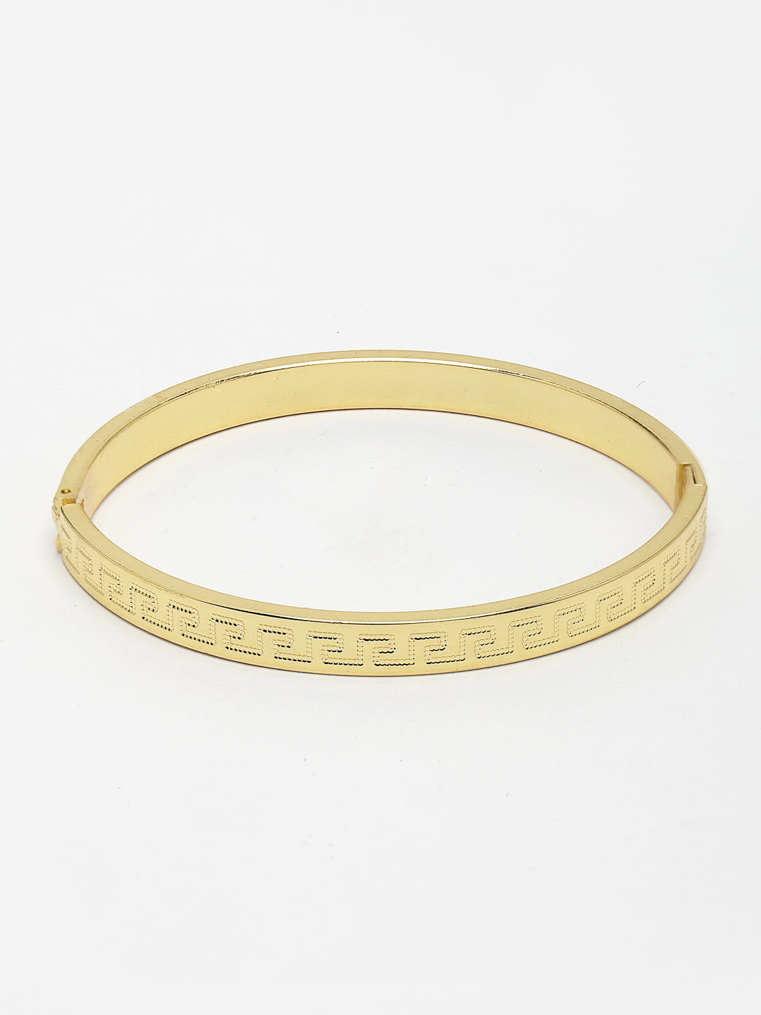 Style Note: The NVR Men Gold-Plated Stainless Steel Kada Bracelet is a versatile and stylish accessory that enhances a variety of outfits and occasions. Its elegant gold-plated finish adds a touch of luxury and sophistication, making it suitable for both casual and formal settings. Whether paired with a T-shirt and jeans for a casual look, a button-down shirt and chinos for a smart-casual ensemble, or a suit for formal events, this bracelet brings a refined edge to any outfit. Additionally, it can complement traditional attire, such as a kurta or sherwani, during festive occasions. Durable and timeless, this bracelet is perfect for daily wear, social gatherings, and special celebrations, adding a polished and contemporary flair to your style.