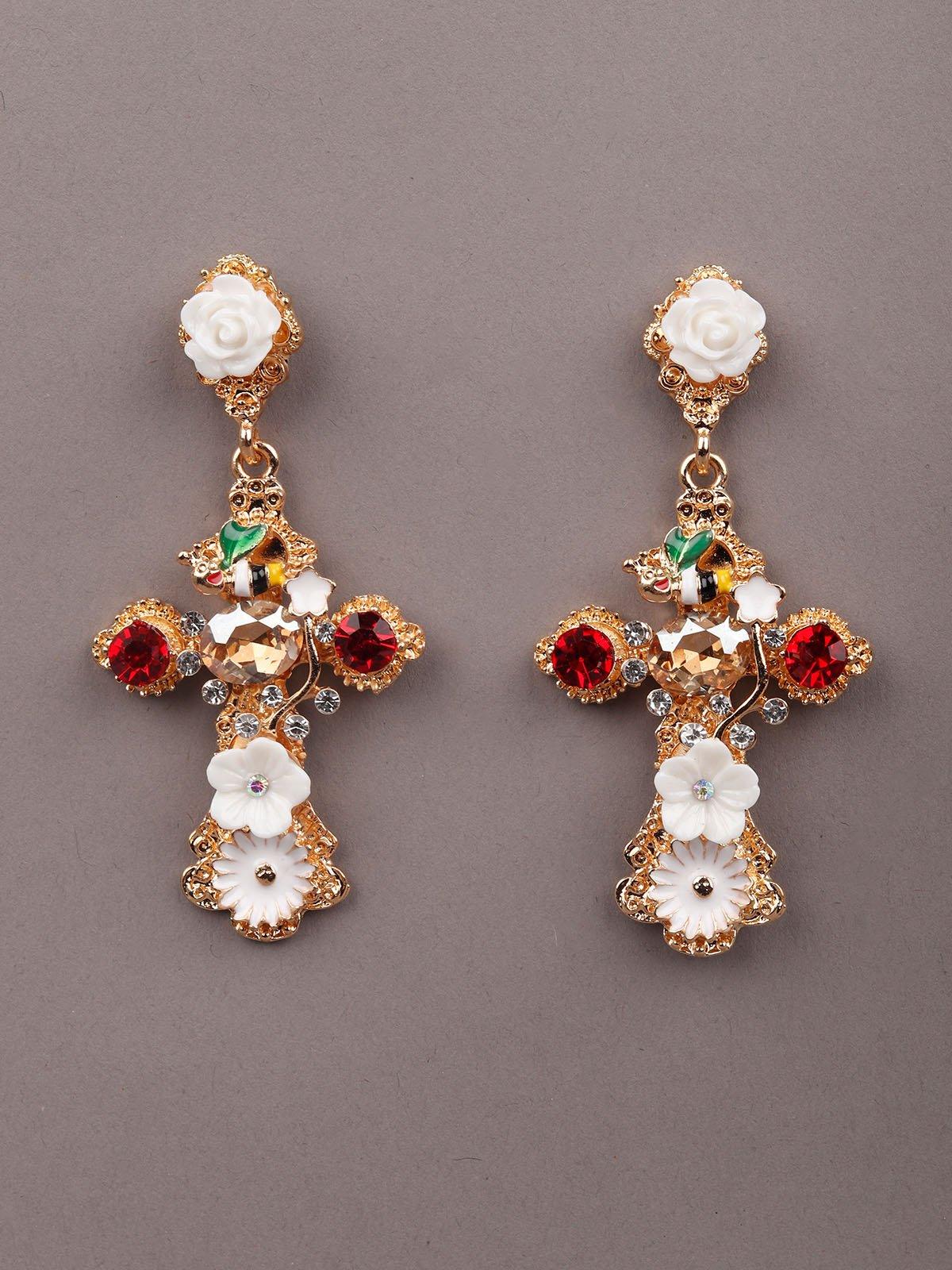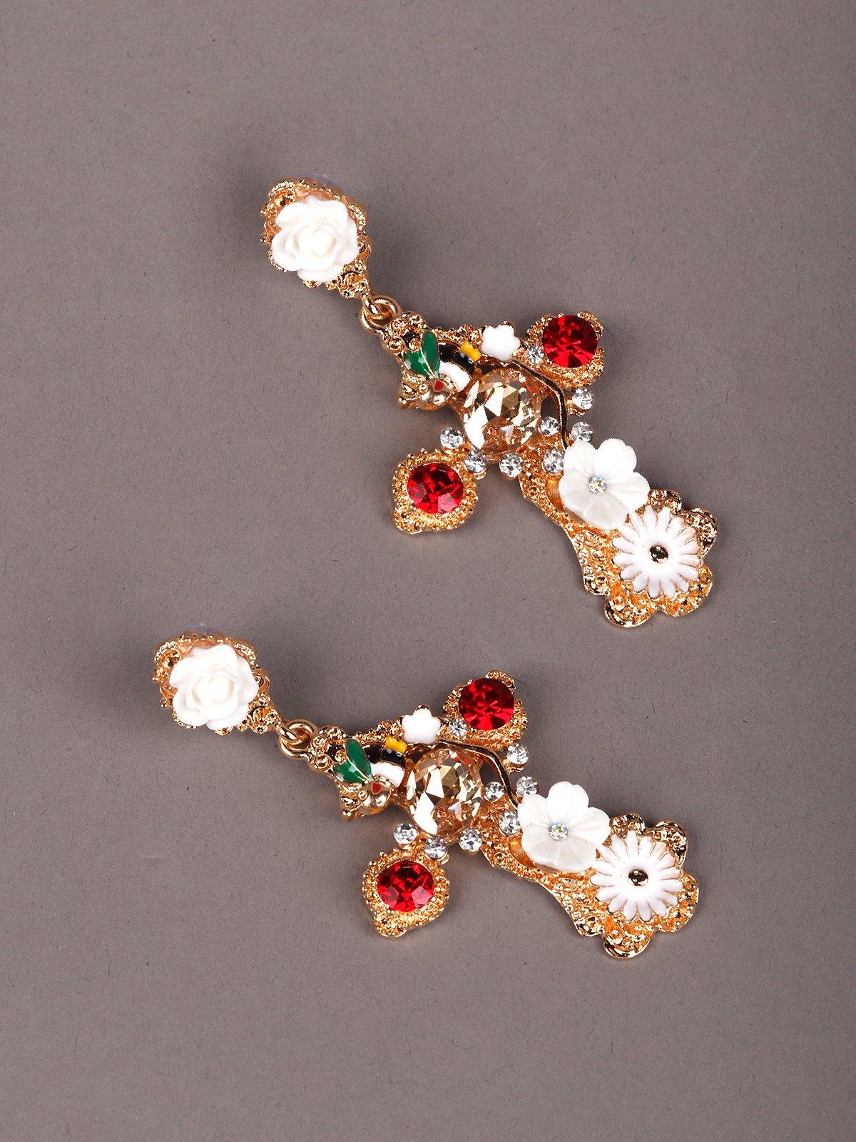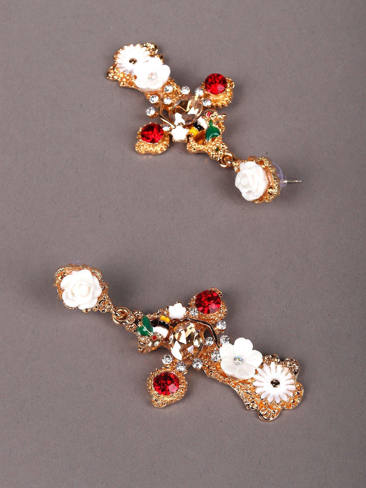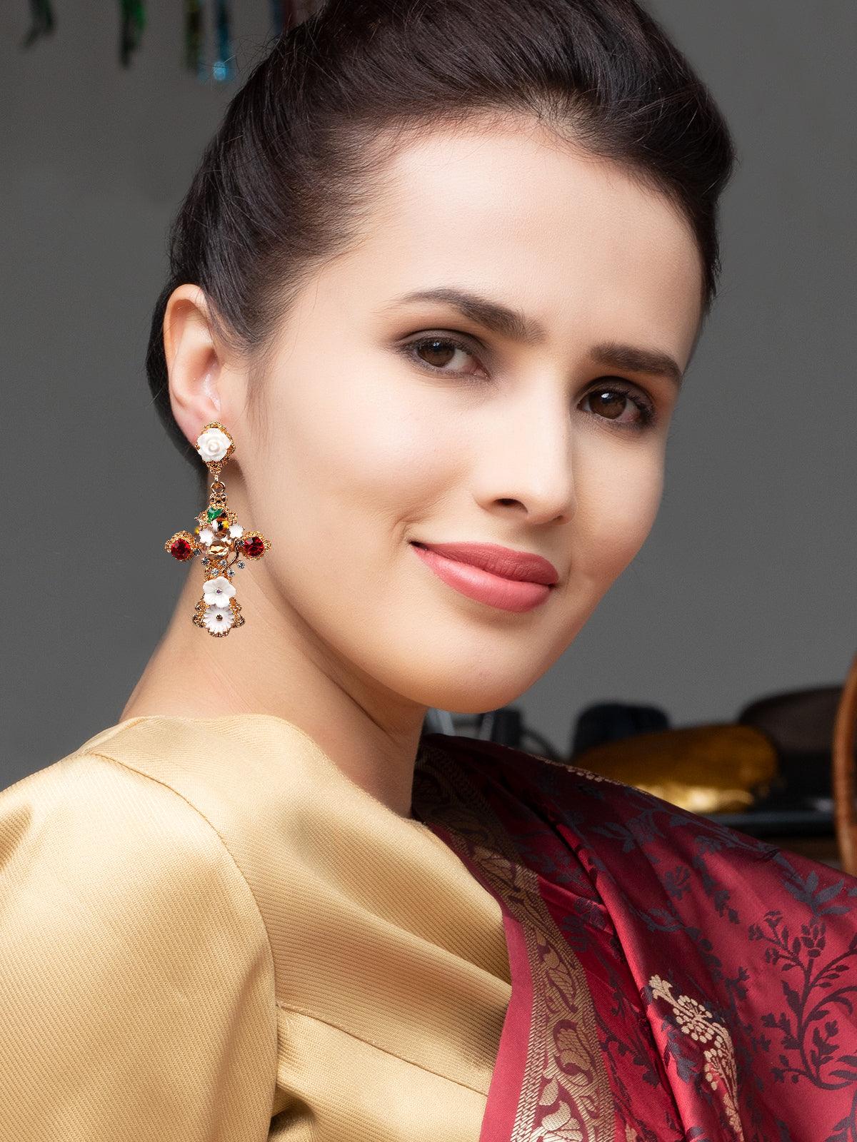 - These stunning drop earrings embellished with Rubies and cute white flowers give a beautiful vibe to these earrings.