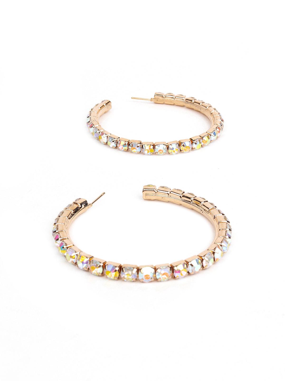 These stunning earrings are embellished with tightly secured crystals and come in gold-tone. They are subtle yet extremely stylish, the shine from the crystals are sure to grab all the attention to your face The earrings are secured with a push pin closure.