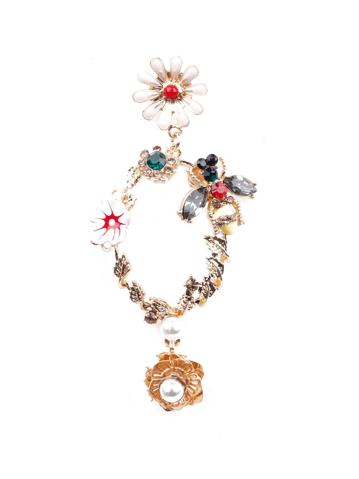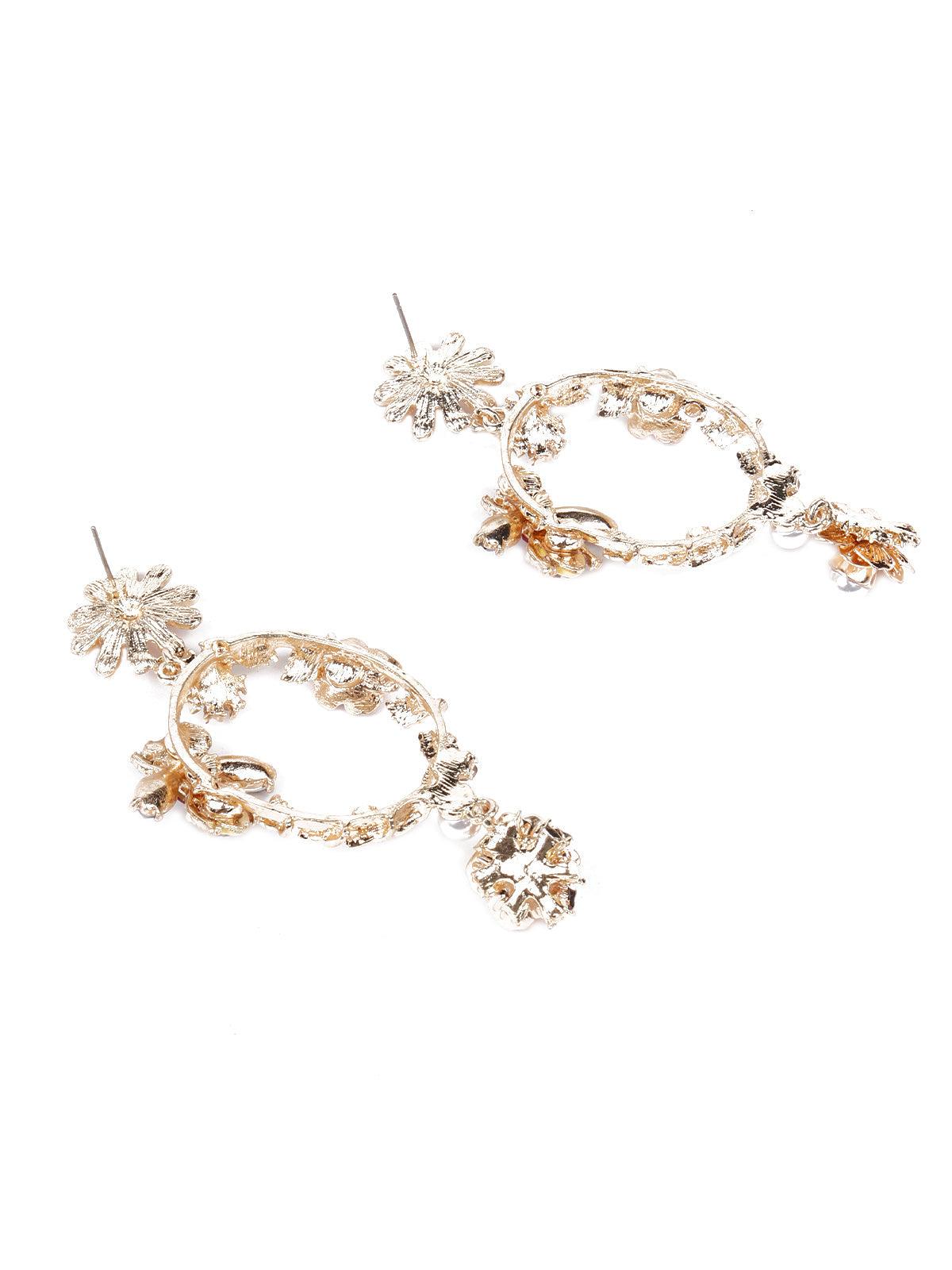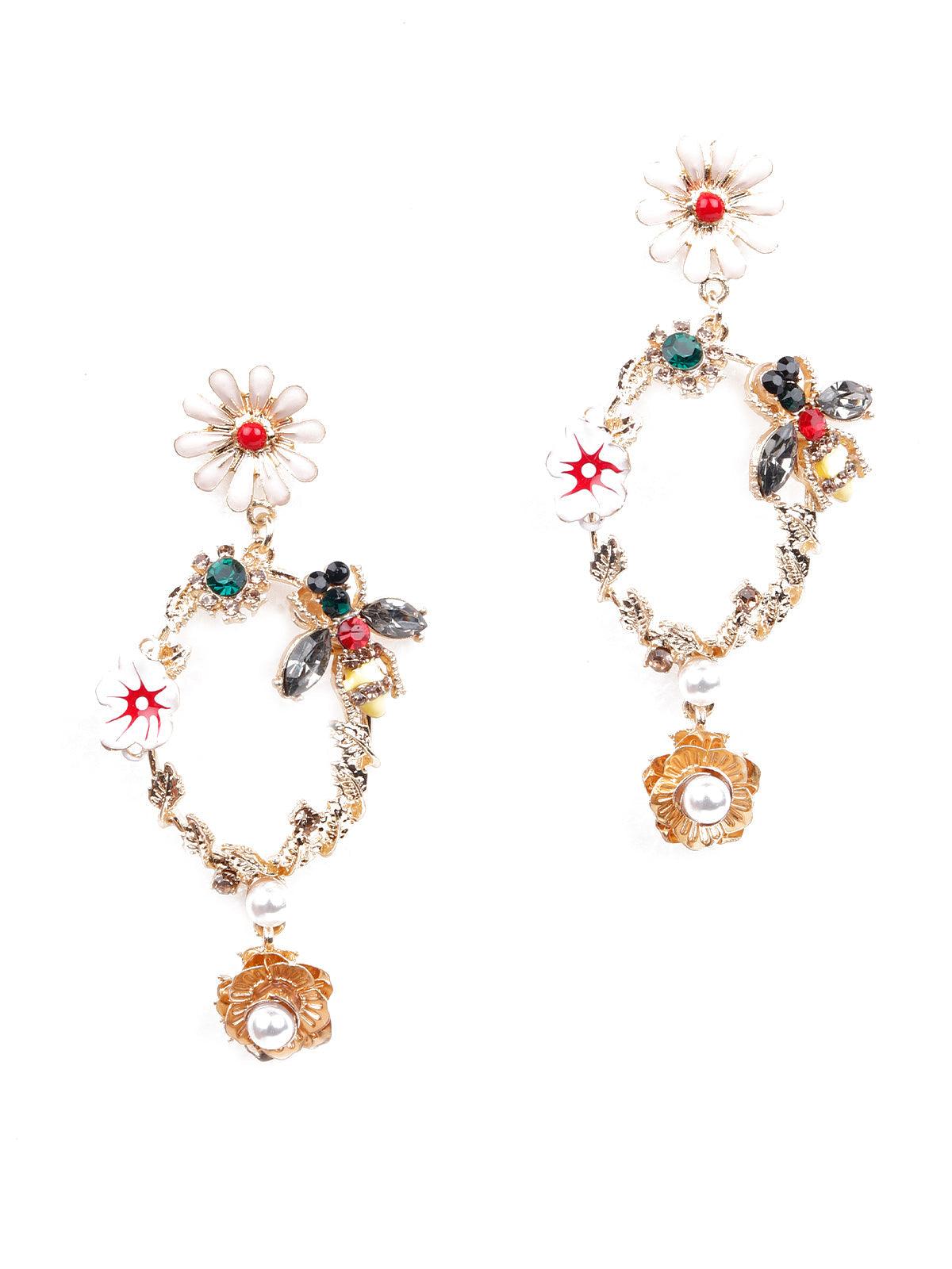 Odette presents this gorgeous earring that is embellished with flowers in multicolour with golden rounded structure, the earrings are crafted with high-quality metal. The earrings are secured with a push back pin closure fastening.
