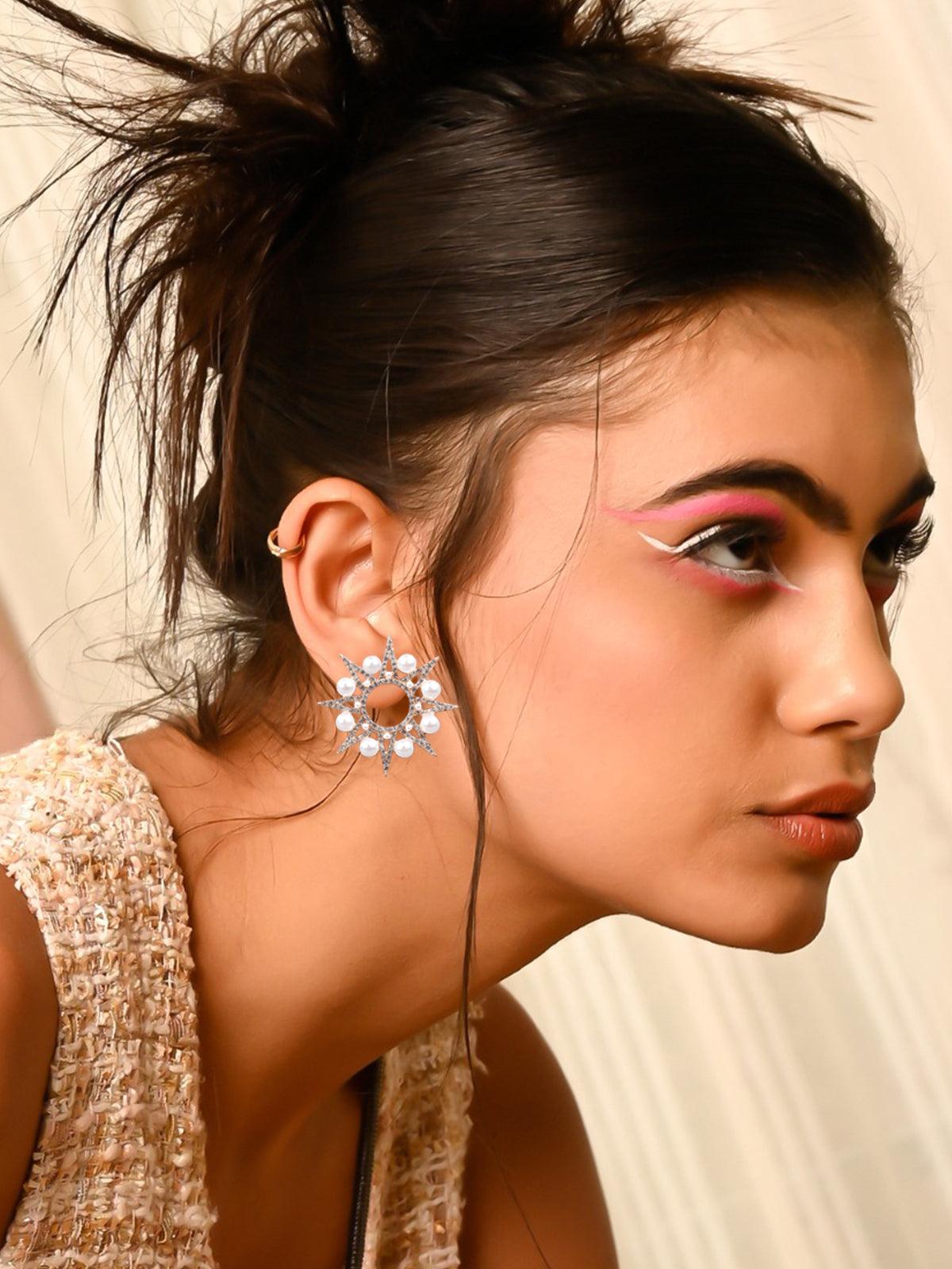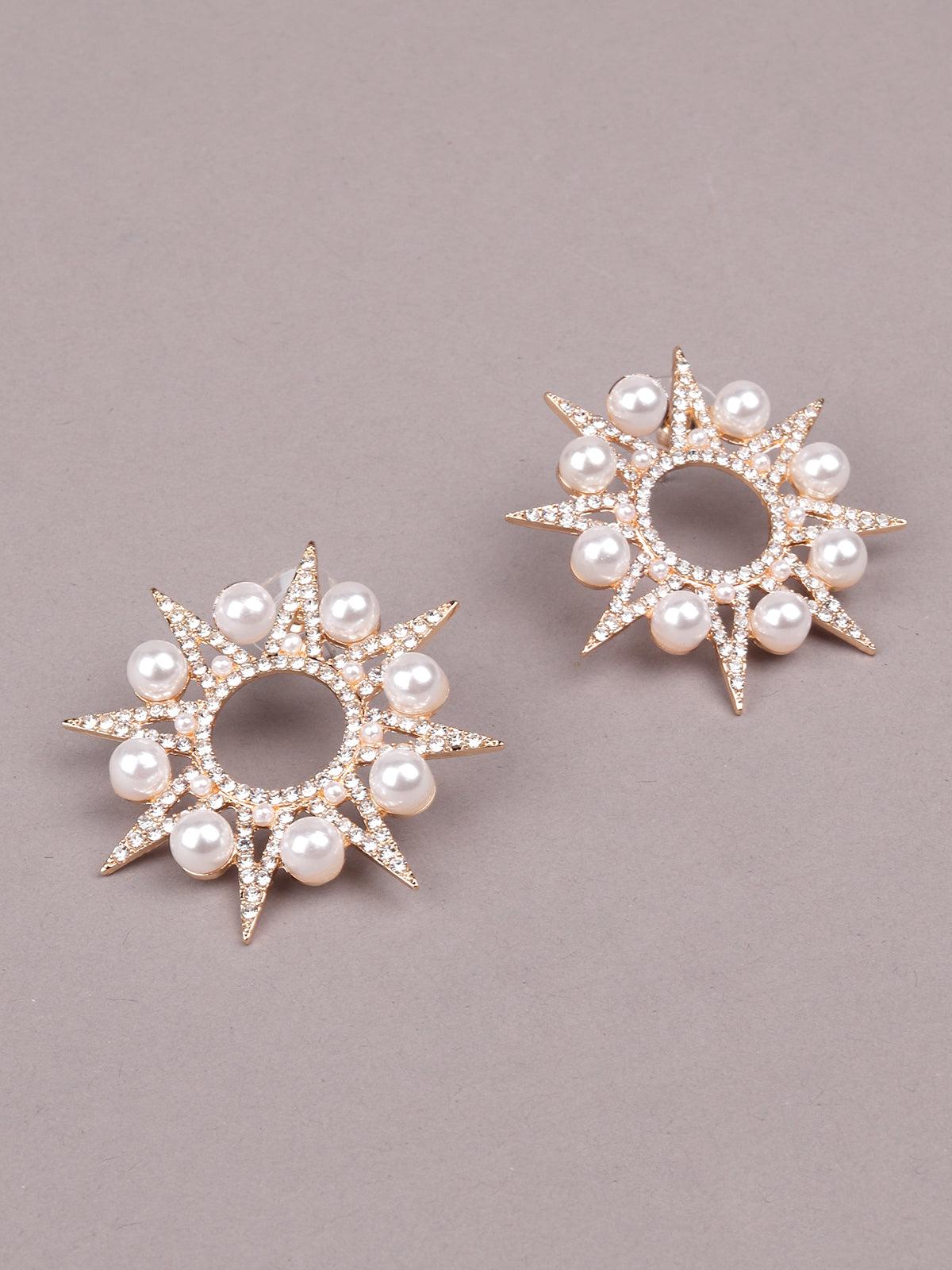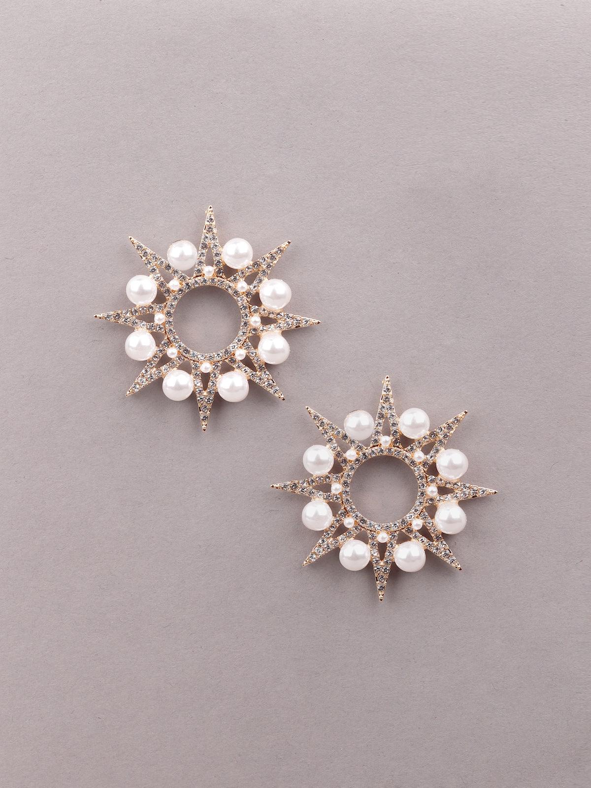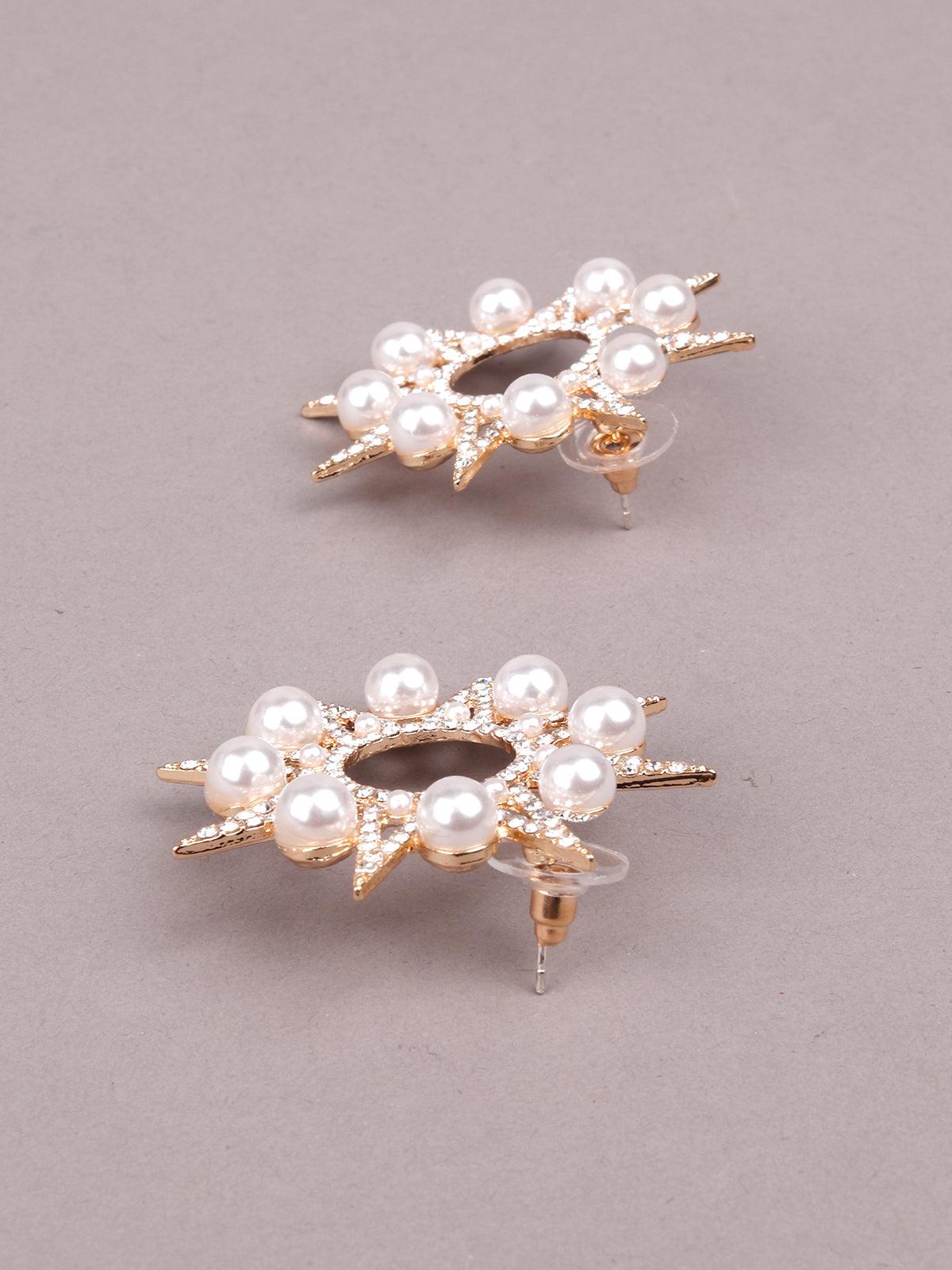 Odette brings you this pair of gorgeous earrings that are embellished with studs and pearls, the earrings are magnificent. The earrings look top-notch and are crafted with high-quality metal to ensure the durability of the earrings. The earrings look stunning and are sure to add an edge of style to your look. The earrings are secured with a push back pin closure fastening.