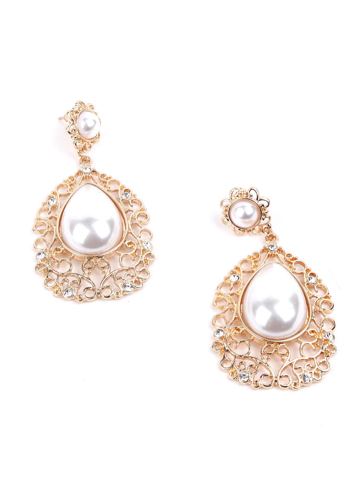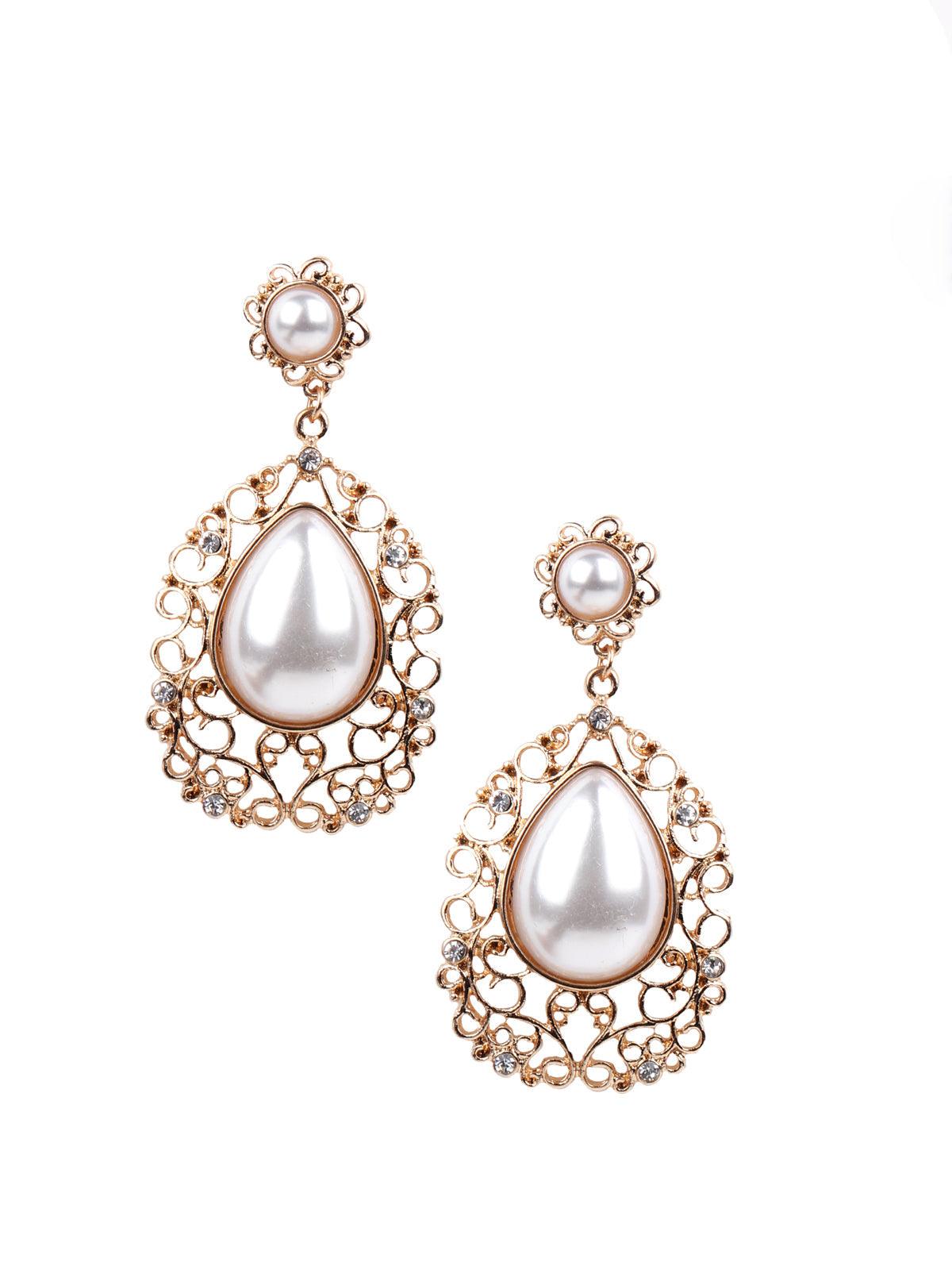 Odette brings you these gorgeous pair of textured gold earrings embellished with a pearl. The earrings look stunning and are crafted with high-quality metal to ensure the durability of the earrings. The earrings look stunning and are sure to add an edge of style to your look. The earrings are secured with a push back pin closure fastening.