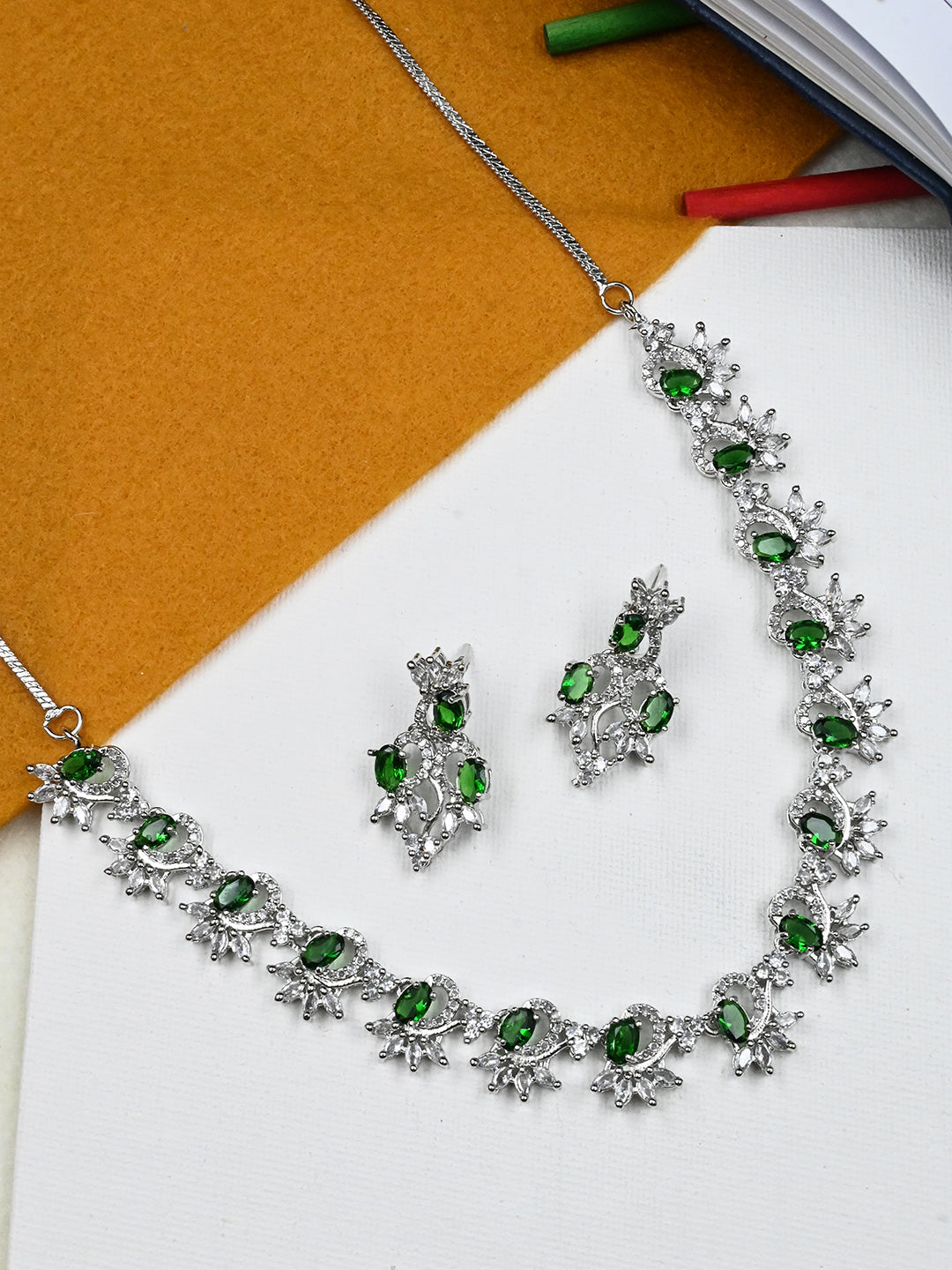 American Diamond necklace set, Sleek necklace, Minimalist jewelry, Special occasion jewelry, earrings, Modern necklace, Elegant jewelry, Fashionable necklace, Dainty earrings, Sophisticated jewelry, CZ stones, Special occasion necklace, STILEADDA