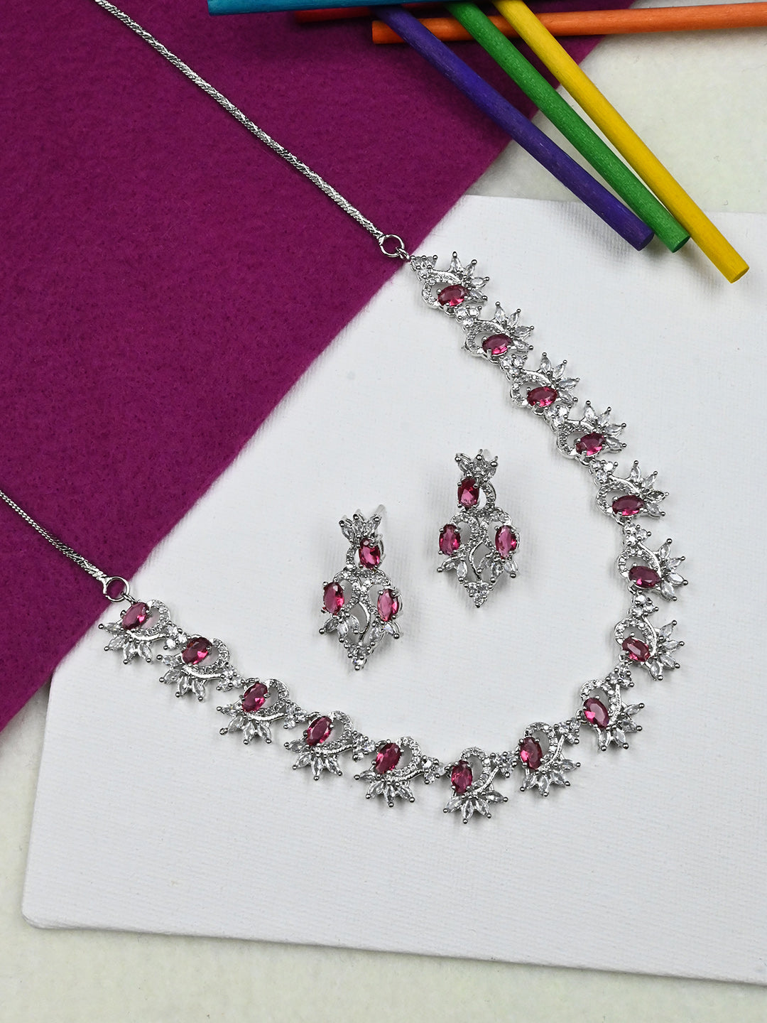 Crafted with great attention to detail, this American Diamond Sleek Necklace Set is a work of art that is sure to impress.