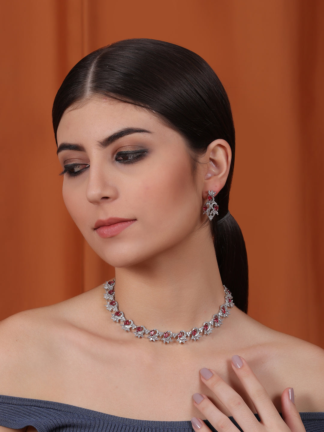 American Diamond necklace set, Sleek necklace, Minimalist jewelry, Special occasion jewelry, earrings, Modern necklace, Elegant jewelry, Fashionable necklace, Dainty earrings, Sophisticated jewelry, CZ stones, Special occasion necklace, STILEADDA