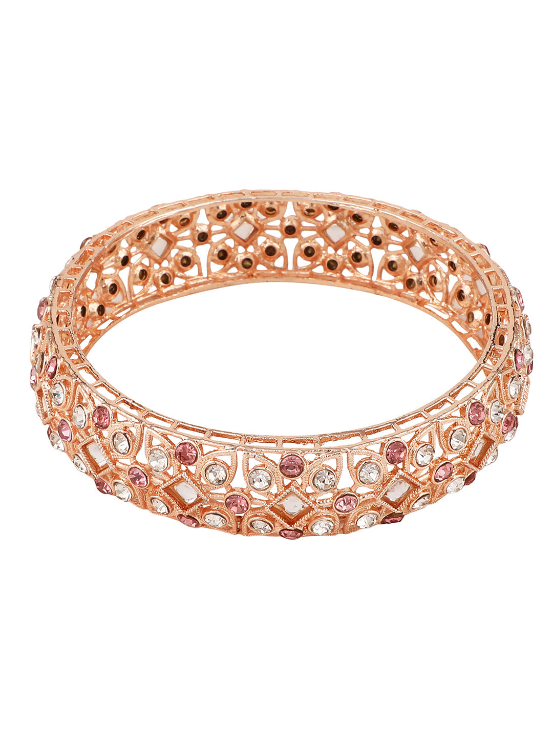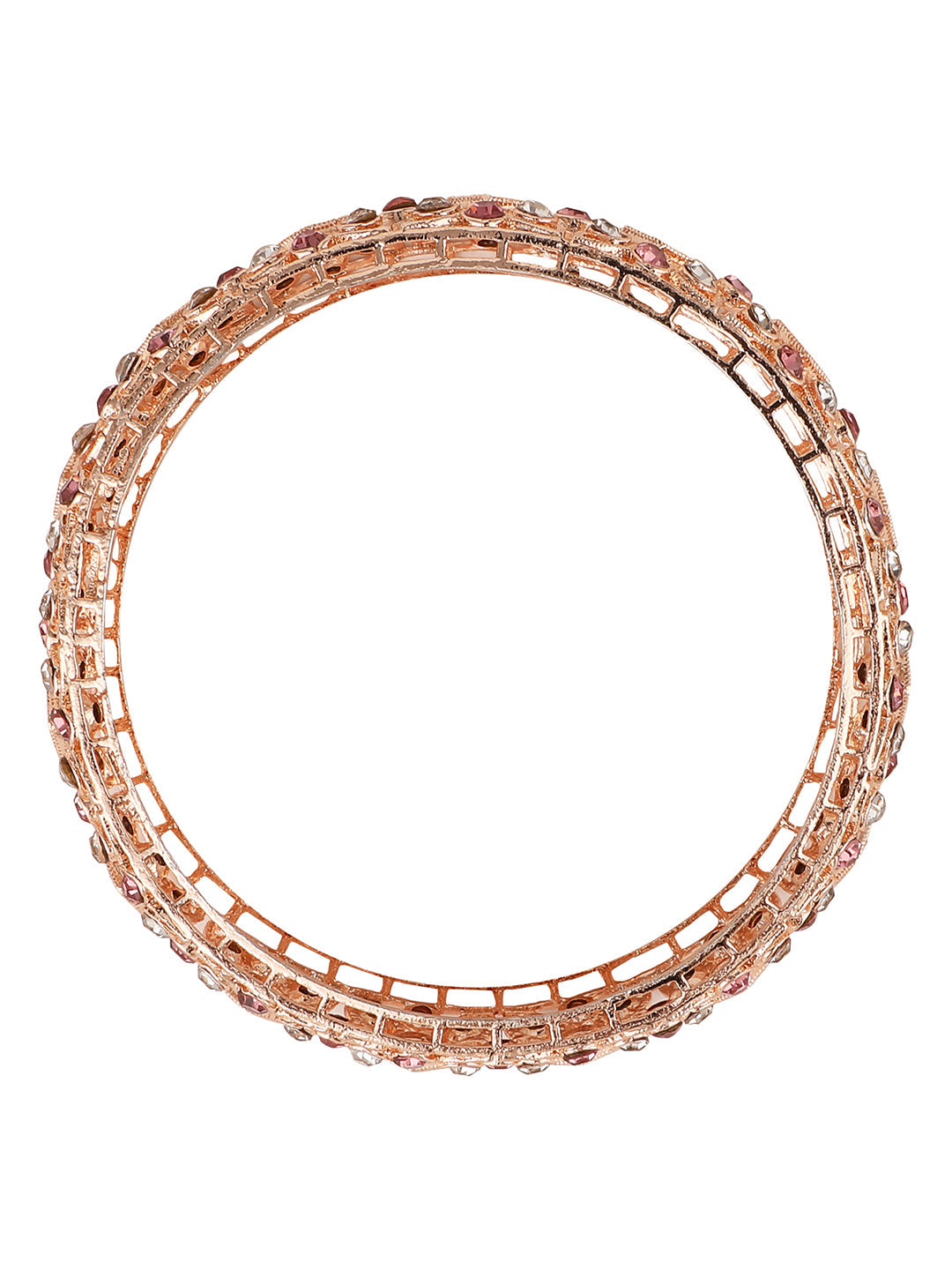Women's/Girls Statement Rose Gold Plated Abstract Design Stone Studded Bangle Set Of 2