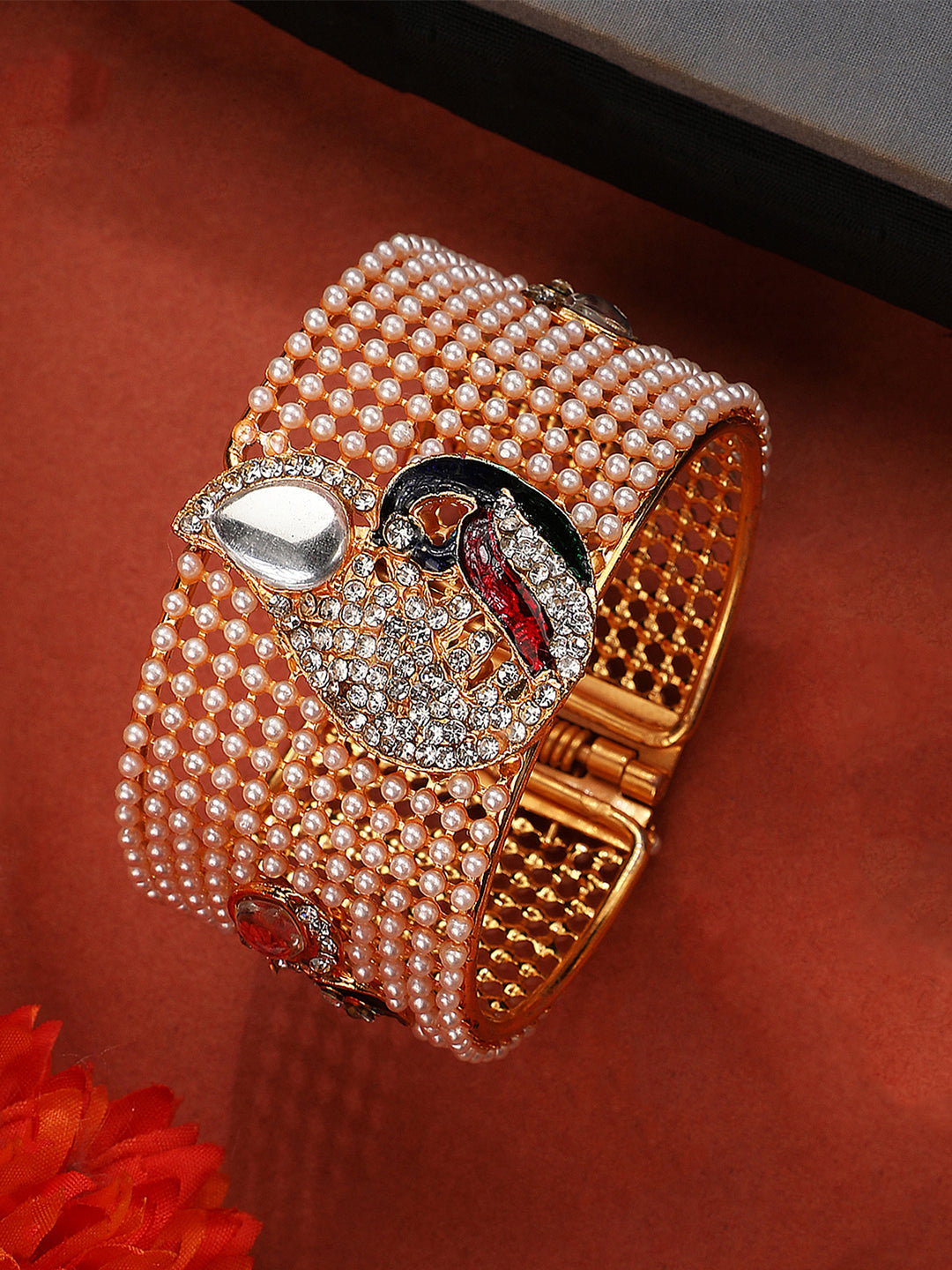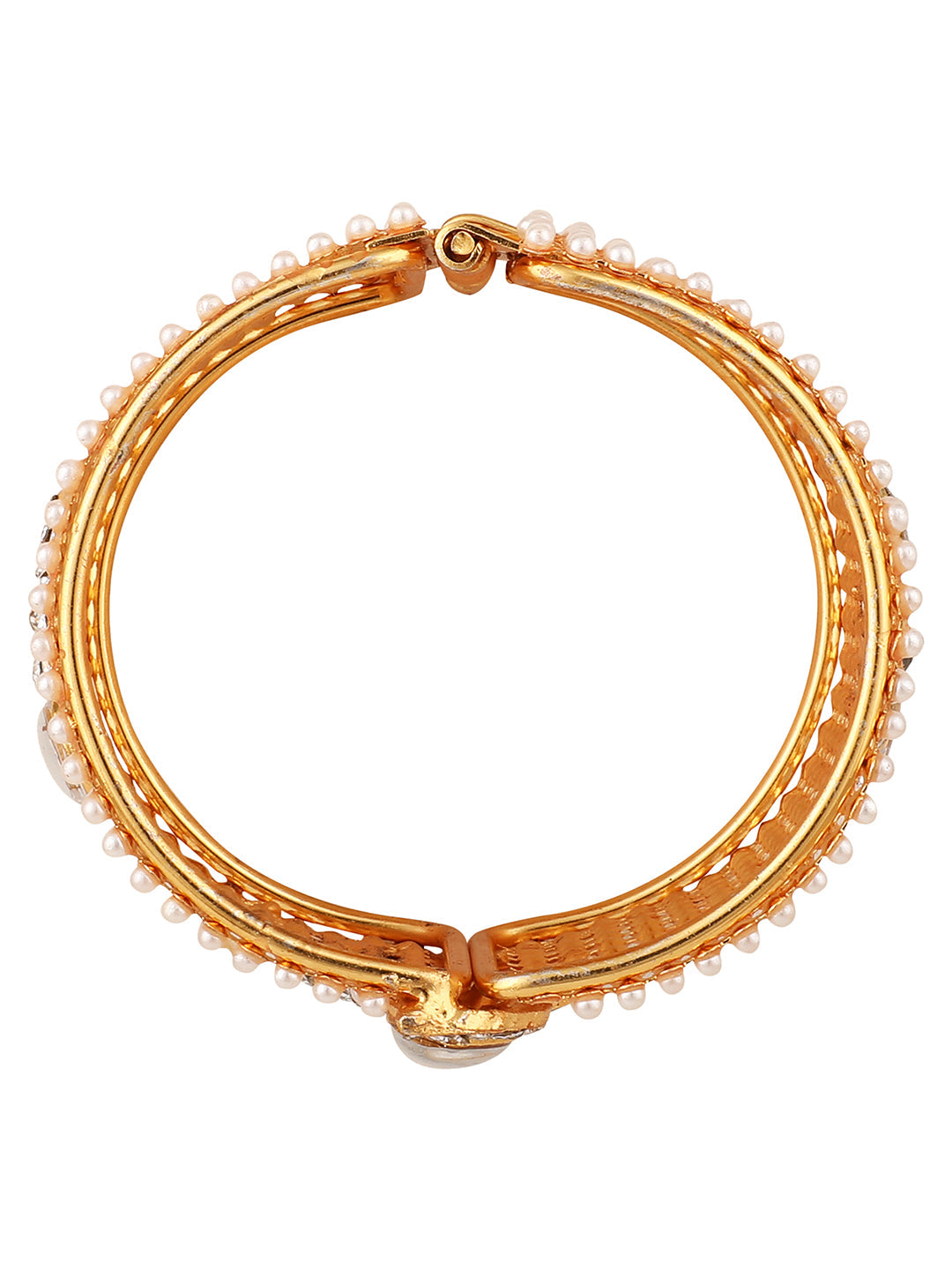 Statement Gold Plated Floral Design Multicolor Stone Studded Bangle Set of 2 BanglesWomen love jewellery; specially traditional jewellery adore a women. They wear it on different occasion. They have special importance on ring ceremony, wedding and festive time. They can also wear it on regular basics. Make your moment memorable with this range. This jewel set features a unique one of a kind traditional embellish with antic finish.