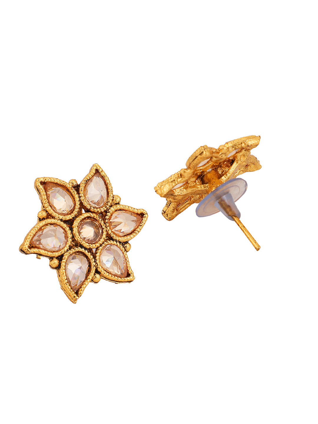 Stylish AD stone studded Gold Plated Floral Shape Stud Earring,Secured With Post and Back Closure