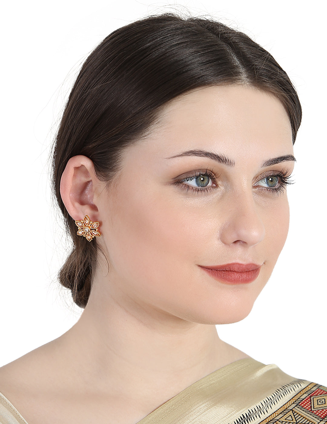 Women's Classy American Diamond Stone Studded Gold Plated Floral Shape Stud Earring