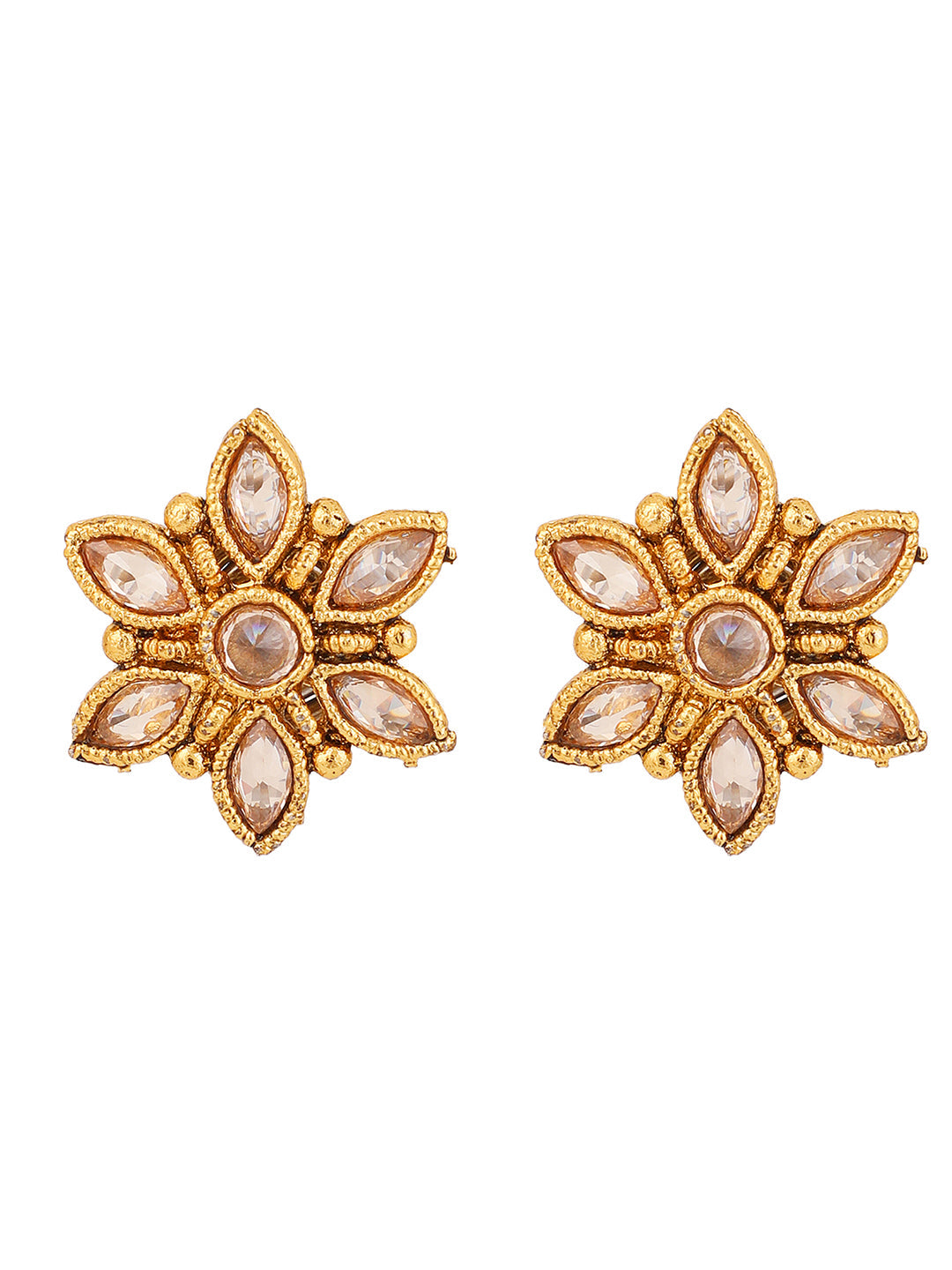 Classy American Diamond stone studded Gold Plated Floral Shape Stud Earring,Secured With Post and Back Closure