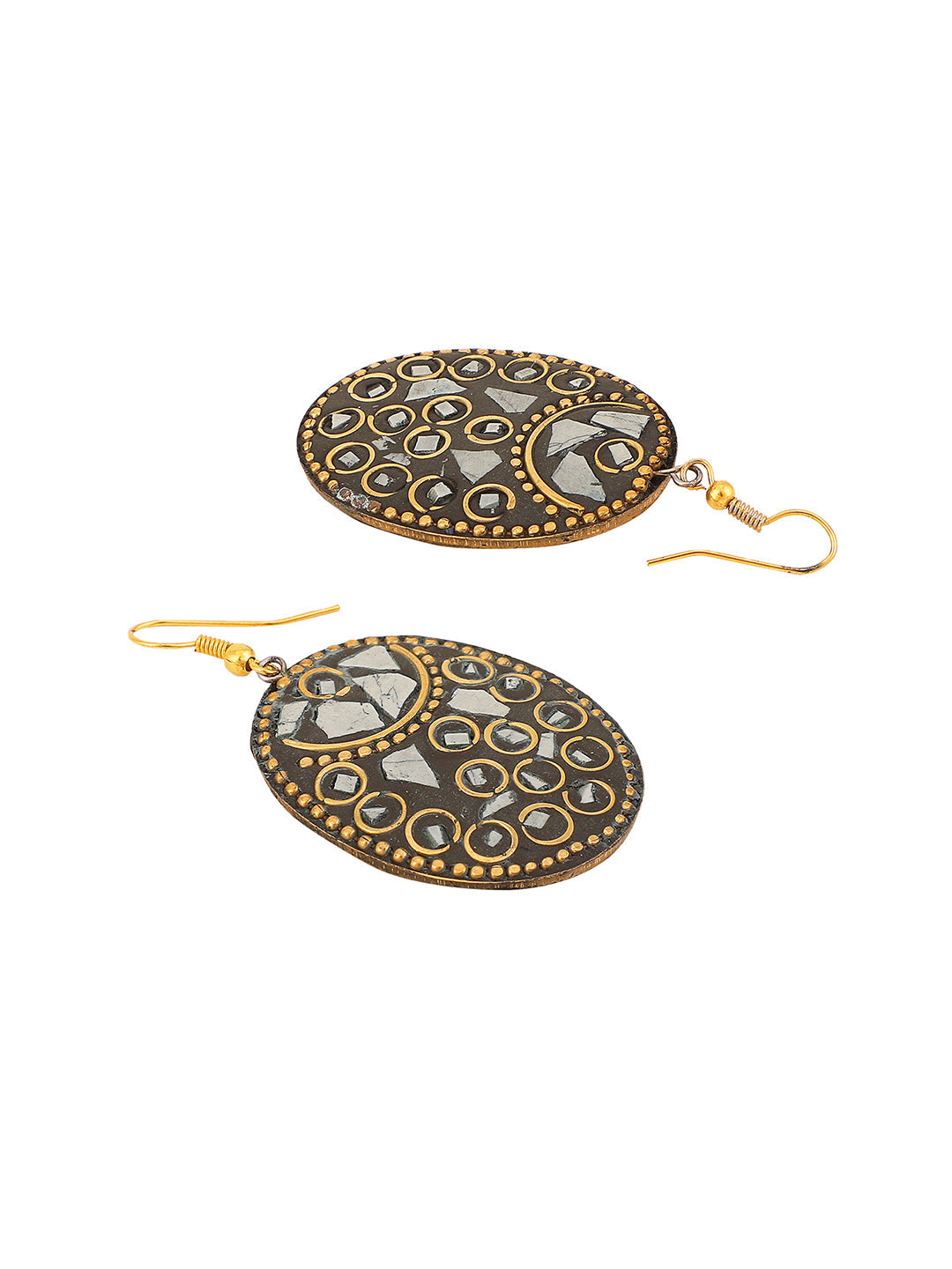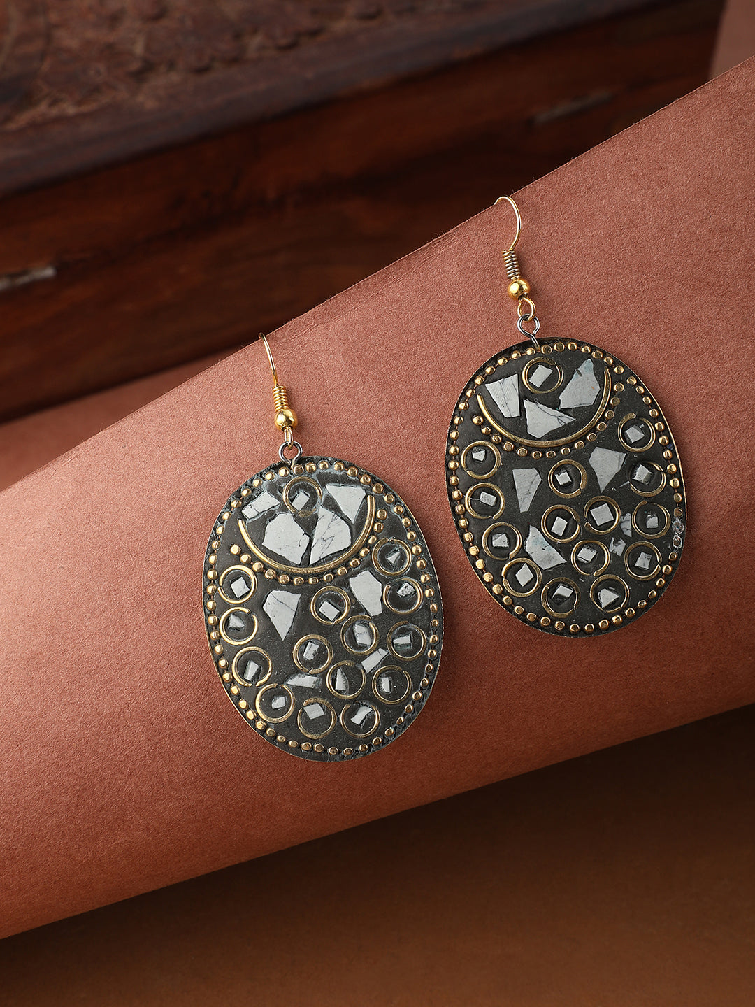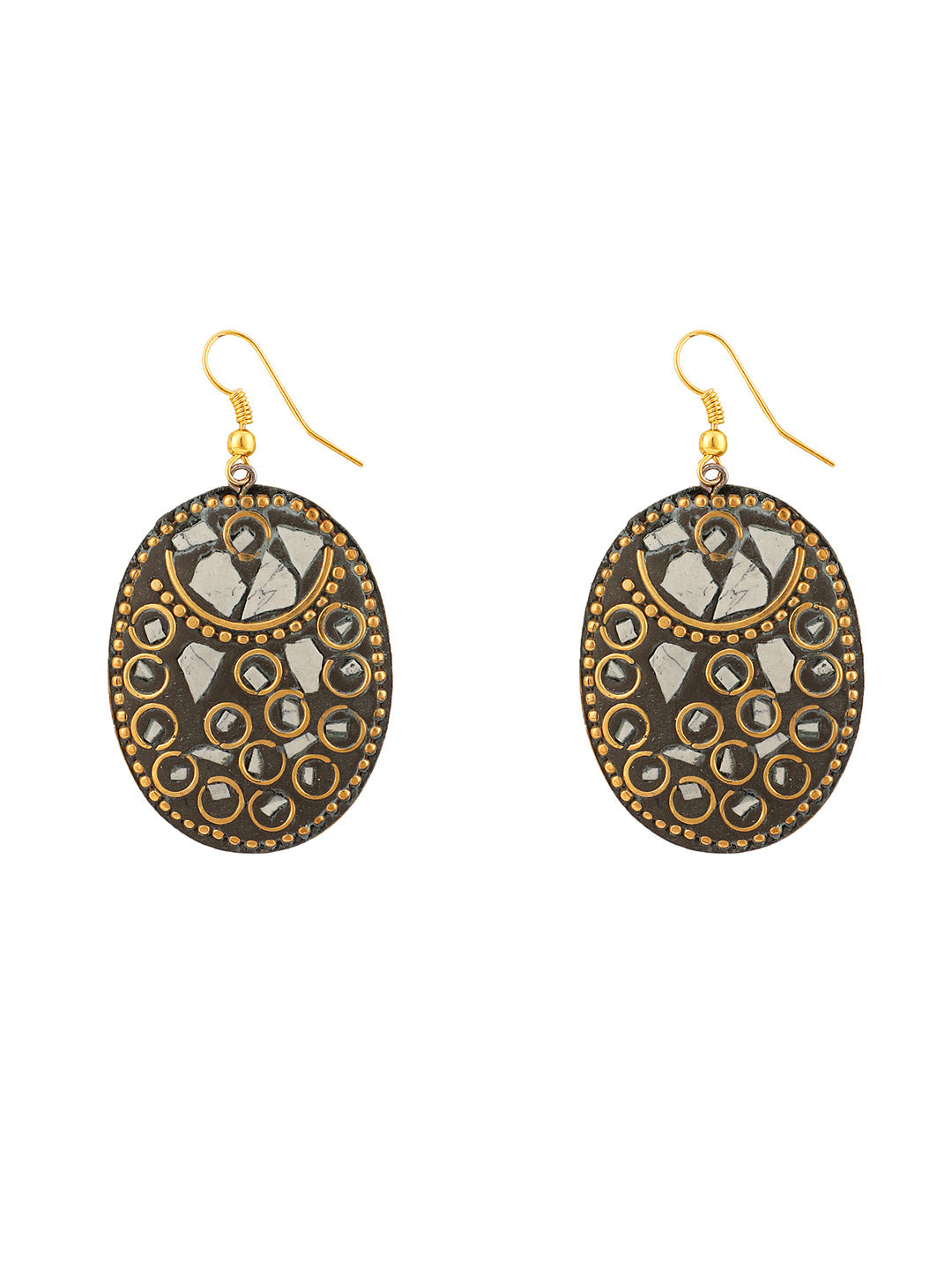 Tribal Antique Look Charming Matte Black Oval Drop Hook Earring,Secured With Hook Closure. Designer Mosaic pattern, Tribal look,classy earring for western outfits