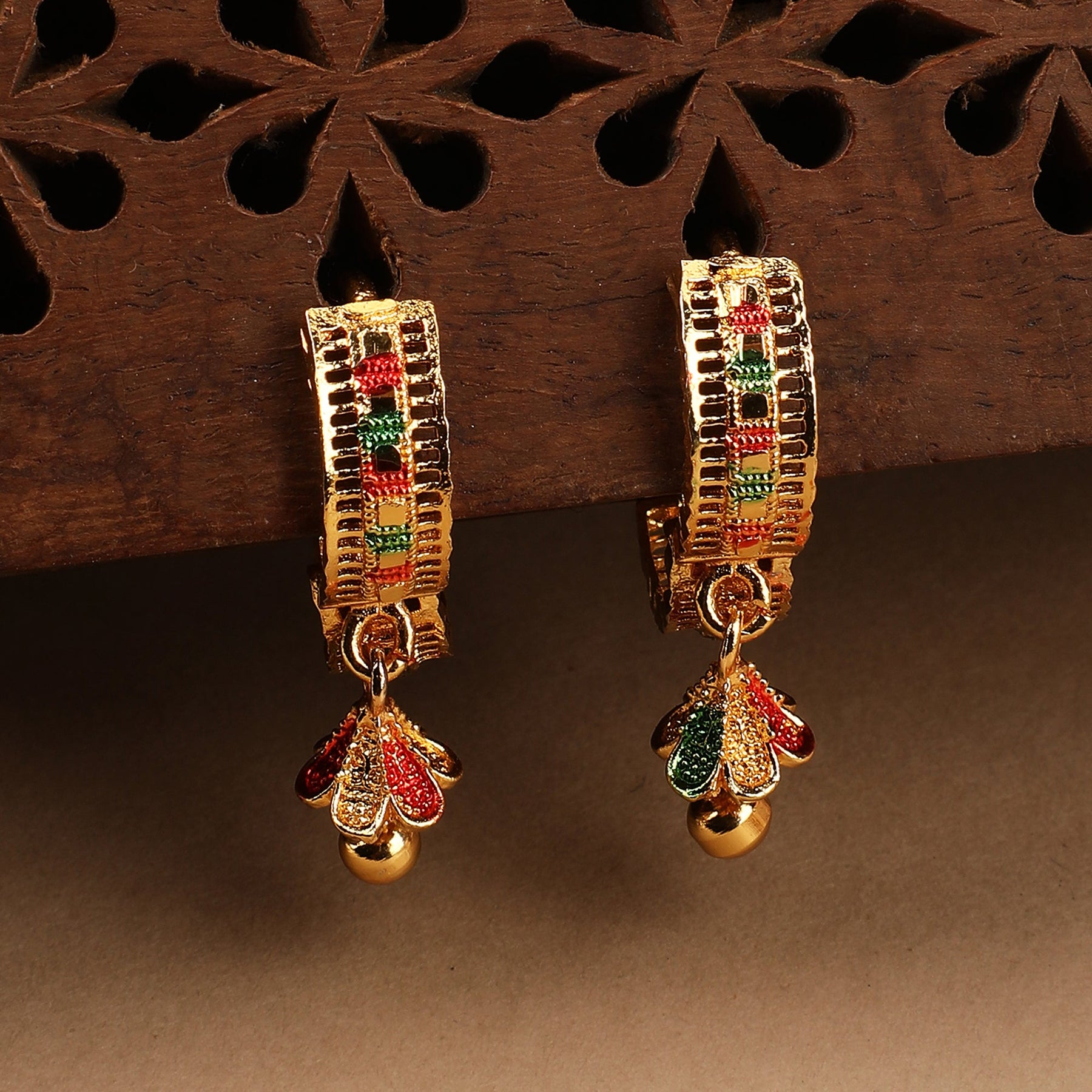 Women's/Girls Traditional Gold Plated Multicolor Jhumki Earring Brass Jhumki Earring