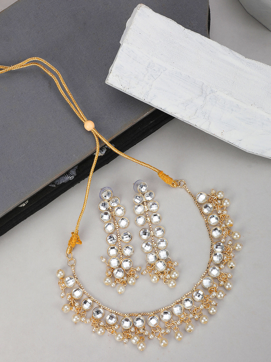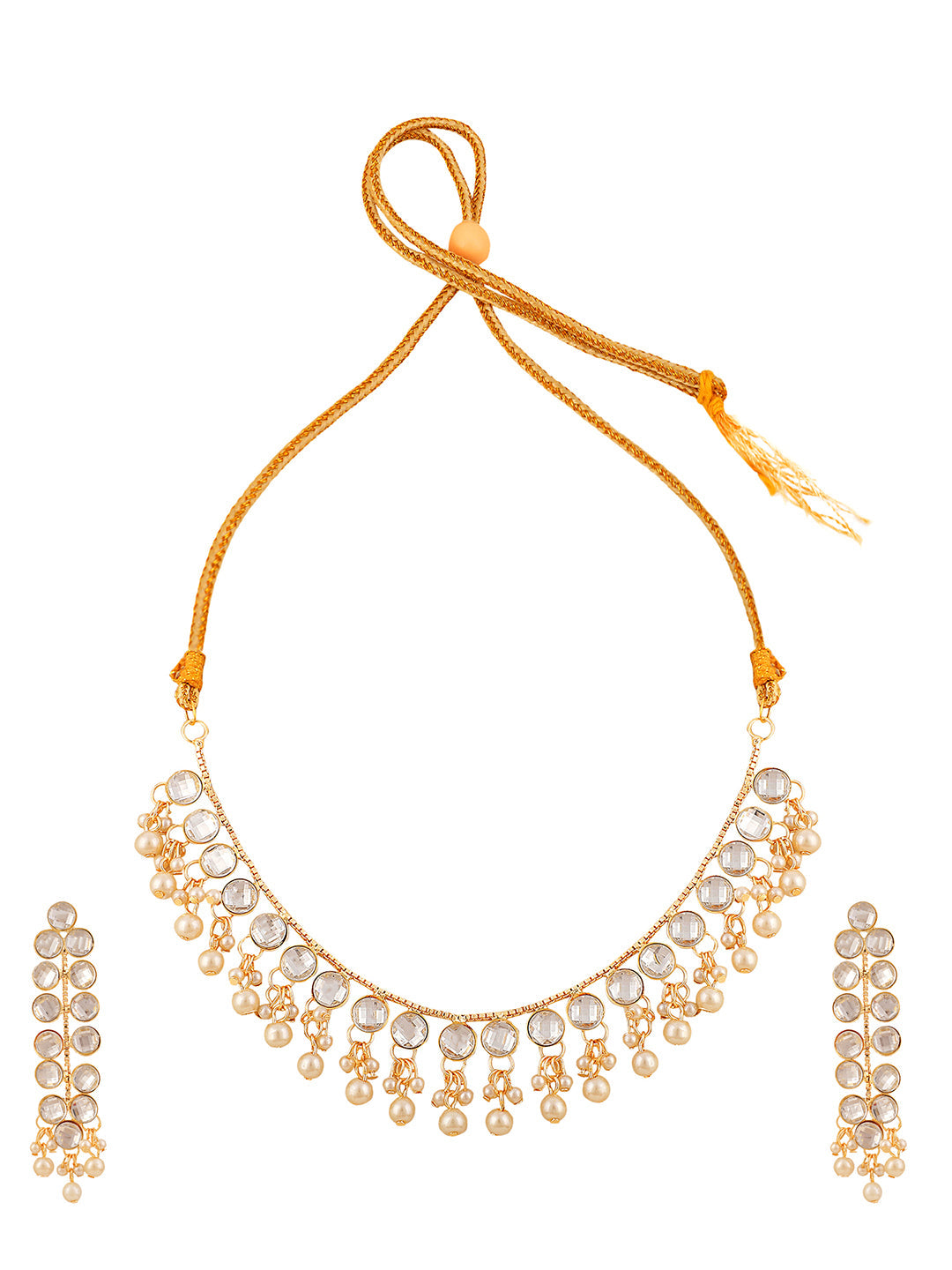 Traditional Women Gold Plated Peral Jewellery Set for wedding,Closure For Necklace: Hook, Earring: Post and Back