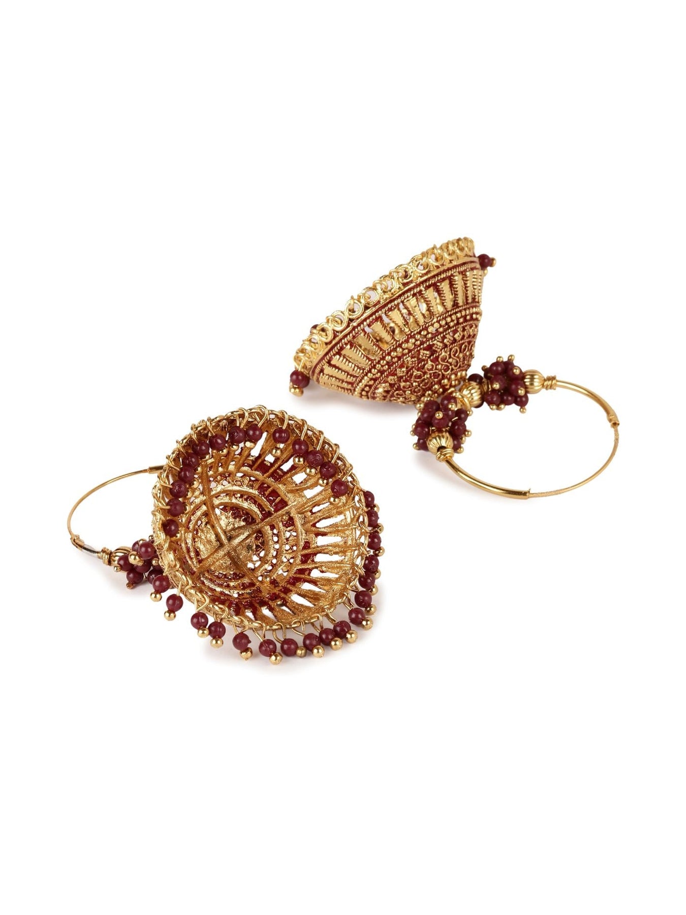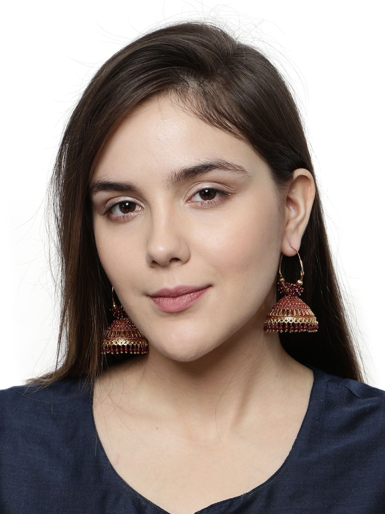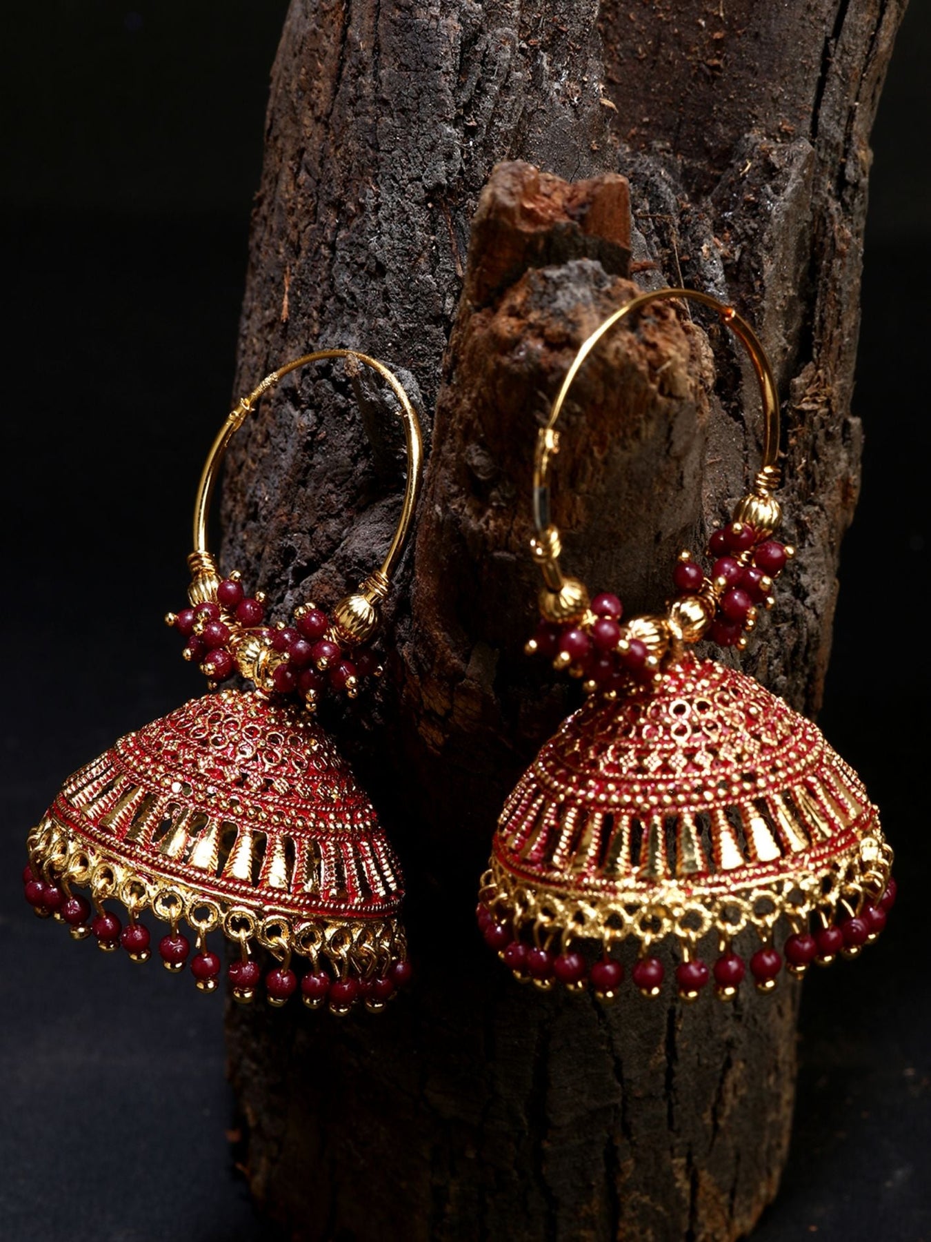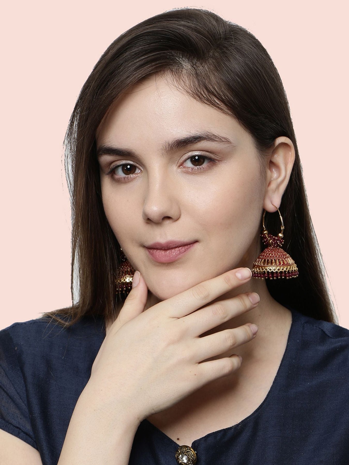 Women's Maroon & Gold-Plated Enamelled Dome Shaped Jhumkas