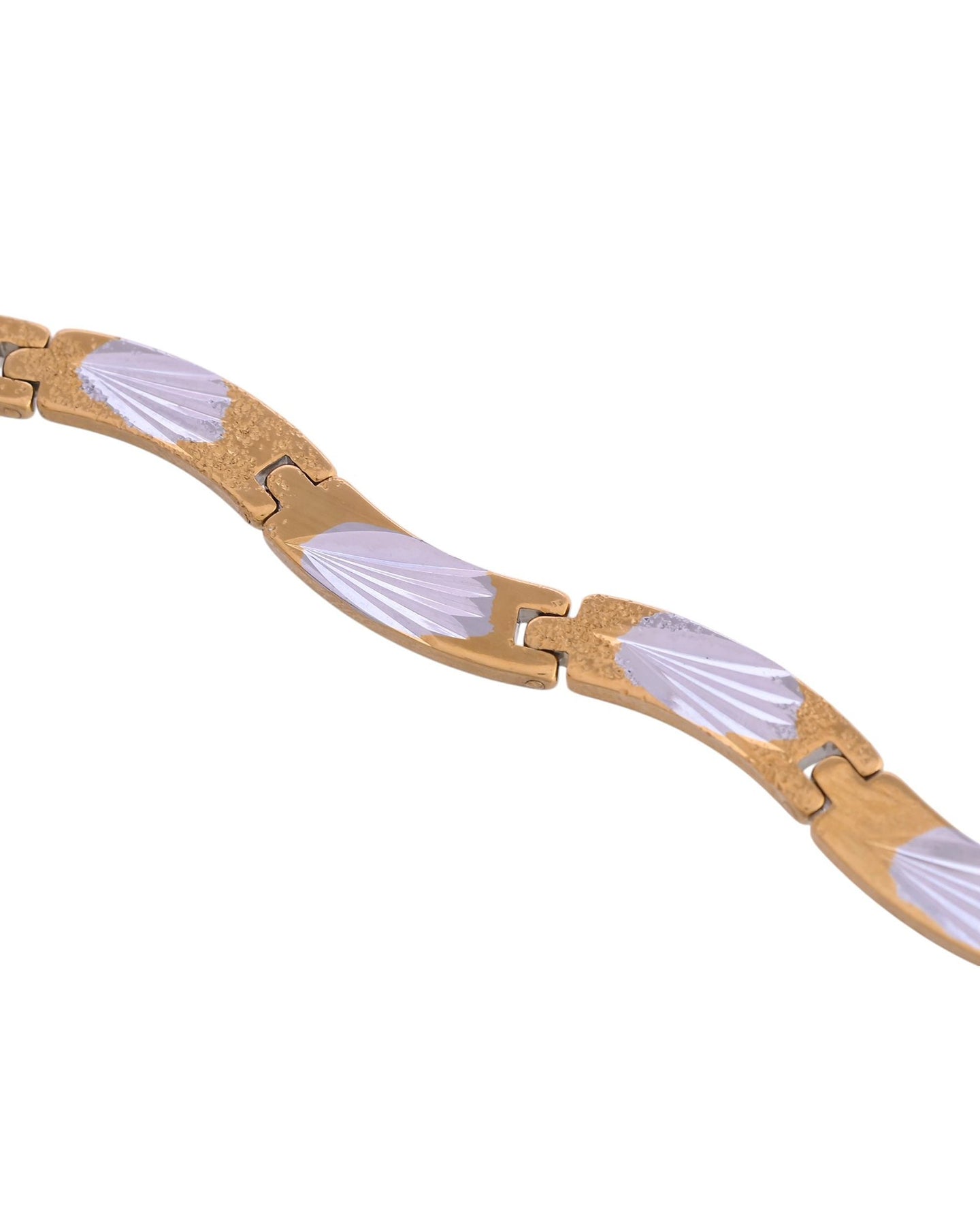 Stand Out With Subtle Sophistication In This Men Gold-Plated & Silver-Toned Exquisite Waved Linked Bracelet. Crafted From Premium-Quality Metal, It Features A Unique Wave-Inspired Link Pattern Finished In An Elegant Dual-Tone Of Gold And Silver. This Bracelet Strikes The Perfect Balance Between Classic Charm And Modern Design.