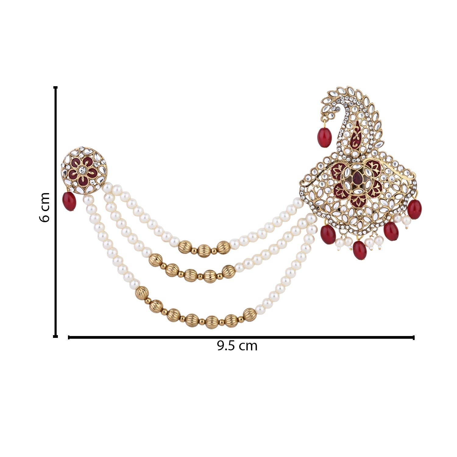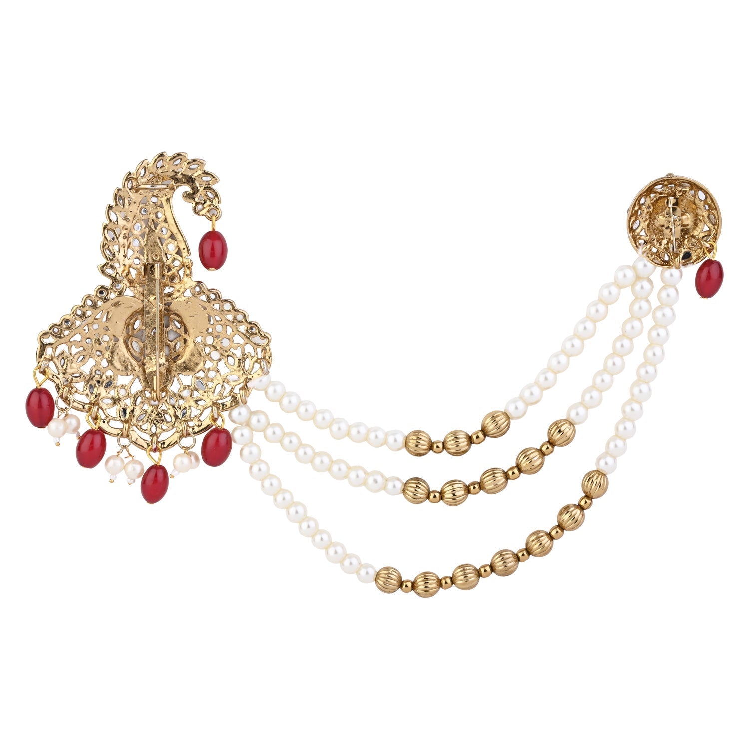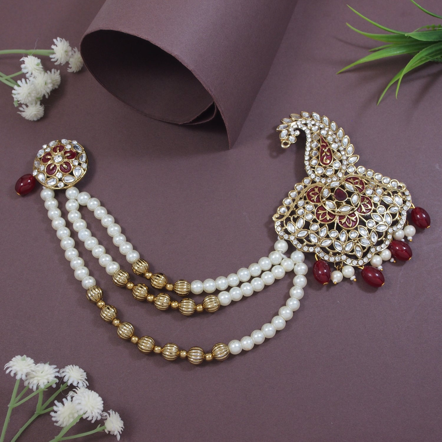 Enhance Your Traditional Attire With This Exquisite Pearl And Stone Brooch. Designed With Delicate Craftsmanship, This Brooch Features Intricate Kundan Detailing And A Luxurious Combination Of Pearls And Beads. The Cascading Layers Create An Elegant Drape Effect, Adding Sophistication To Sarees, Lehengas, And Ethnic Outfits. Perfect For Weddings, Festivities, Or Special Occasions, This Versatile Piece Brings A Regal Charm To Any Ensemble. Lightweight And Easy To Wear, It’S An Ideal Accessory For Those Who Appreciate Timeless Elegance