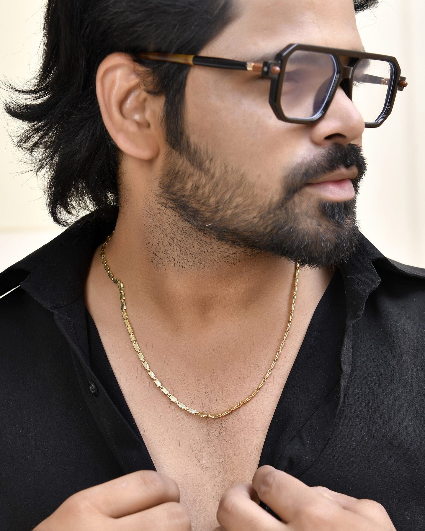 Elevate Your Everyday Style With This Men'S Gold-Plated Stainless Steel Self-Design Biscuit Chain, Blending Bold Masculinity With Refined Elegance. Crafted From High-Quality Stainless Steel And Coated In A Rich, Gold-Plated Finish, This Chain Boasts A Unique Biscuit-Pattern Design — Delivering A Sleek, Contemporary Look That Commands Attention. Built To Withstand Daily Wear, It Resists Tarnishing And Fading, Ensuring You Shine Through Every Occasion. Whether You’Re Dressing For A Party, Wedding, Or Casual Day Out, This Chain Is Your Go-To Accessory For An Effortlessly Classy Yet Edgy Vibe. Wear It Solo For A Minimalist Statement Or Layer It Up For A Bold, Street-Style Look — This Chain Is Made For The Modern Man Who Loves Standing Out.